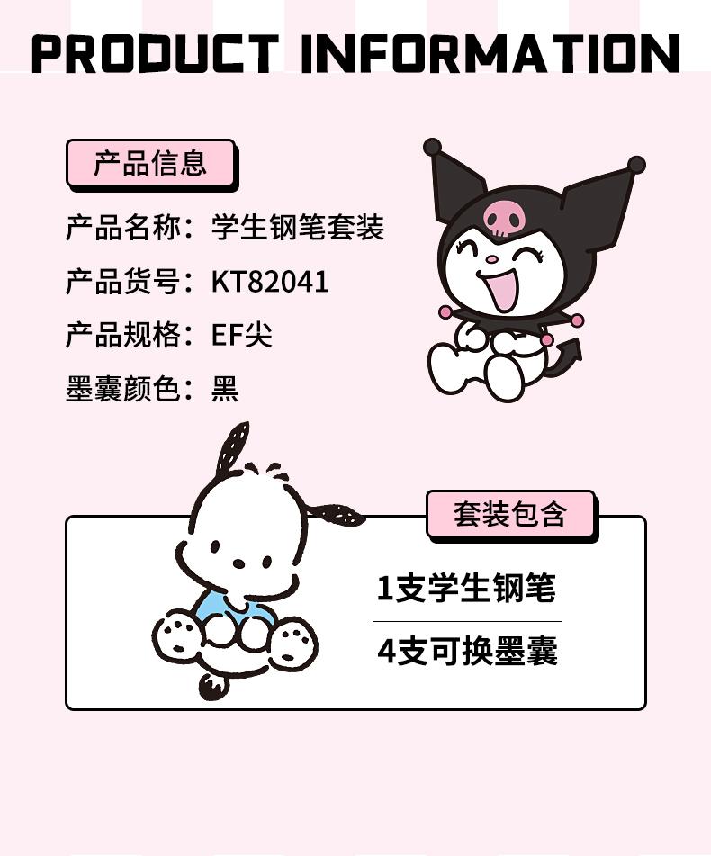 【广博】 三丽鸥限定款学生钢笔套装 可替换墨囊学生专用练字礼物礼品