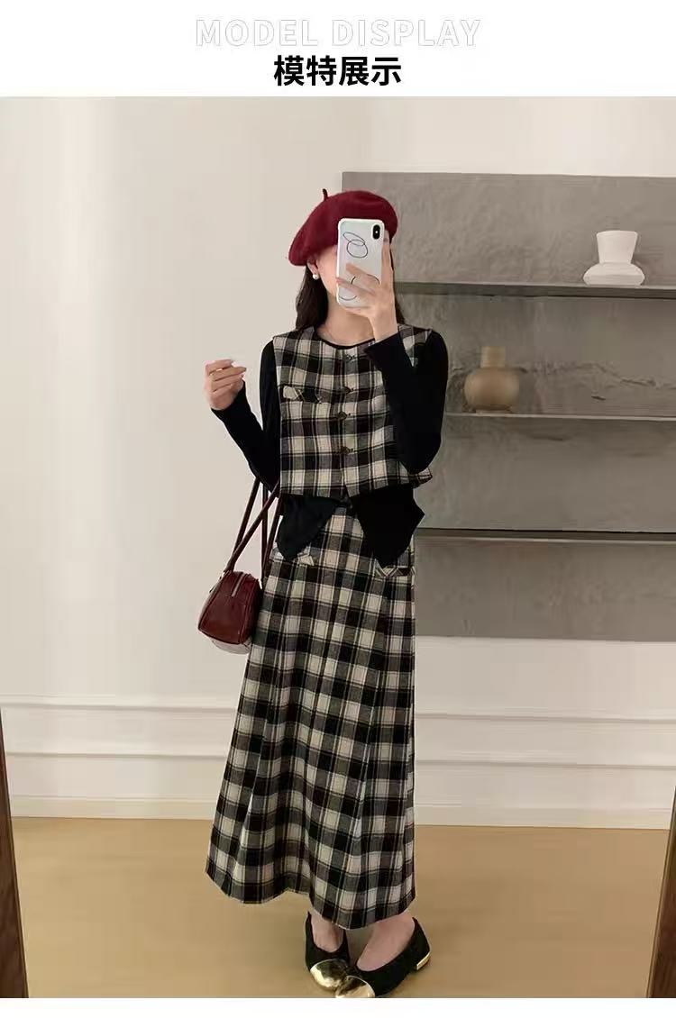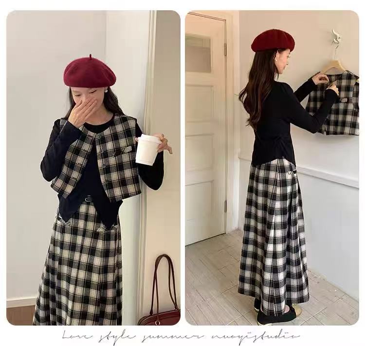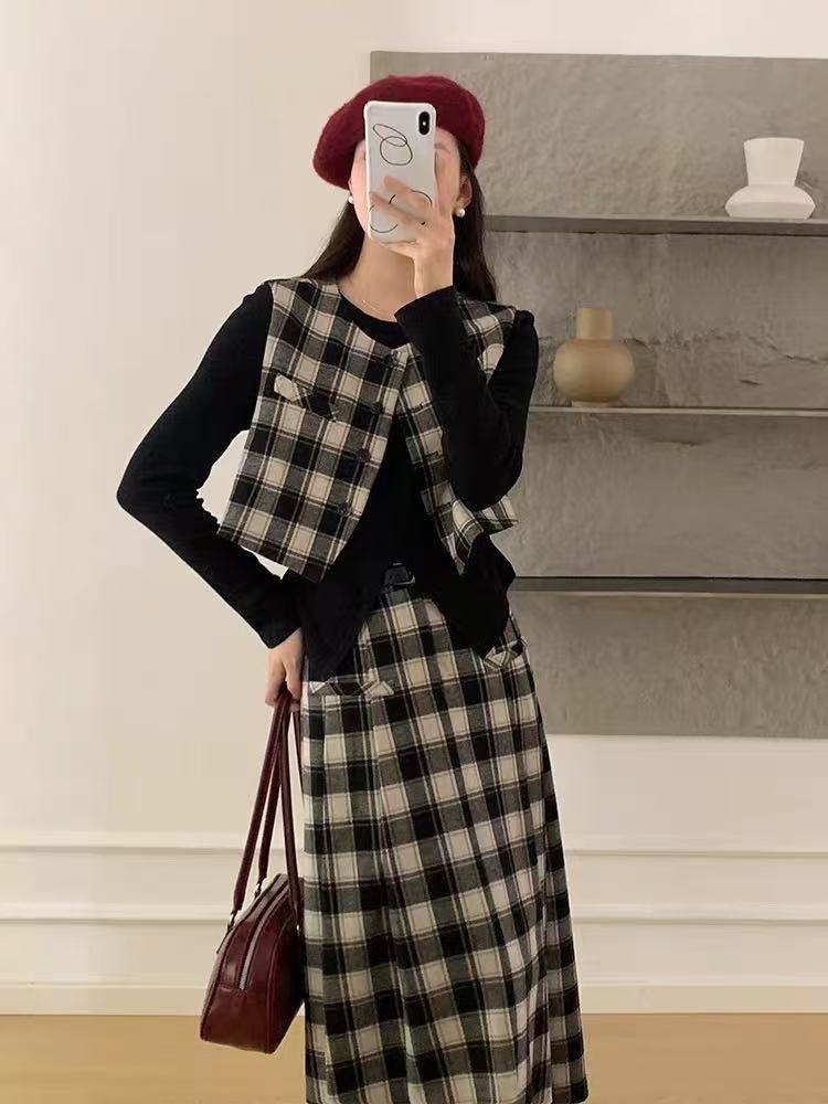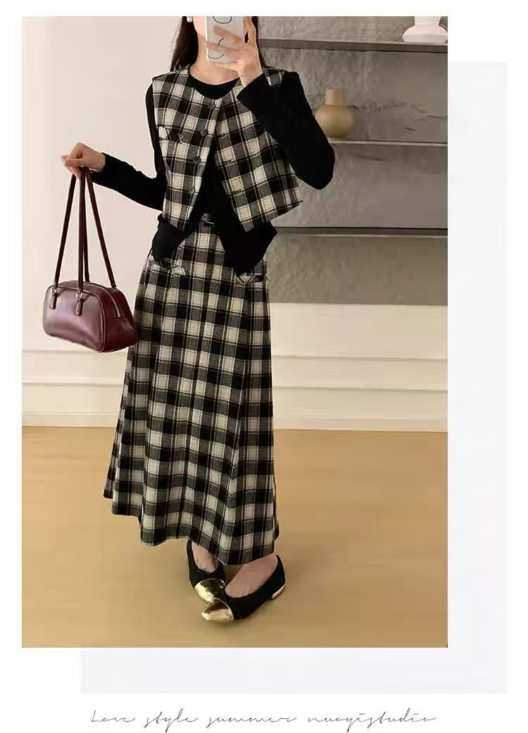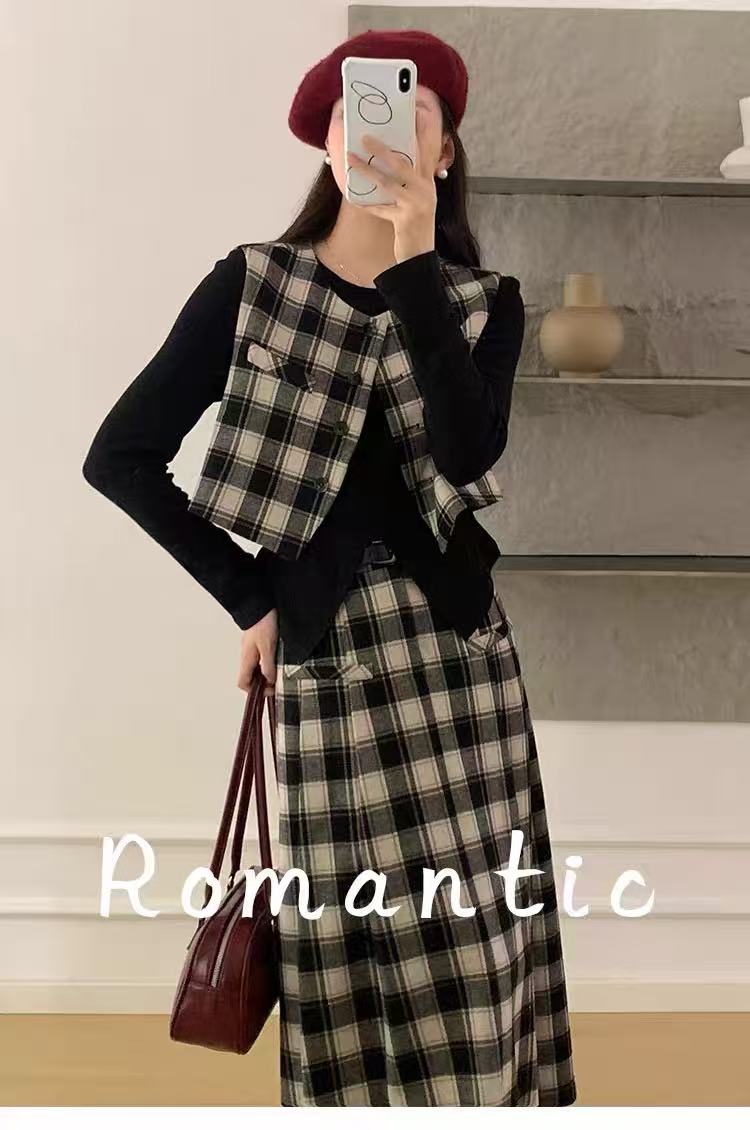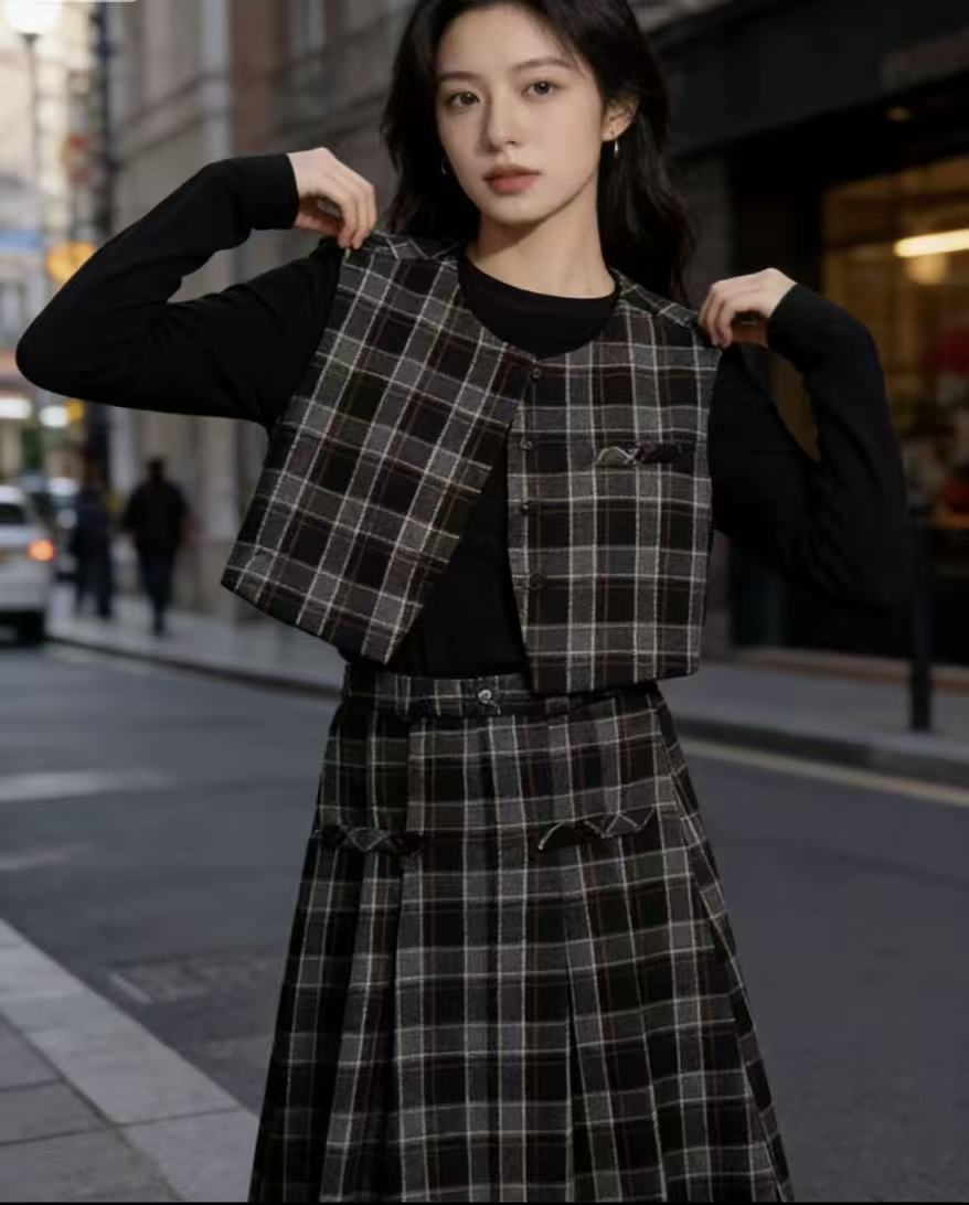 418良粉节|2026 活动爆款 活动爆款~【自营】衣周期~(三件套)Q95格子马甲➕长袖T恤➕格子半身裙套装-喜出