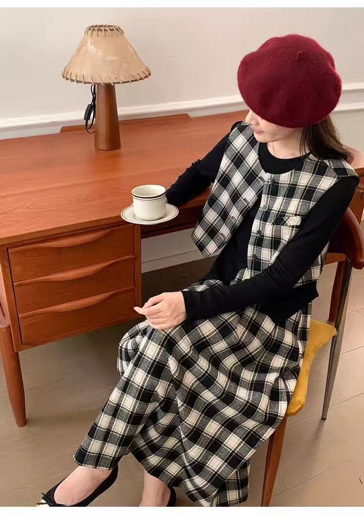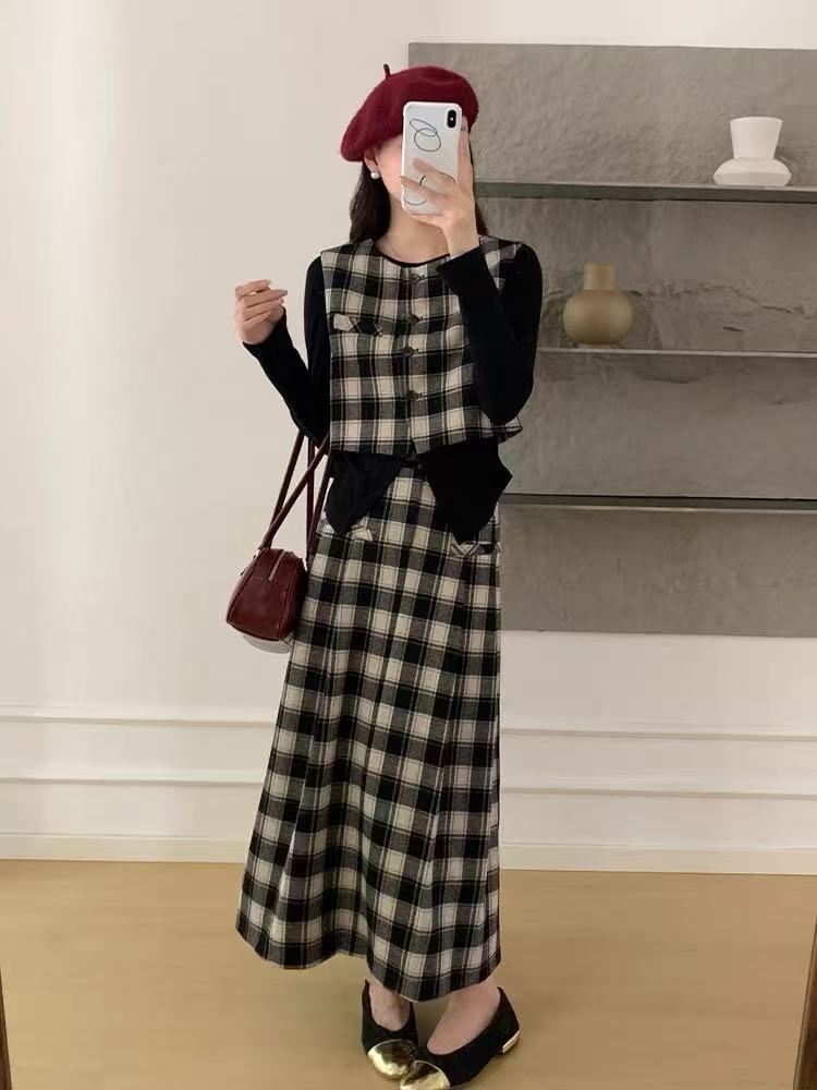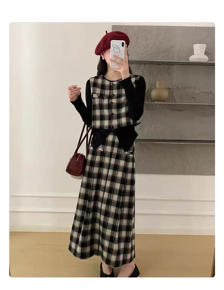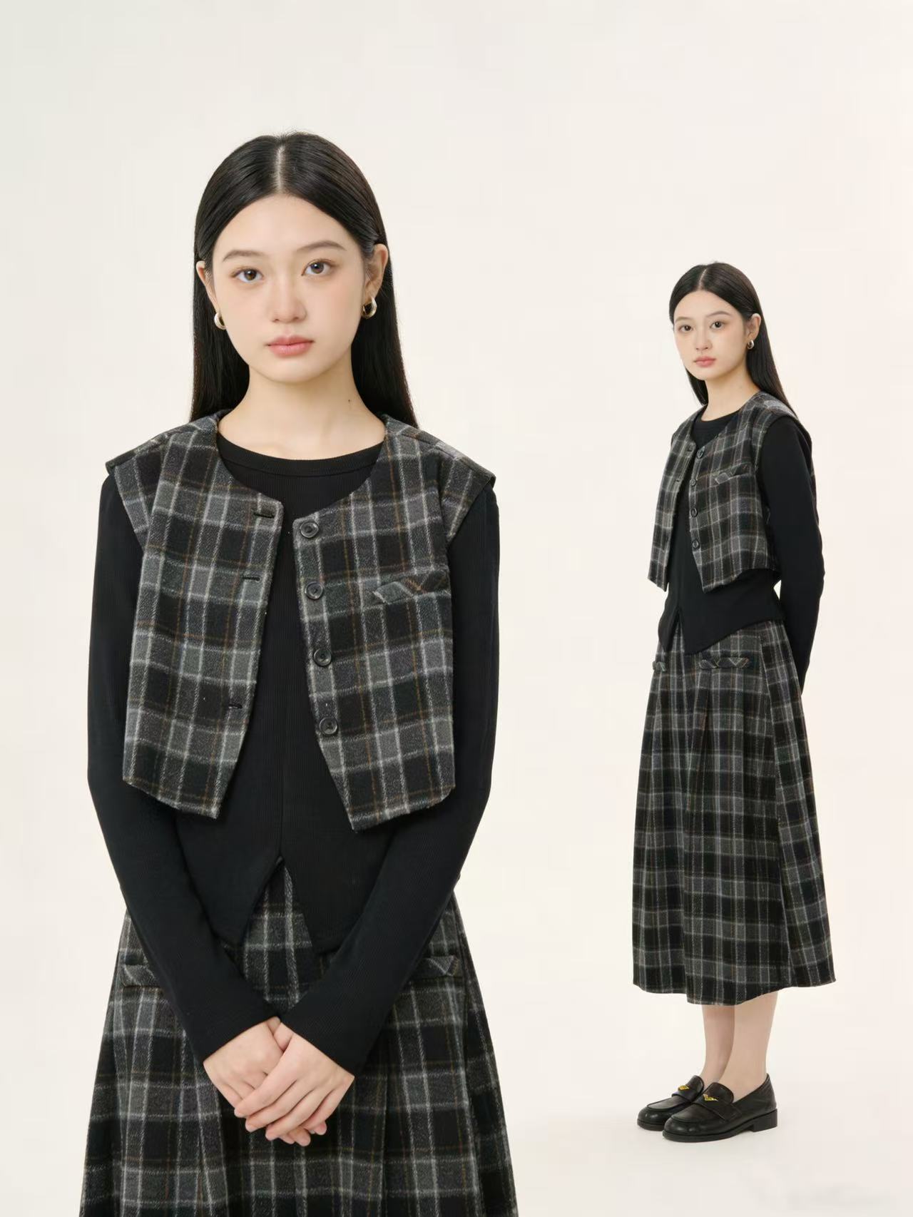 418良粉节|2026 活动爆款 活动爆款~【自营】衣周期~(三件套)Q95格子马甲➕长袖T恤➕格子半身裙套装-喜出