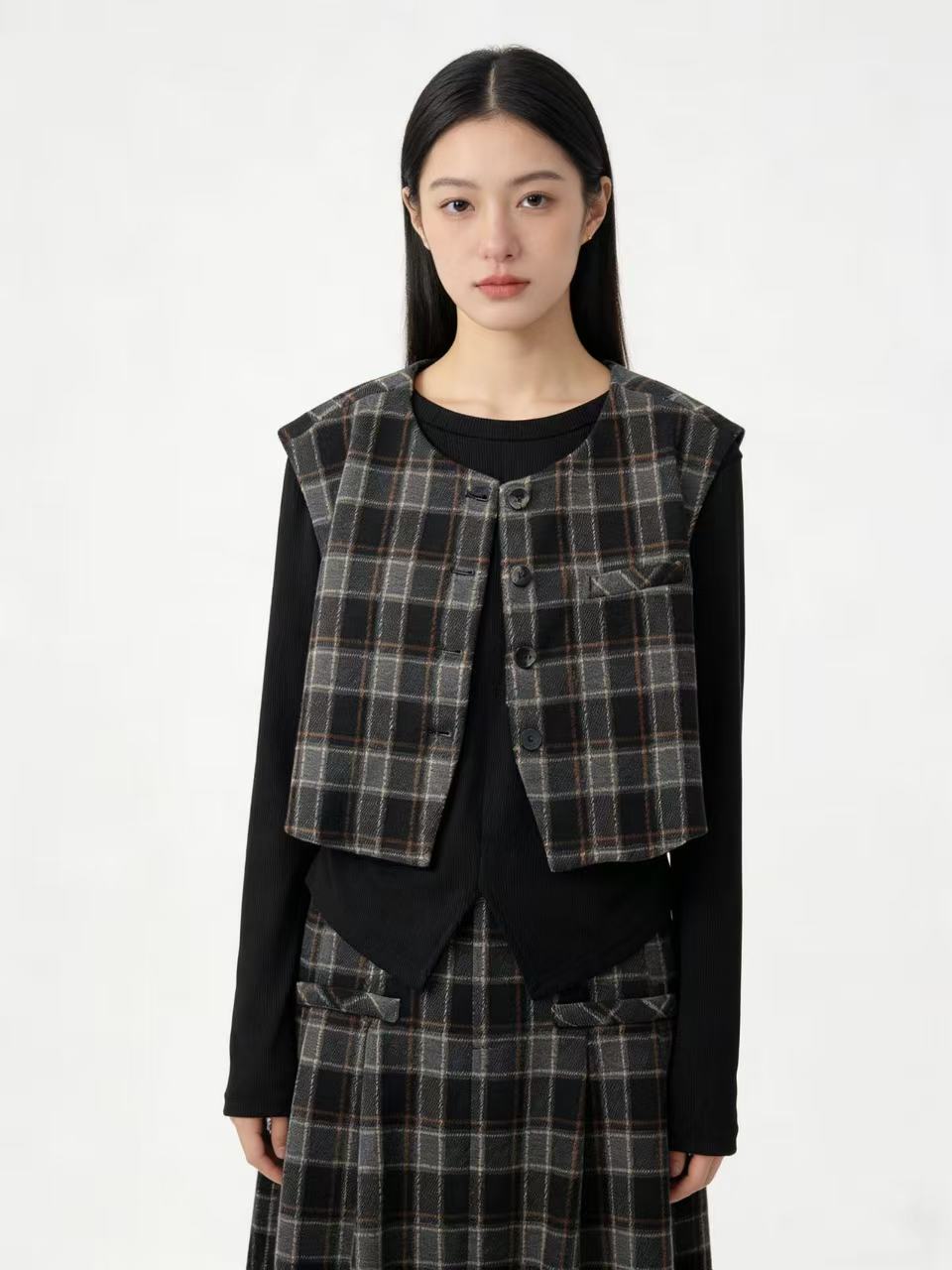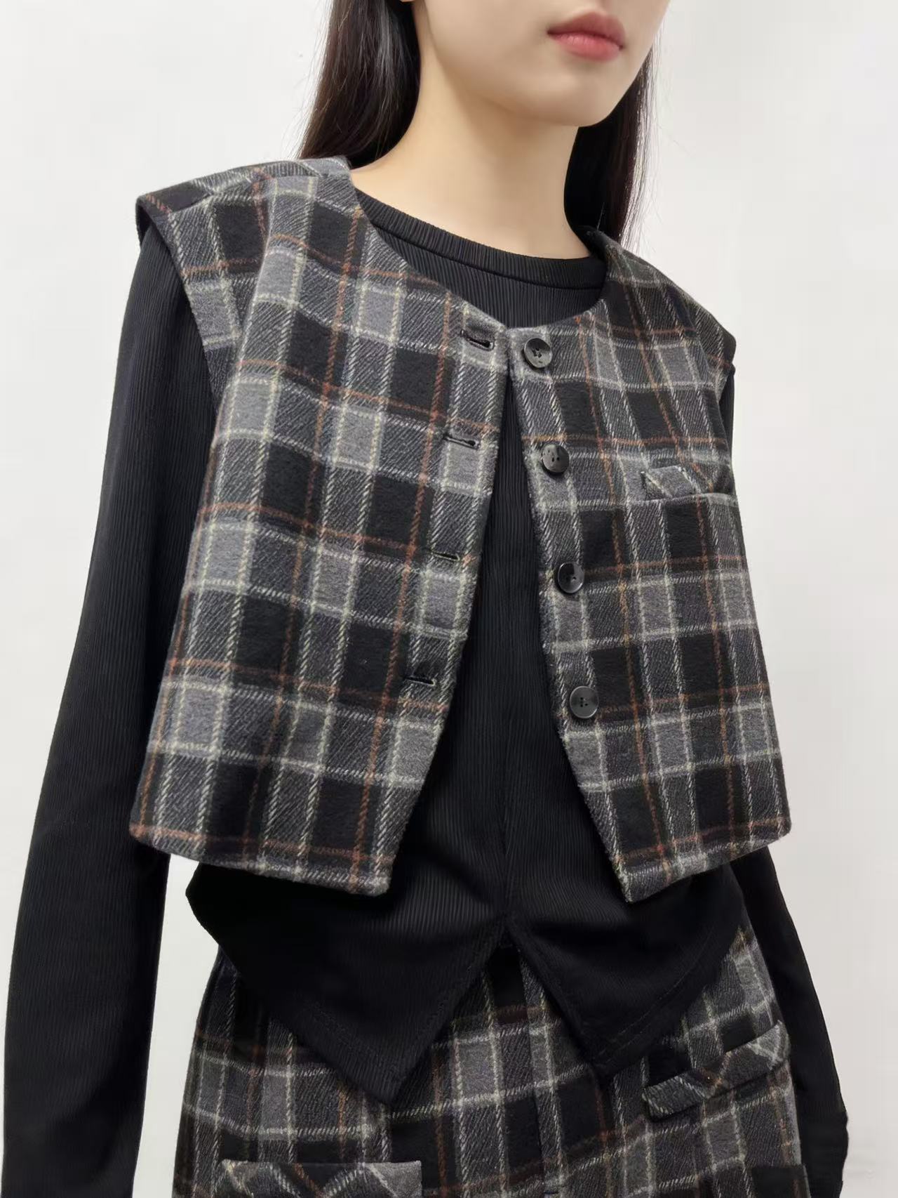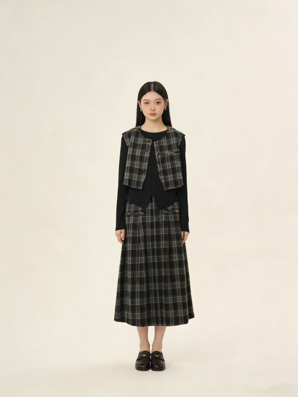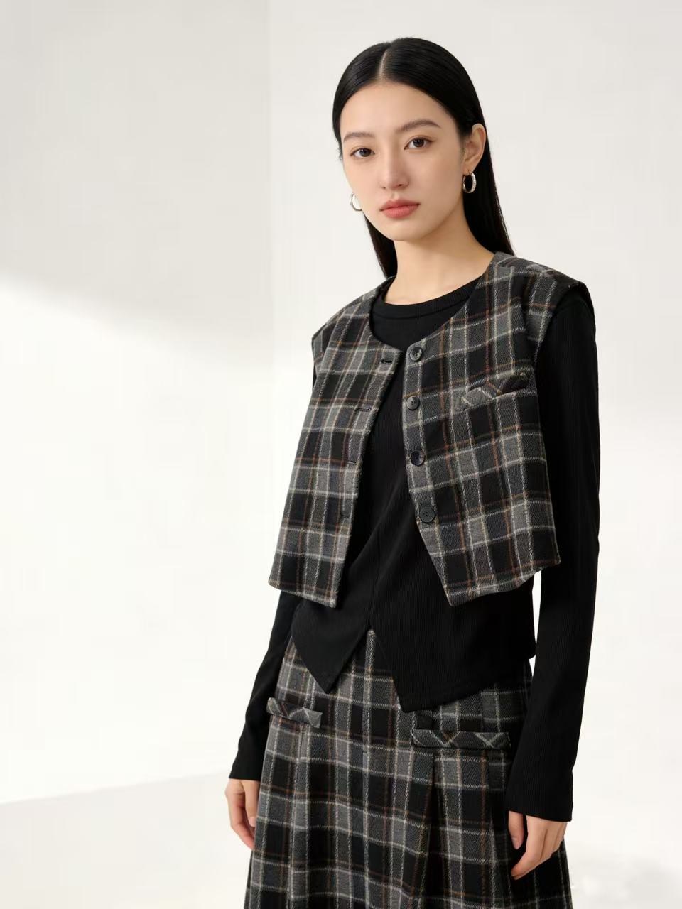 418良粉节|2026 活动爆款 活动爆款~【自营】衣周期~(三件套)Q95格子马甲➕长袖T恤➕格子半身裙套装-喜出