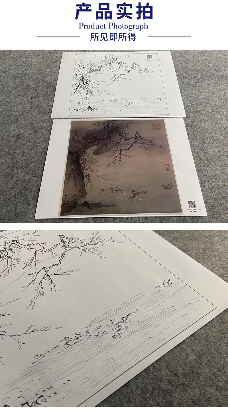 【大彩图】马远工笔画白描底稿宋画小品《梅石溪颓图》梅花临摹勾线花鸟线稿GH48