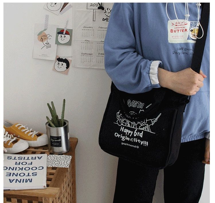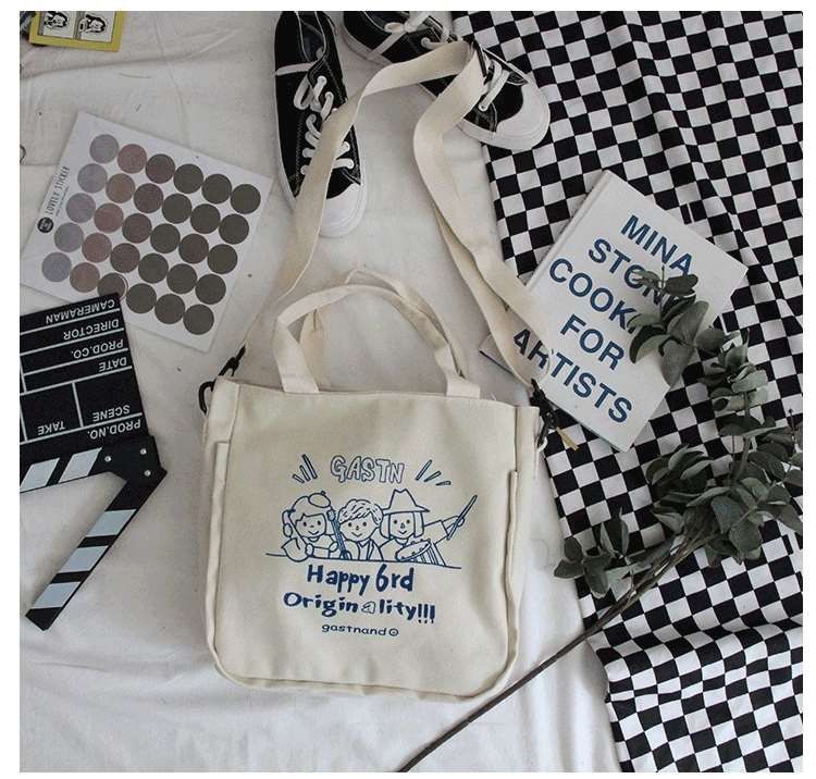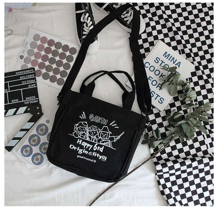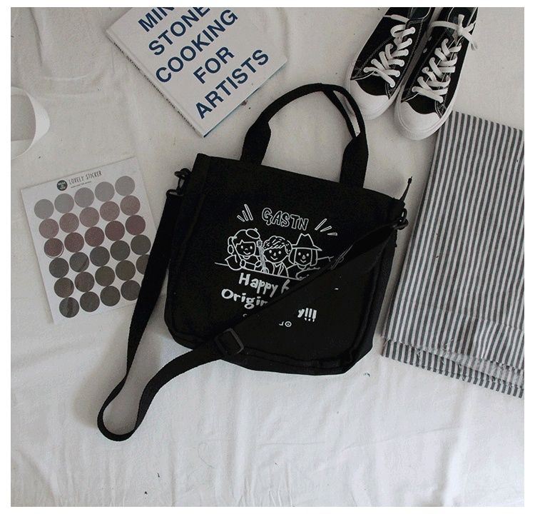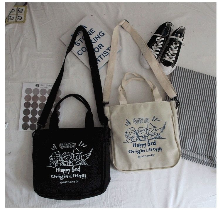 【内有隔层袋,合理分配置放空间】INS爆款倍儿火大学生少女童趣印花帆布,上课斜挎包单肩包热卖