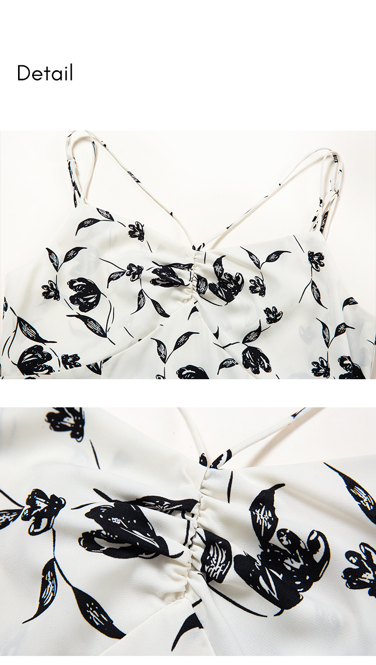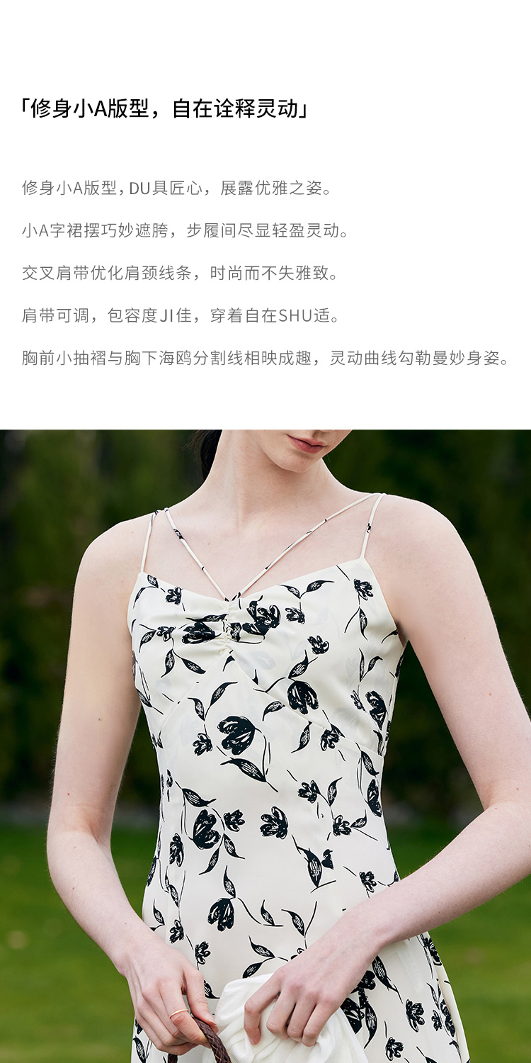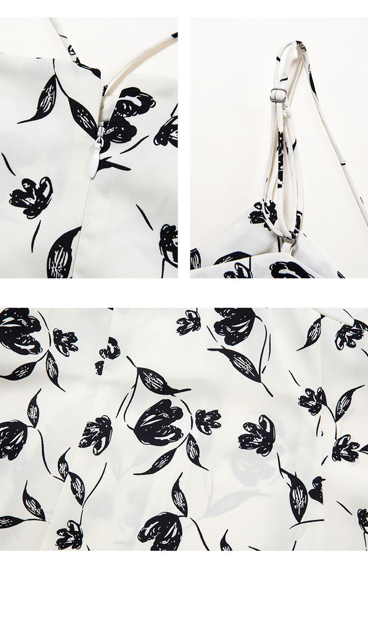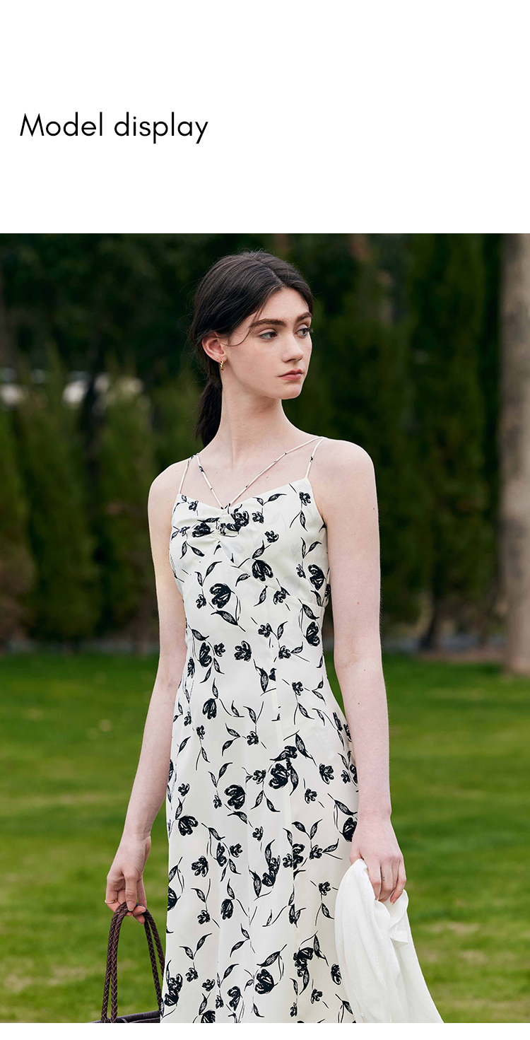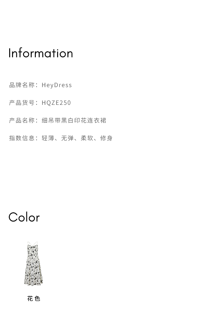 HeyDress黑白印花吊带裙女夏季法式复古收腰浪漫剪影碎花连衣裙子