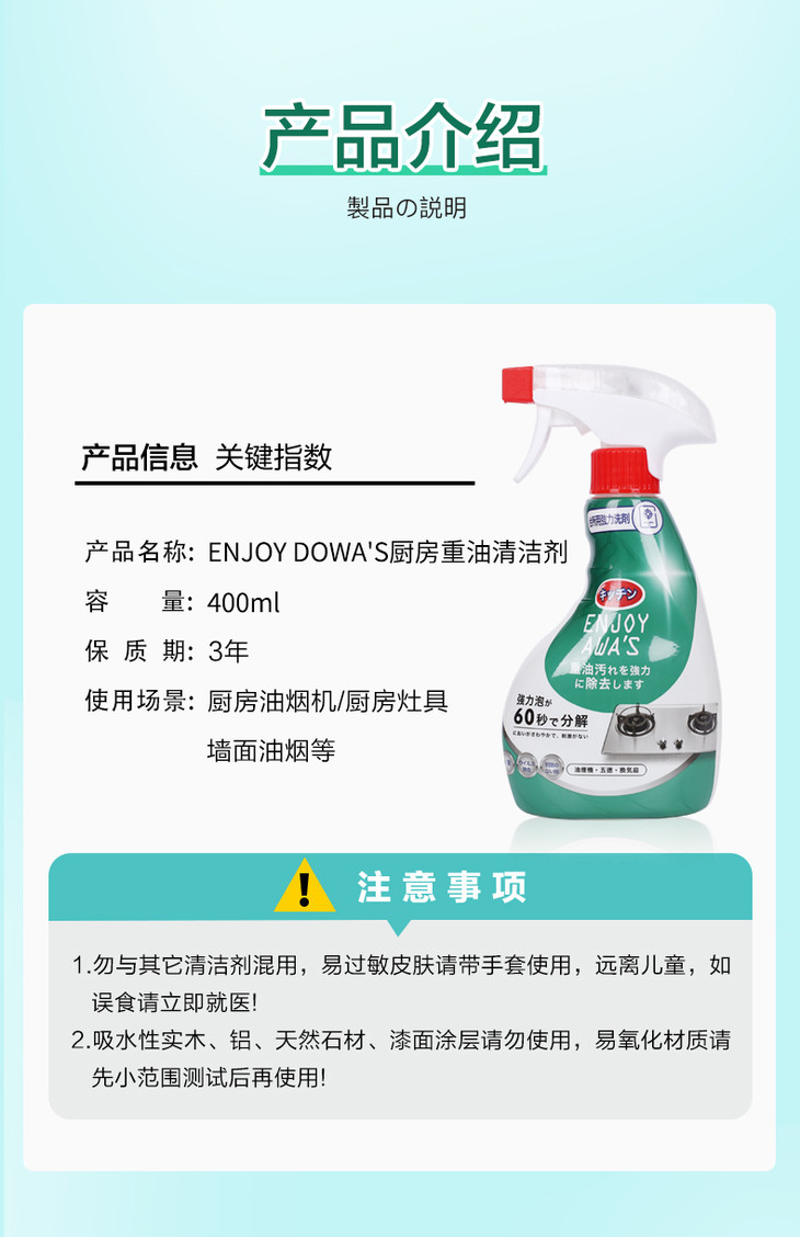 商品名称】ENJOY DOWA'S 厨房去重油污清洁剂