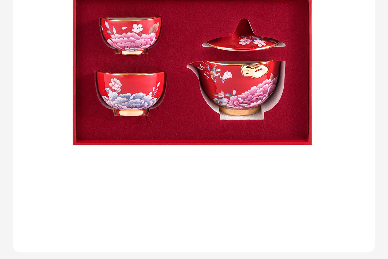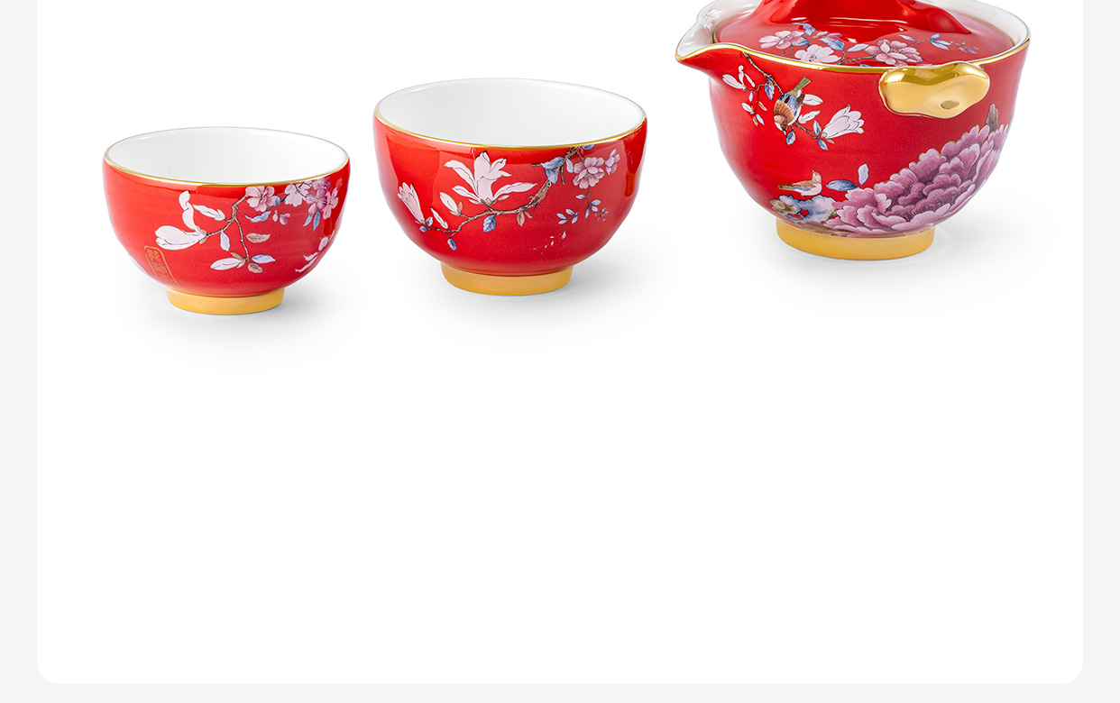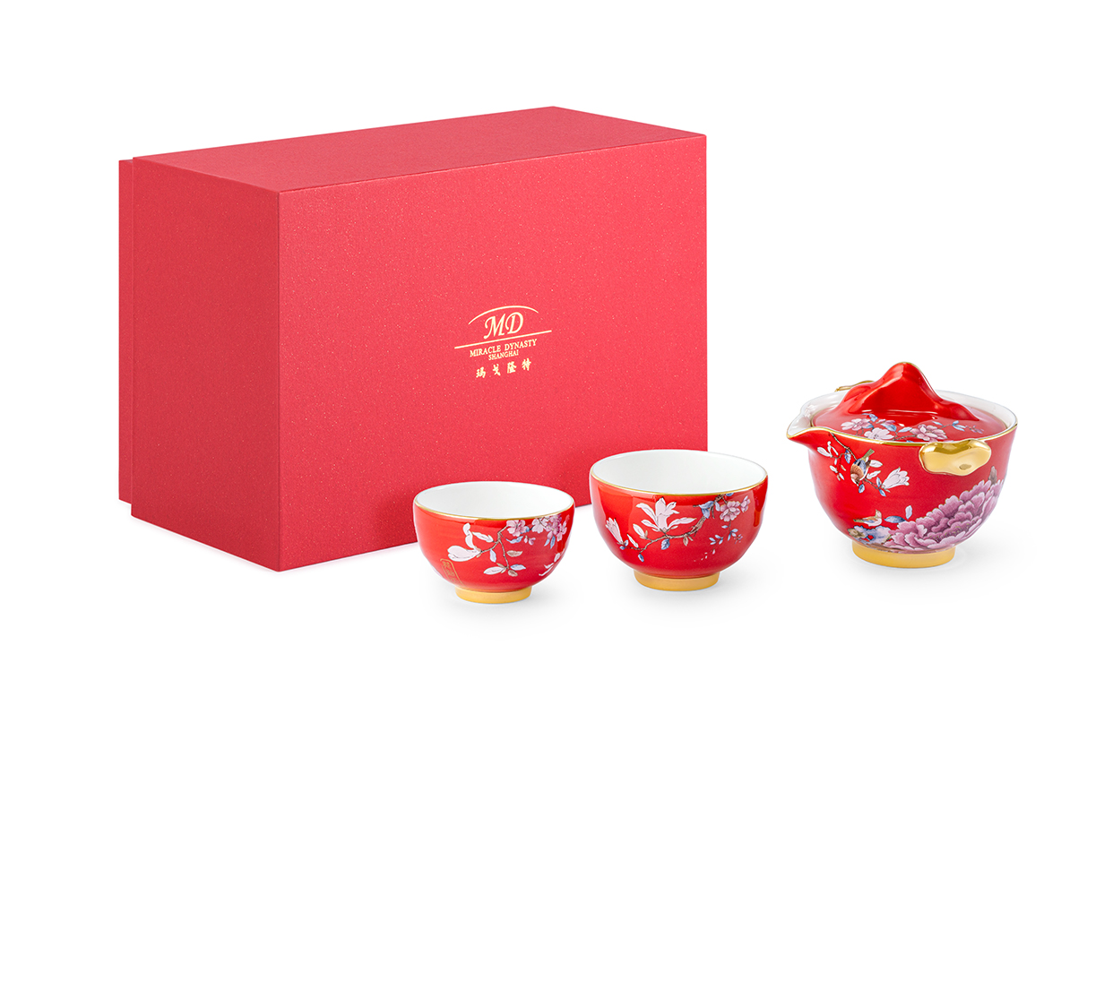 【玛戈隆特】盛世牡丹百年好合陪嫁结婚礼物1壶2杯便携式旅行家用茶具