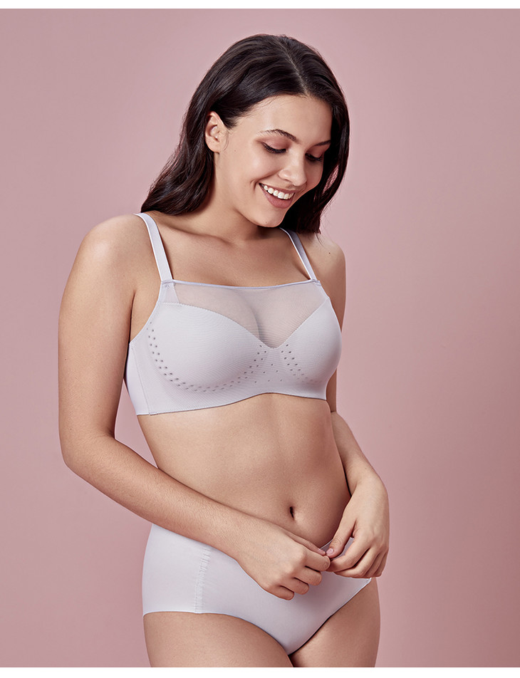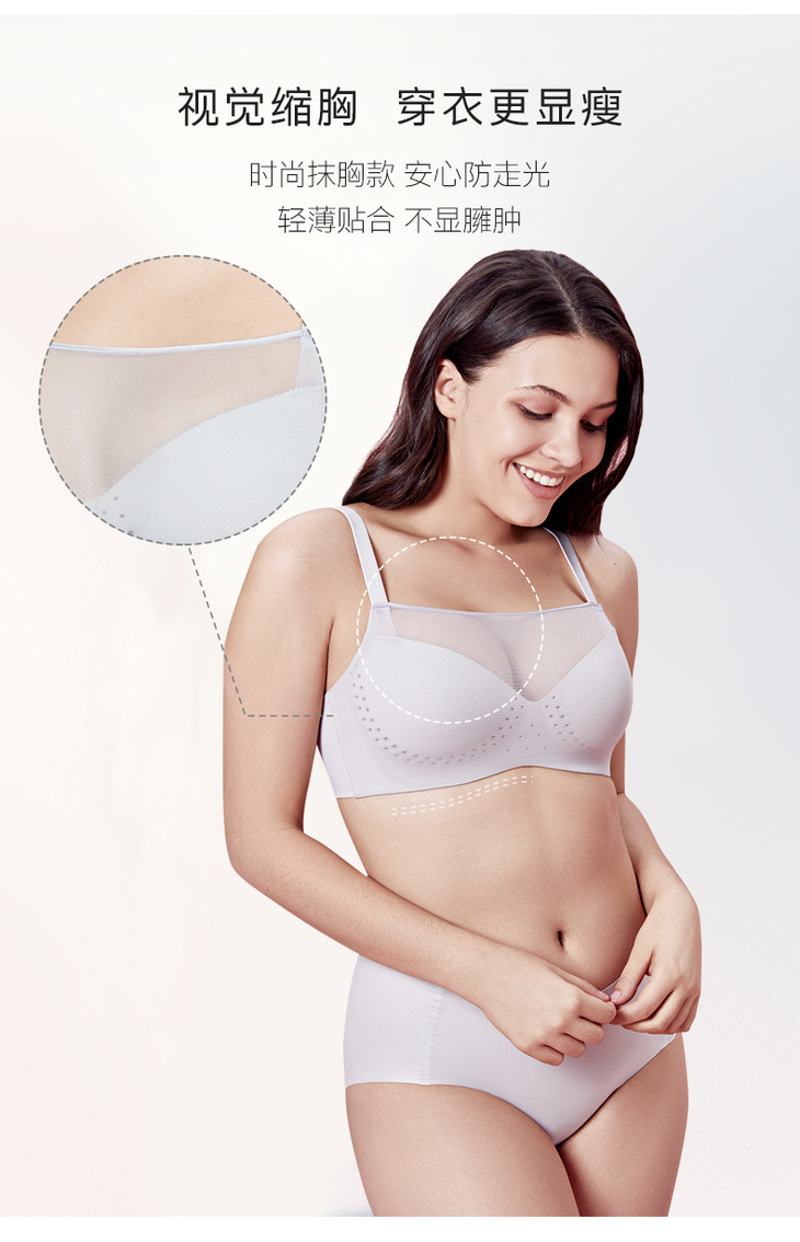 轻薄网纱洞洞连体杯文胸 大码内衣女无钢圈大胸显小胸透气夏