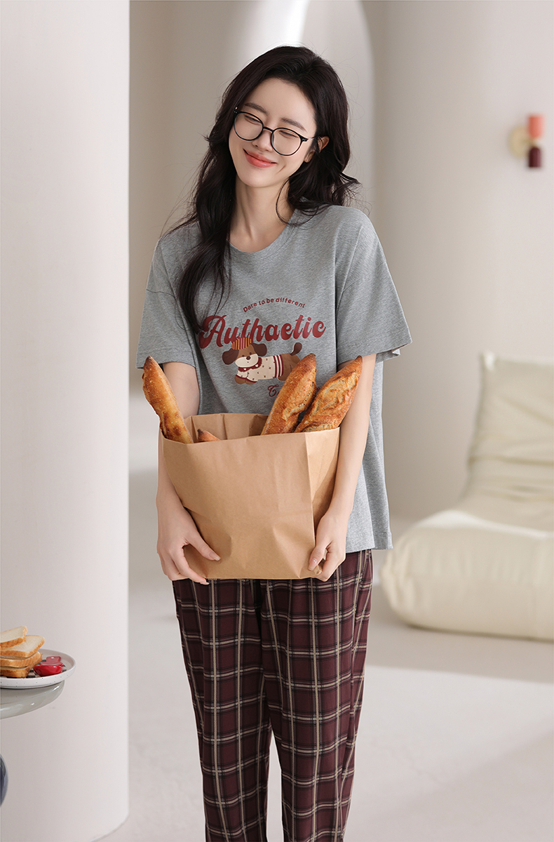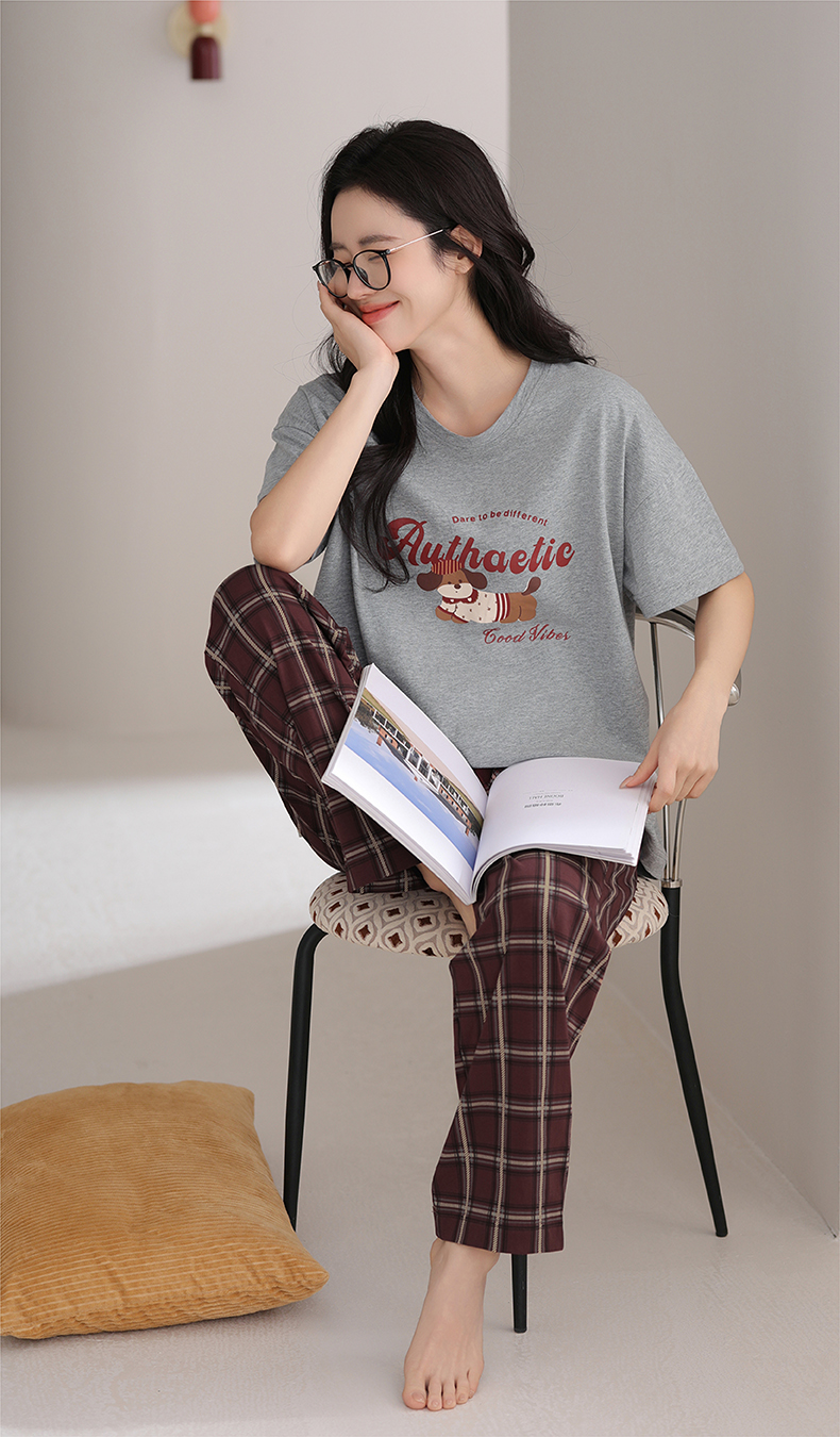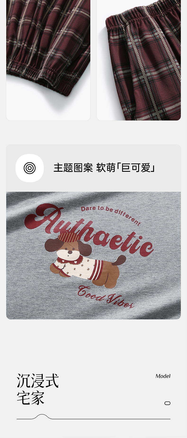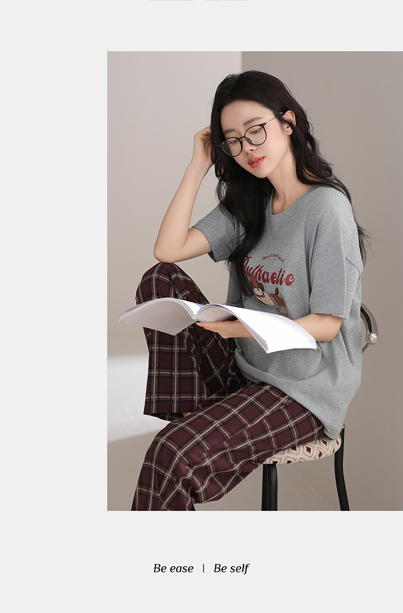 芬腾睡衣女款夏季短袖长裤薄款休闲可爱圆领套头可外穿家居服套装