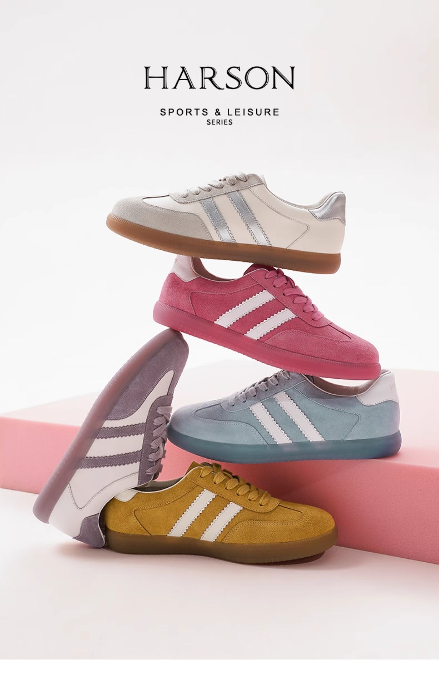 哈森休闲轻便德训鞋女2025春季新款彩色个性系带运动鞋HCS256110