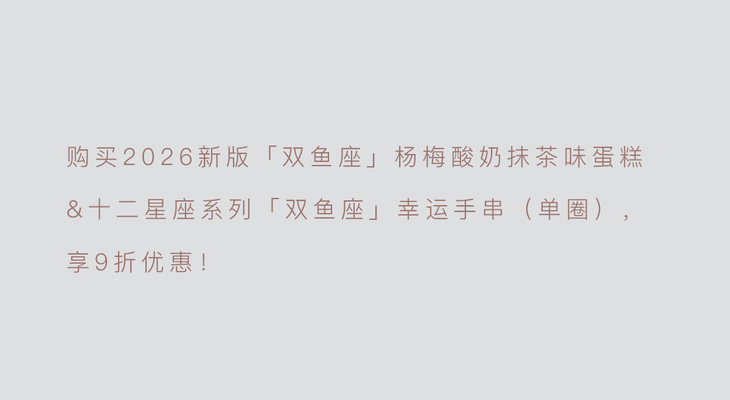 9折优惠| 2026新版「双鱼座」杨梅酸奶抹茶味蛋糕&「双鱼座」手串