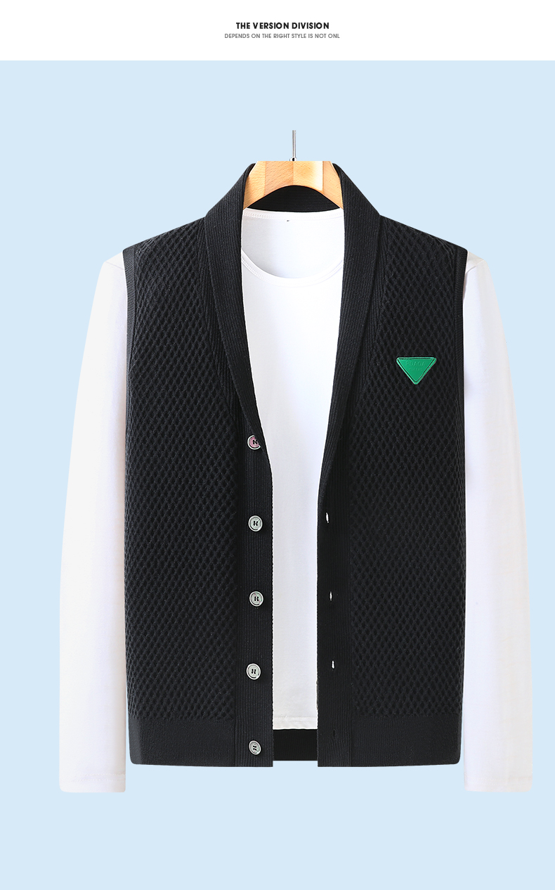 【 新款DBJ】大依优型大码男装春款翻领针织马甲开衫简约休闲坎肩宽松男百搭无袖