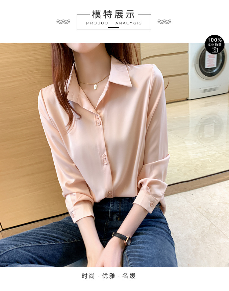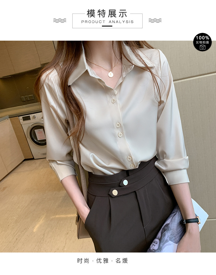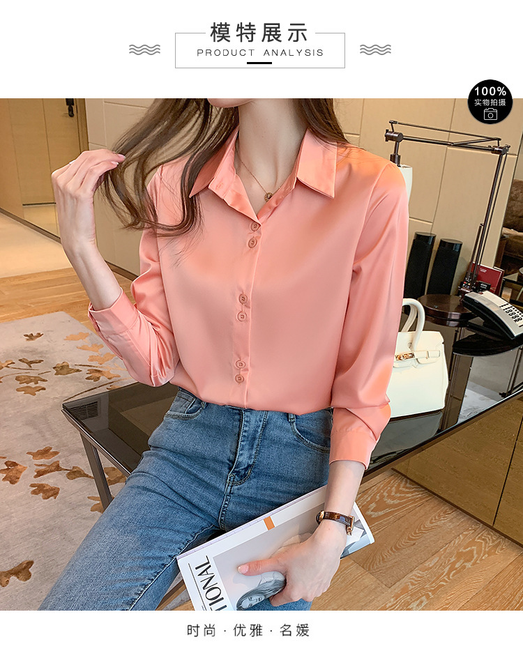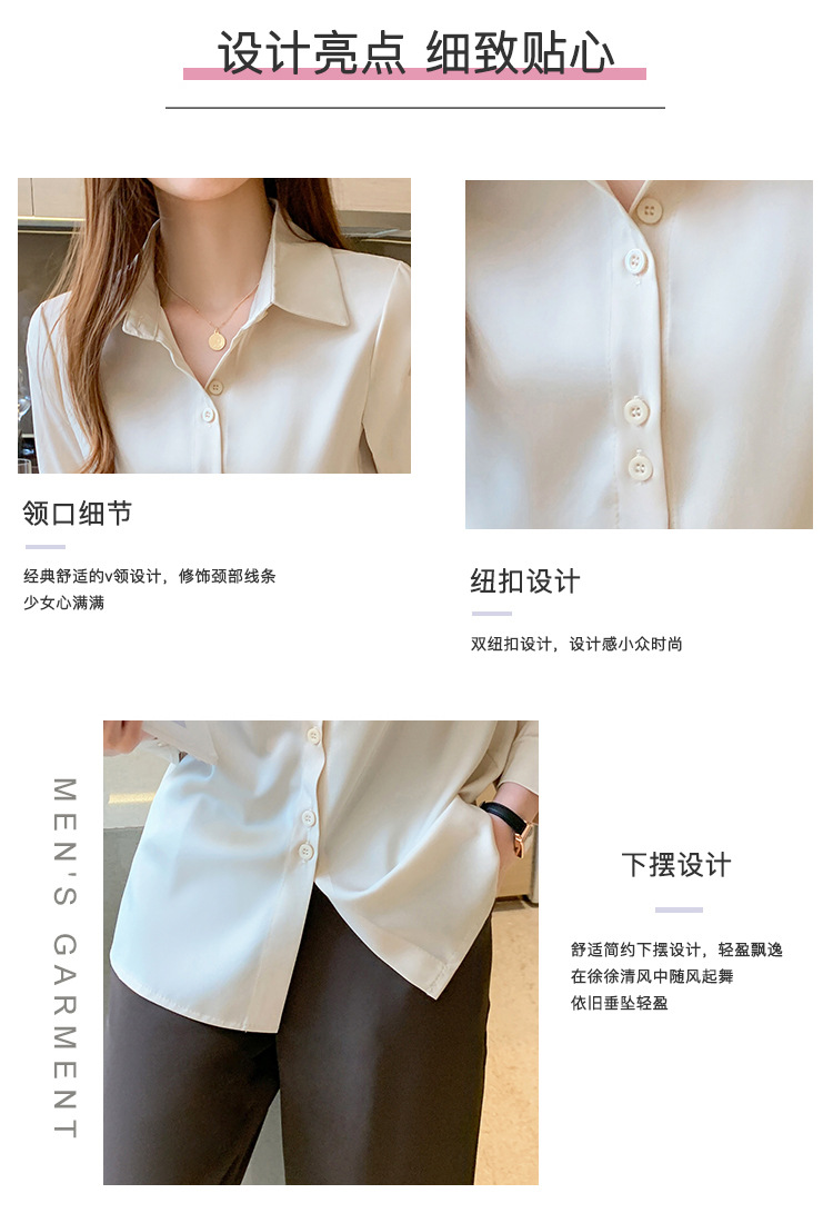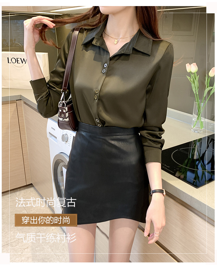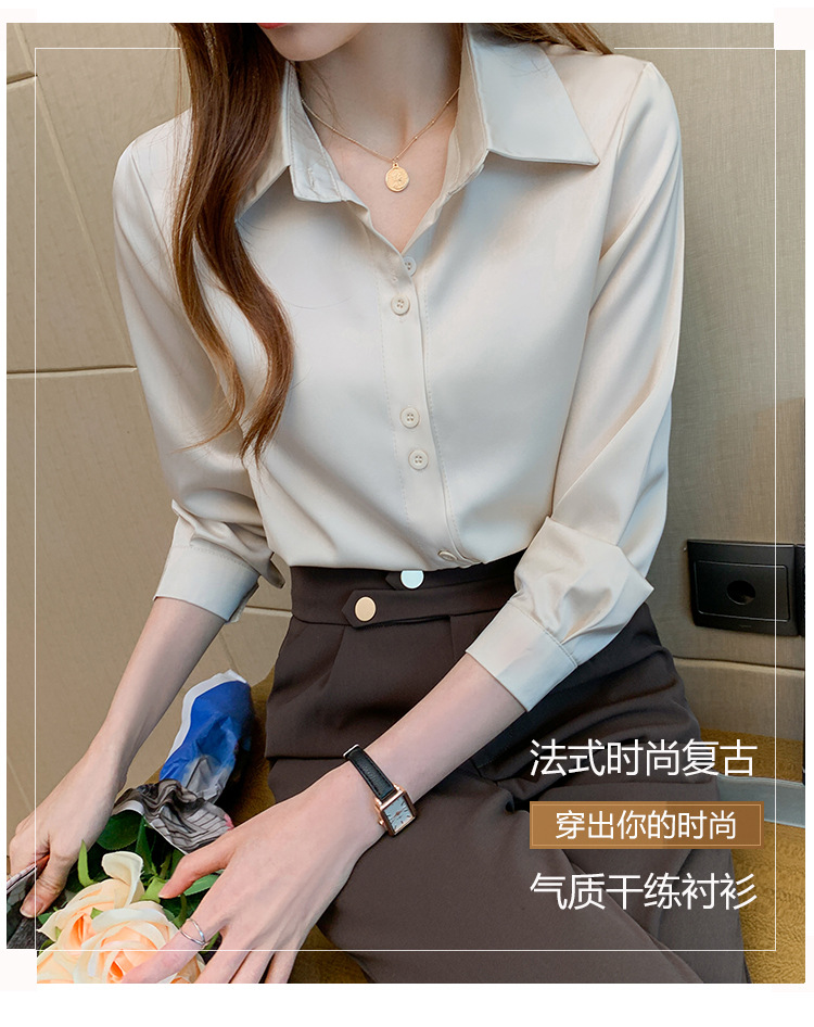 加绒加厚衬衫女设计感小众,复古港味上衣醋酸缎面衬衣KQL-617T8016