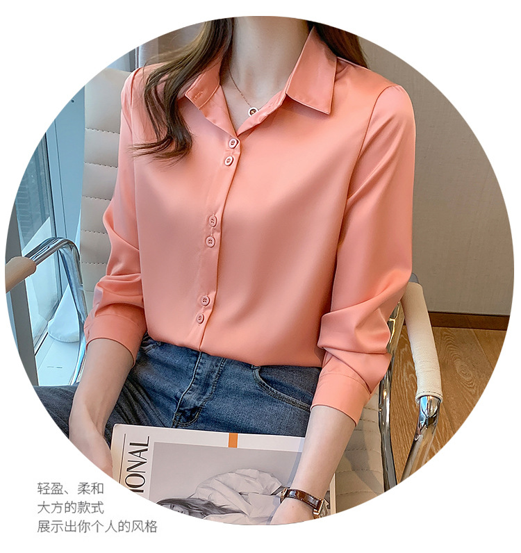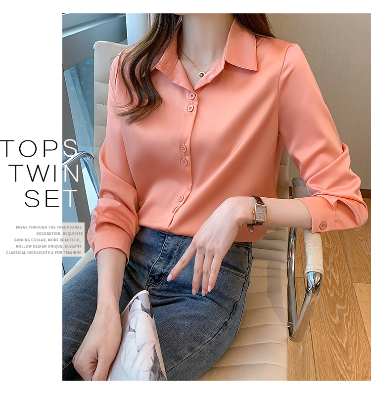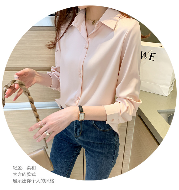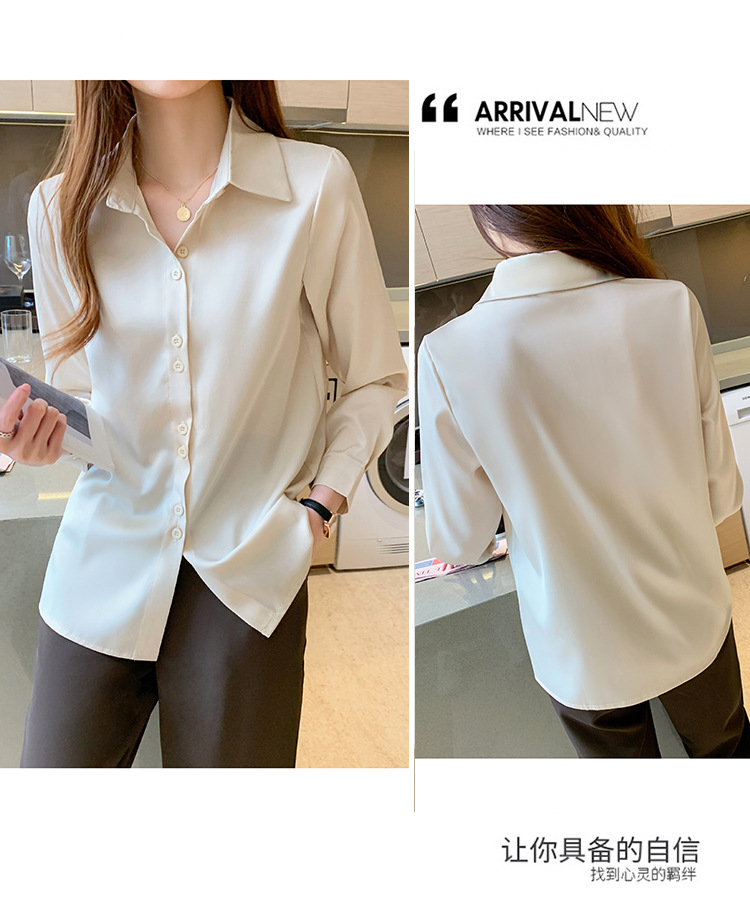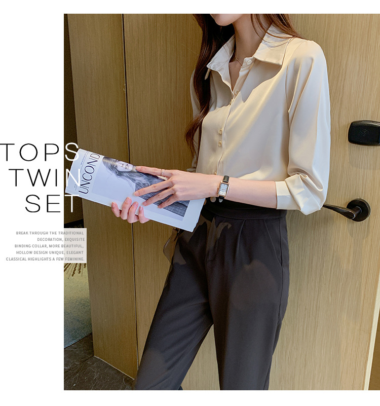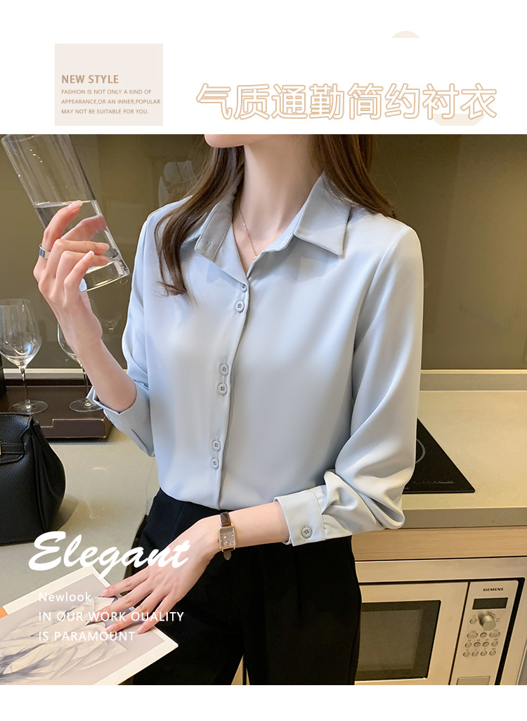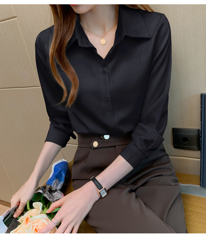 加绒加厚衬衫女设计感小众,复古港味上衣醋酸缎面衬衣KQL-617T8016
