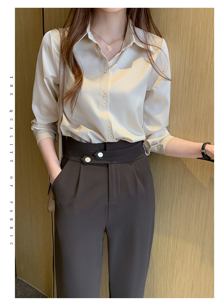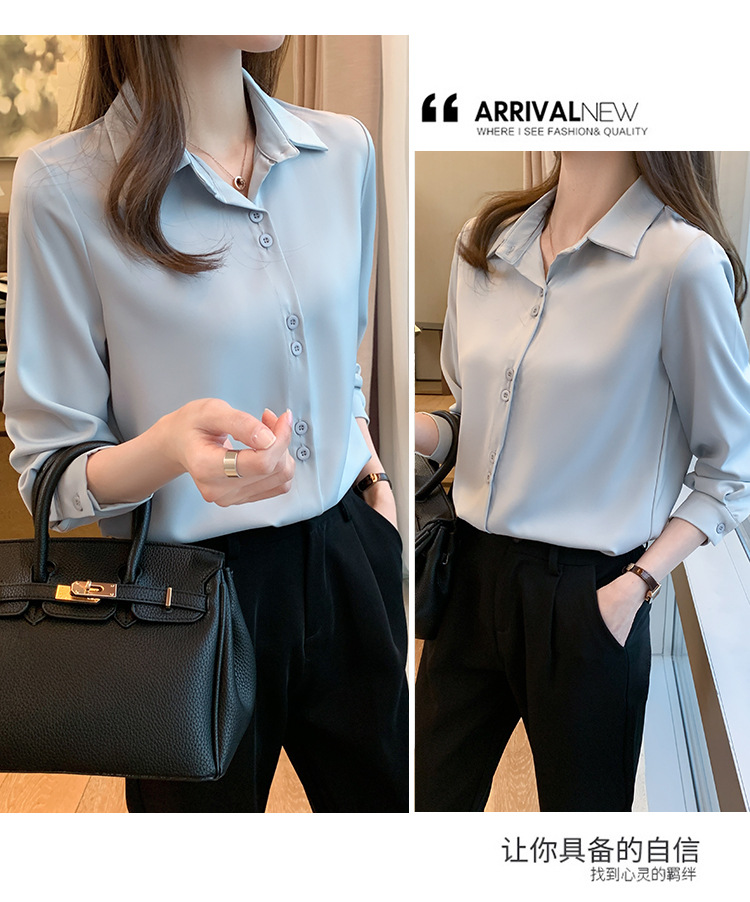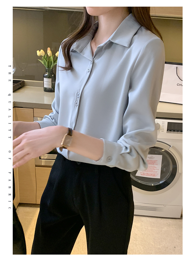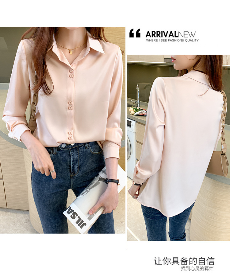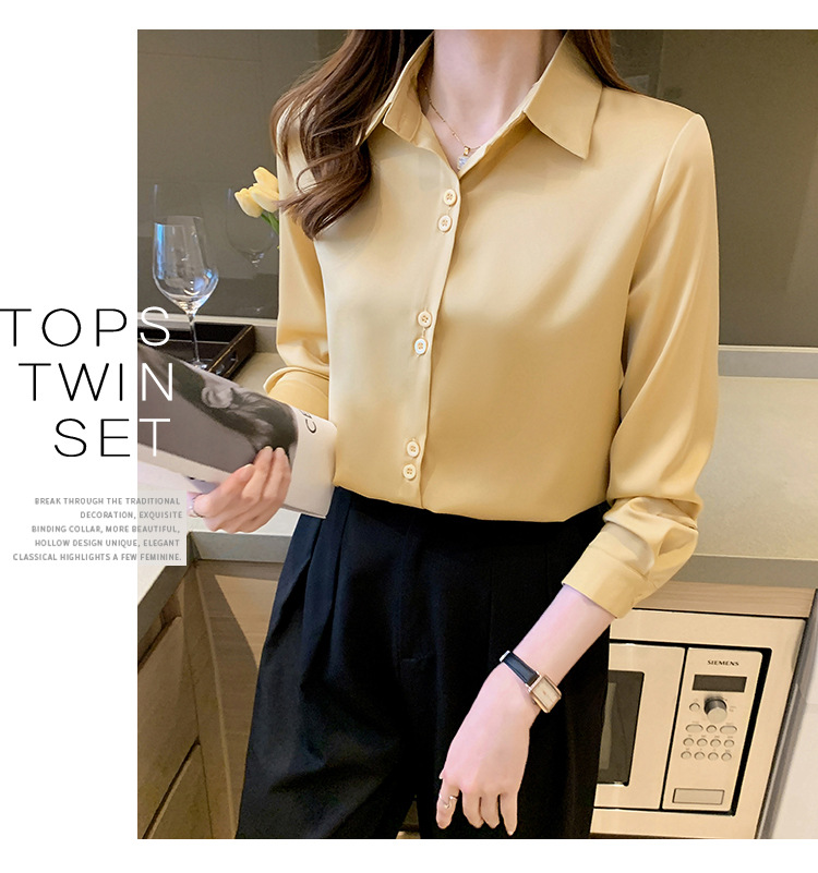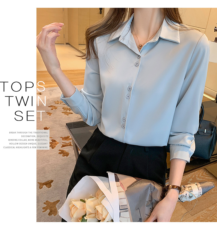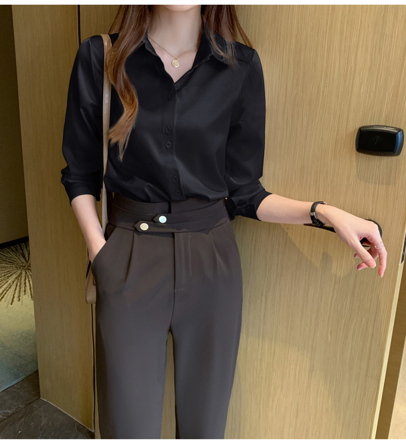 加绒加厚衬衫女设计感小众,复古港味上衣醋酸缎面衬衣KQL-617T8016