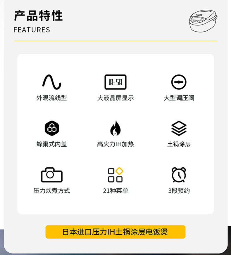 TIGER虎牌日本进口智能压力IH土锅涂层电饭煲(JPM-S10C)