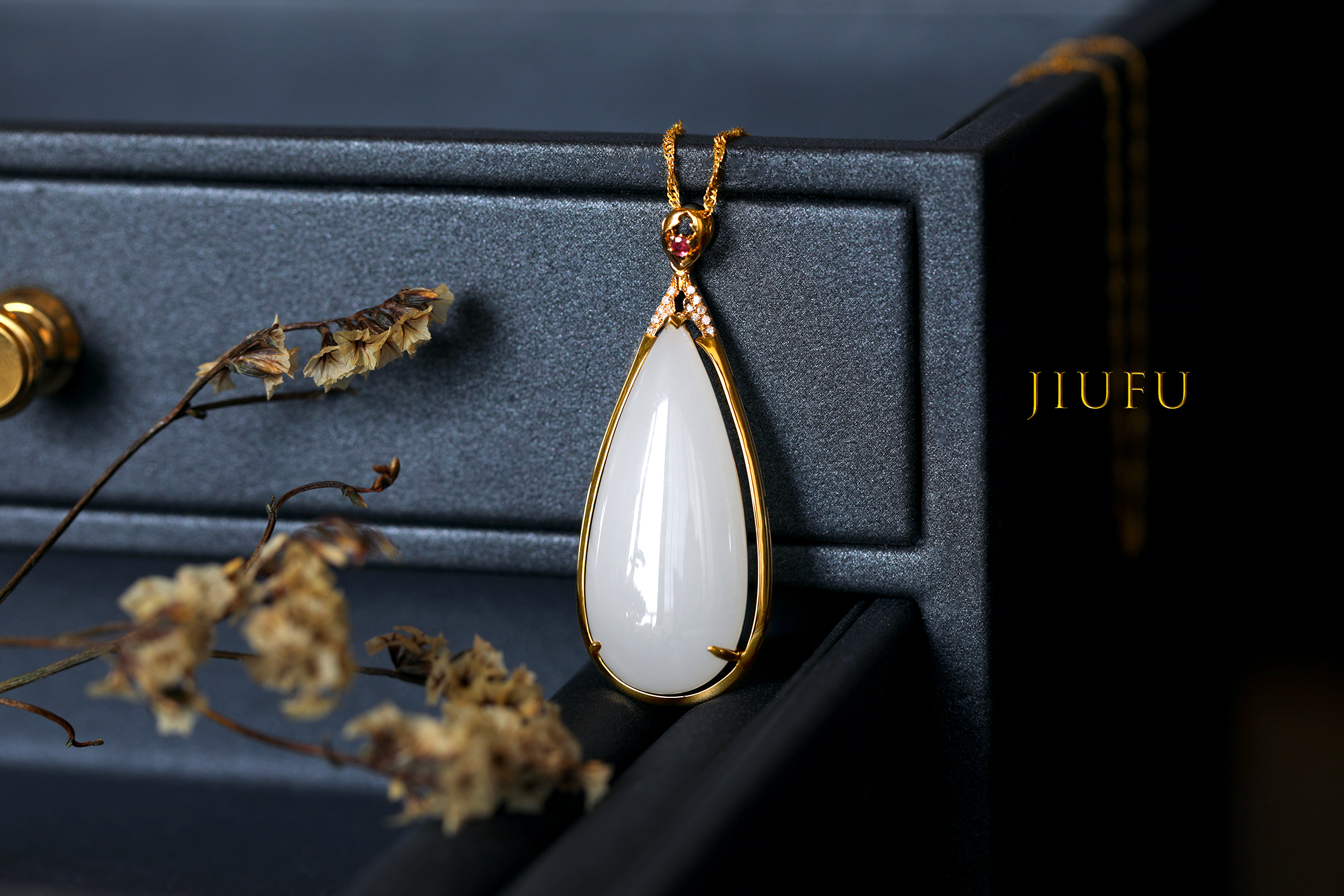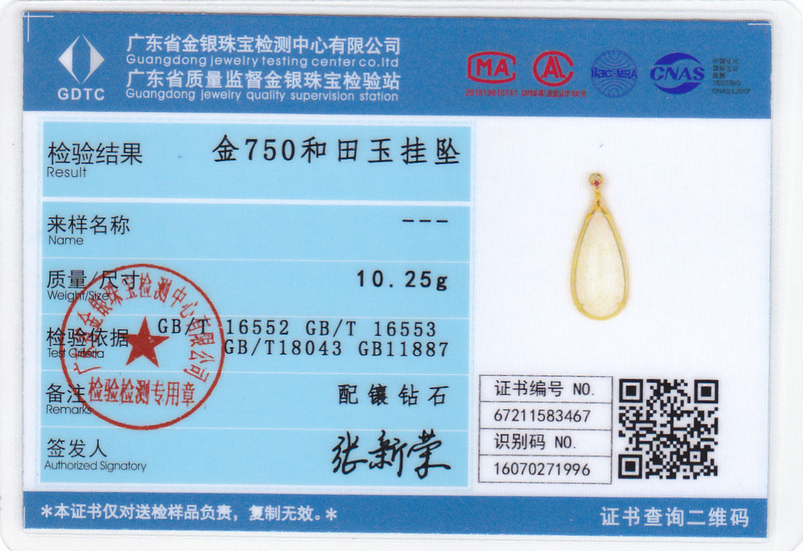 18K黄金和田玉(白玉)吊坠