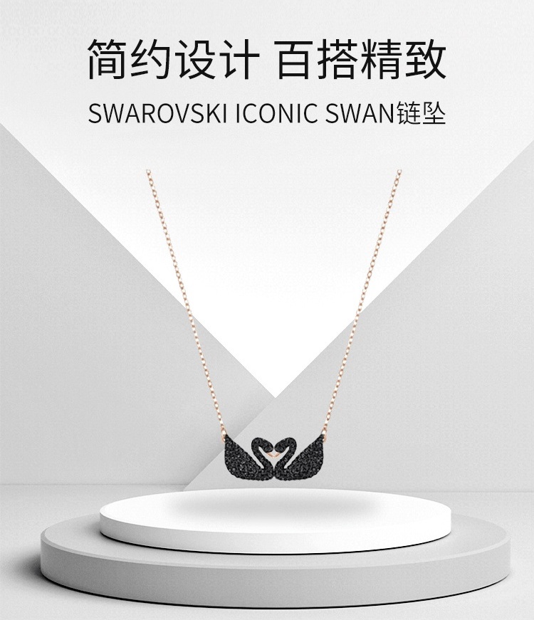 奥地利Swarovski 施华洛世奇 黑色双天鹅女士项链 5296468