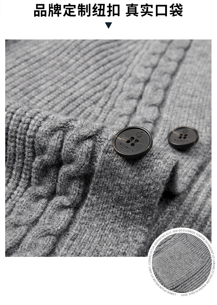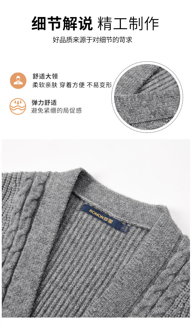 27DKTD8315【复古扭花】罗蒙经典针织开衫男士外套男厚实保暖针织衫男士毛衣男