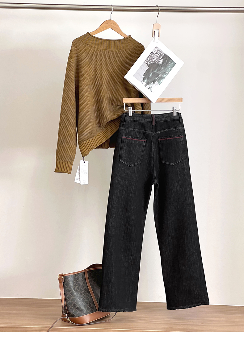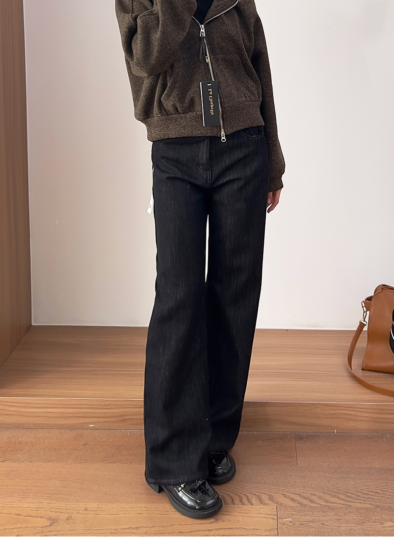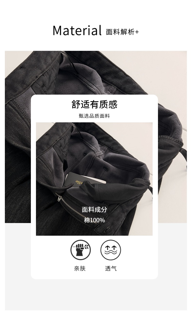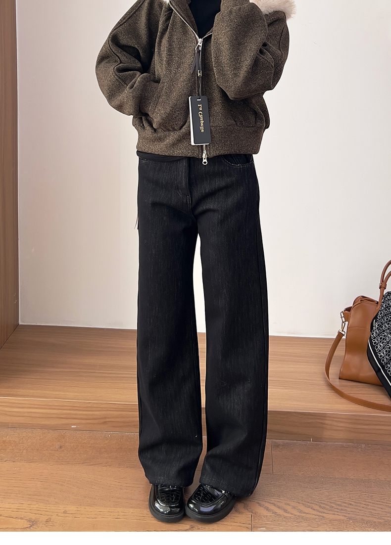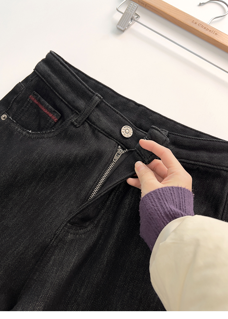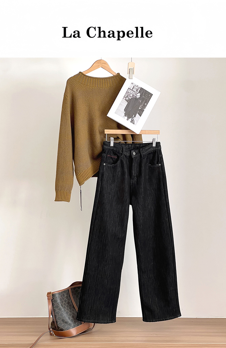 会员福利【时髦抗冻/加绒加厚】拉夏贝尔/La Chapelle高腰显瘦窄版直筒裤恒温一体绒牛仔裤