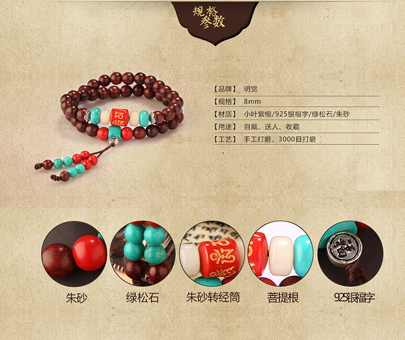 小叶紫檀原创佛珠手串8mm送女友闺蜜节日生日礼物