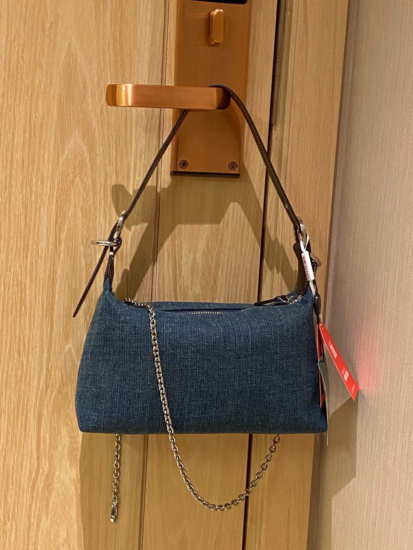 各种牛仔限量款都不及这款经典的耐看。这包真的超实用,容量惊人又百搭,而且牛仔包特别适合四季,毫无违和感,经常穿t恤的我也能hold得住!百分百正P保证!包型坚挺中带着柔软,上身很随意又不会过于软塌,遇到就抓紧收!