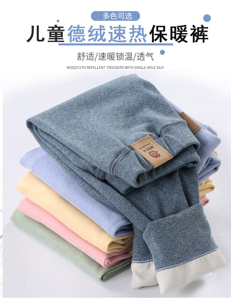 【14.9/起 2条起拍】儿童德绒裤子男童单裤女孩秋冬保暖裤中大童加厚秋裤打底裤聚