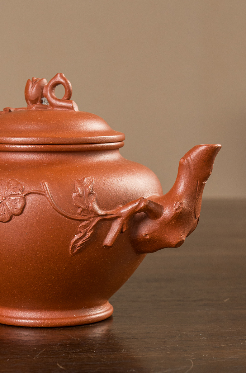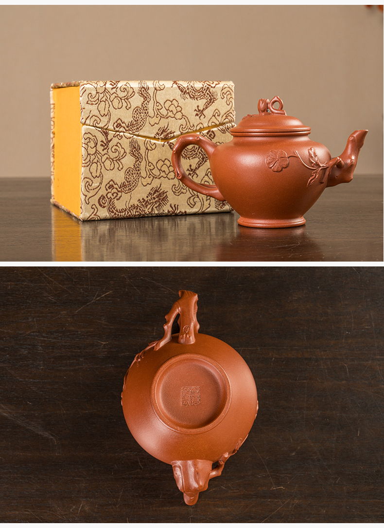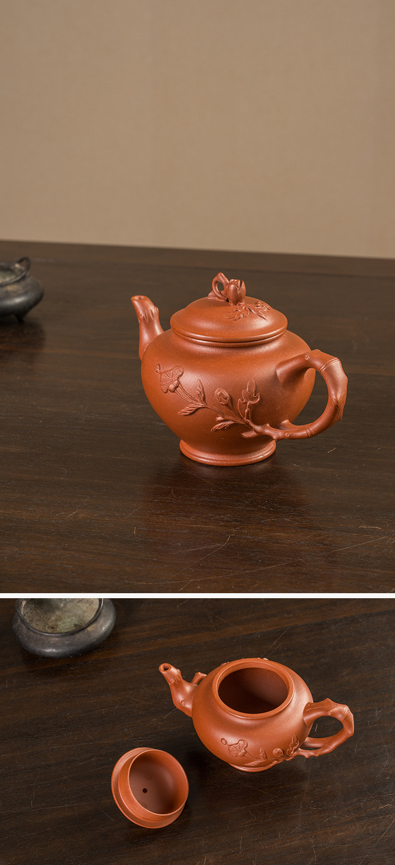 《樱花壶》 冯洪君 高级工艺美术师、宜兴市著名陶艺家、宜兴市陶艺协会会员、 无锡市艺术协会会员、 江苏省紫砂研究学会会员、中国工艺美术学会会员