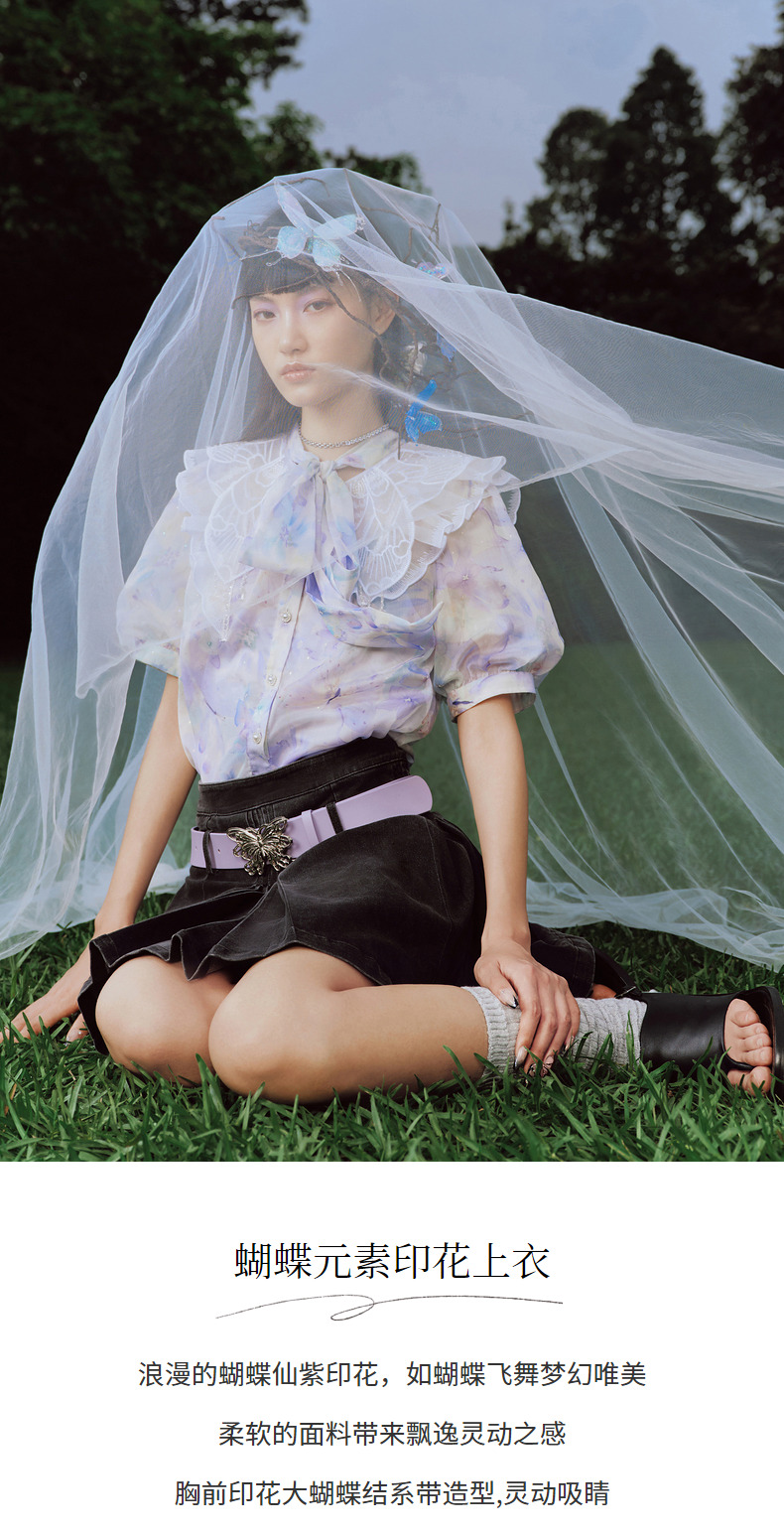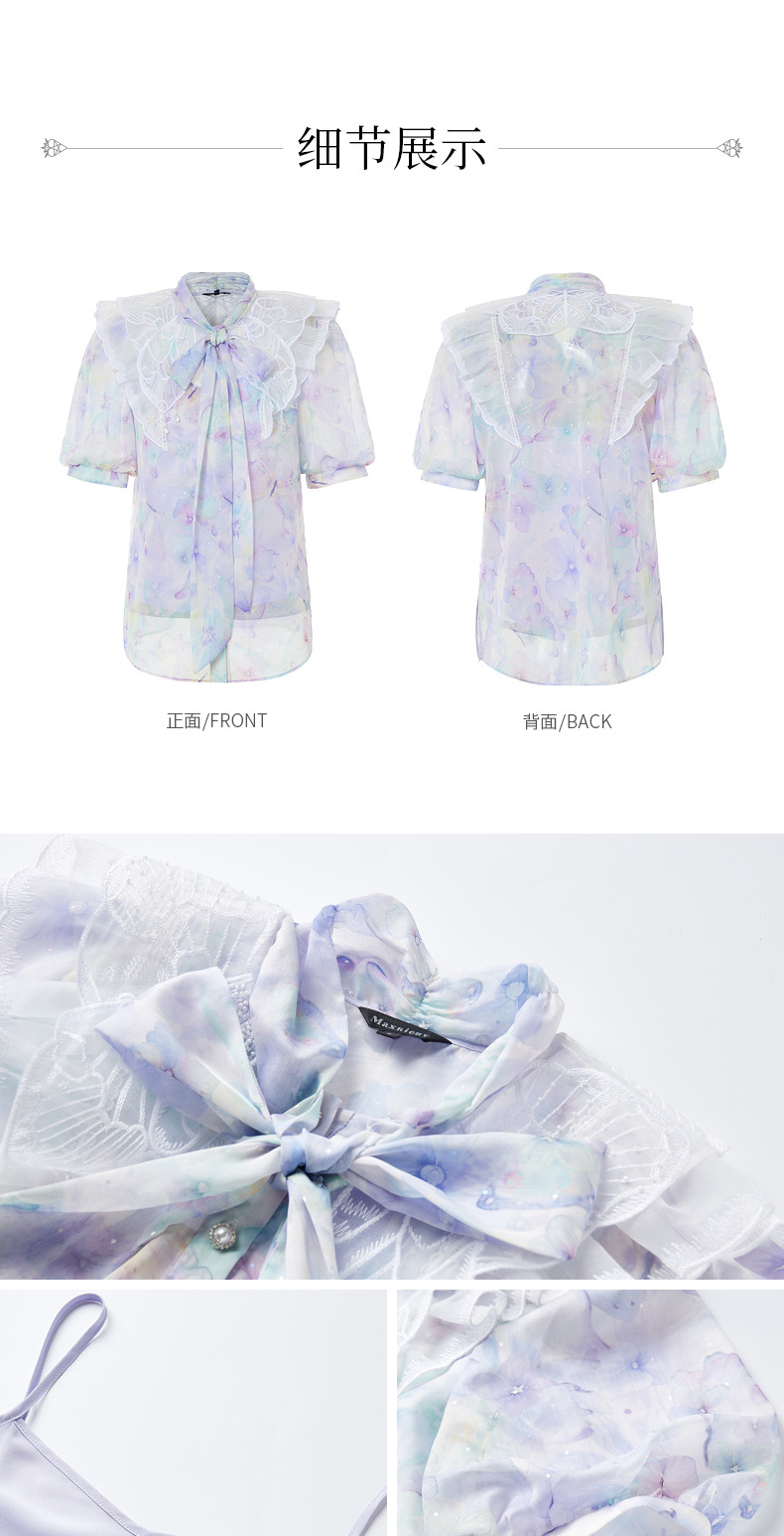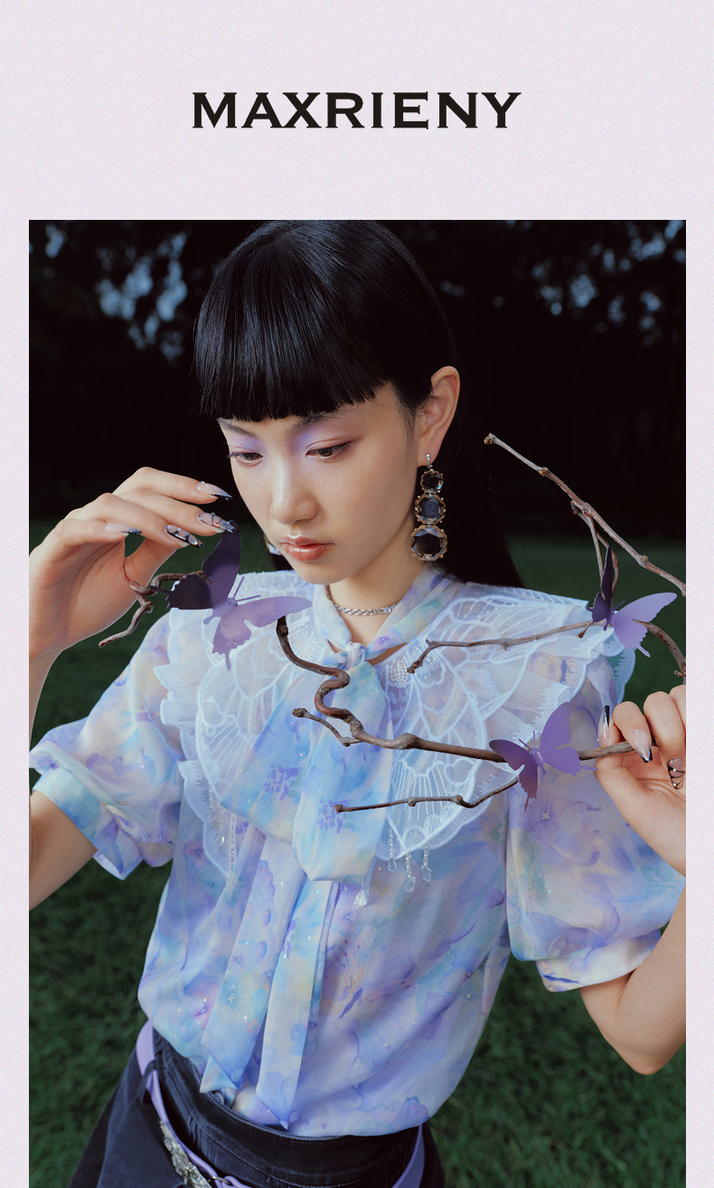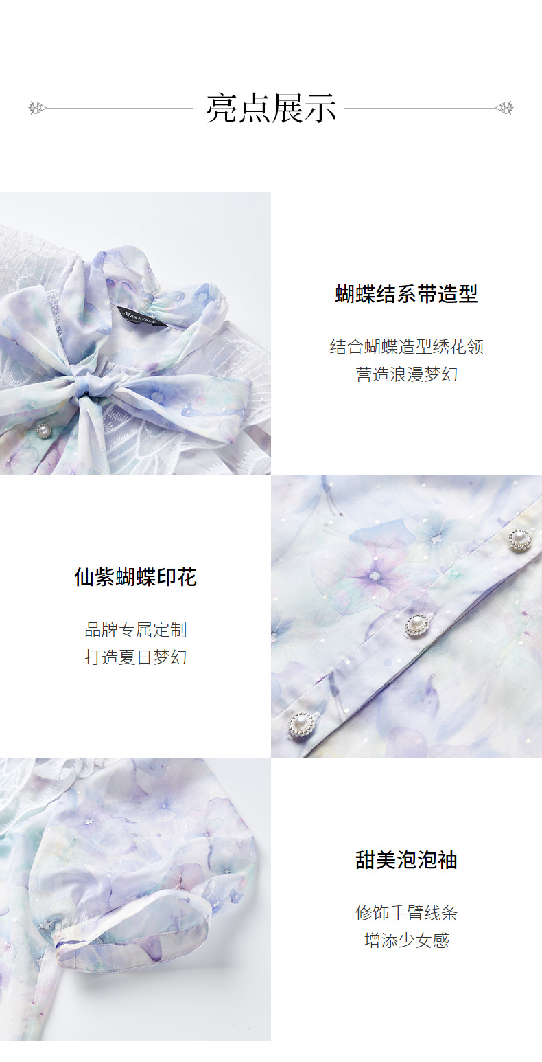 蝴蝶仙紫系列2.0MAXRIENY森系精灵泡泡袖雪纺衫(货号:MC88TP369)