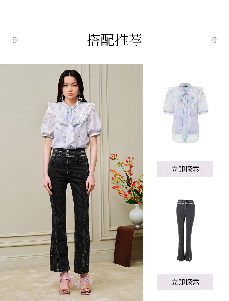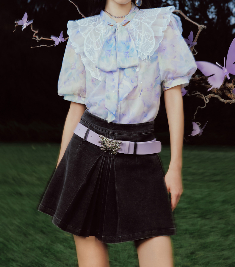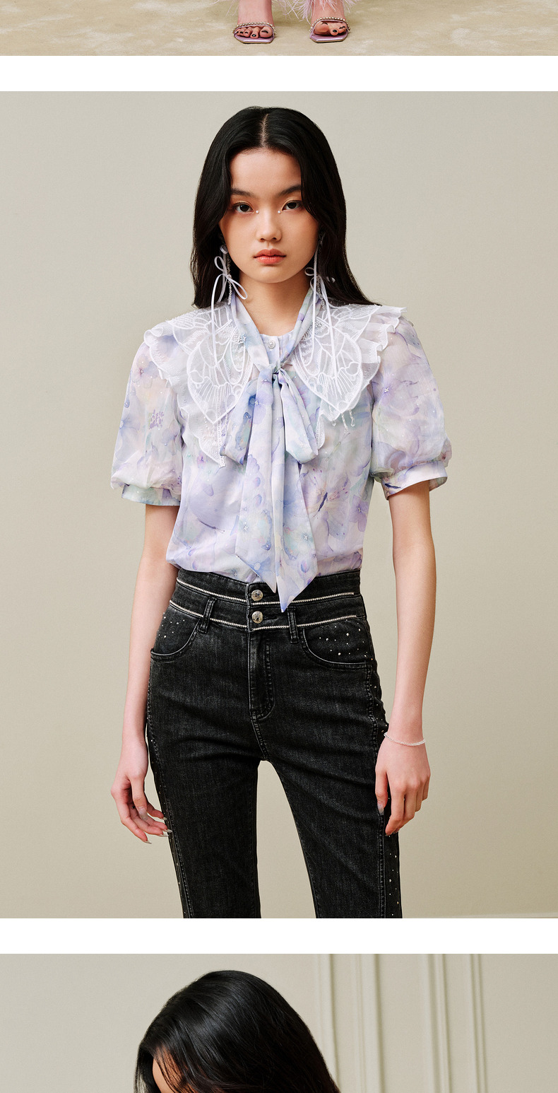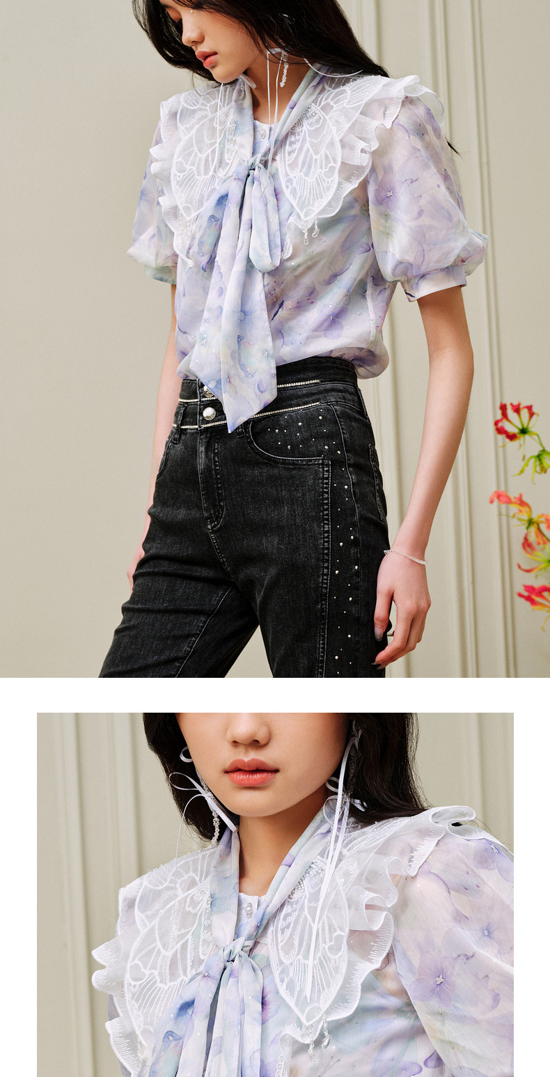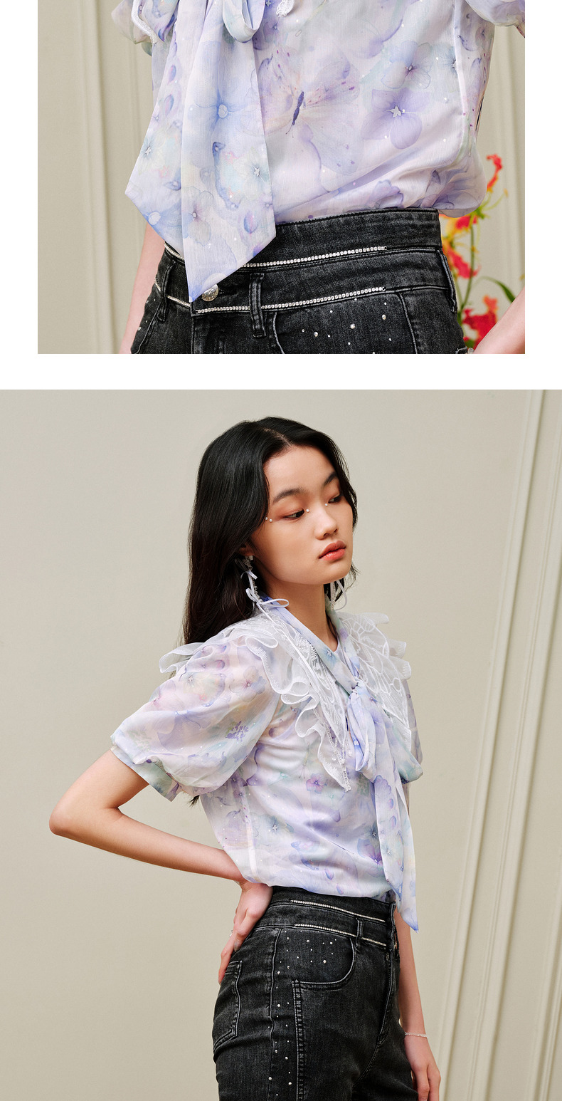 蝴蝶仙紫系列2.0MAXRIENY森系精灵泡泡袖雪纺衫(货号:MC88TP369)