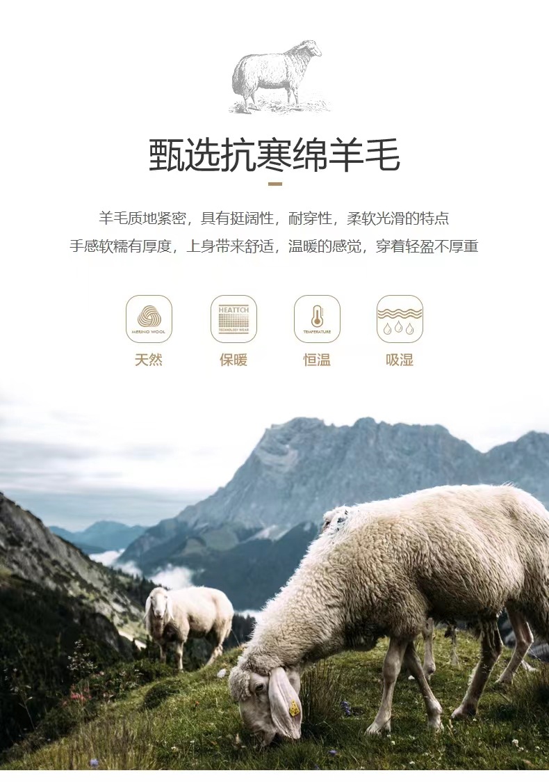 4.绵羊毛,天然的动物毛纤维,珍贵稀少,天然环保,锁住温度,柔软亲肤,轻薄舒适。