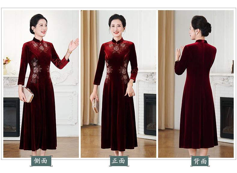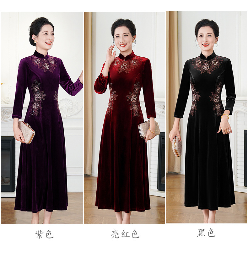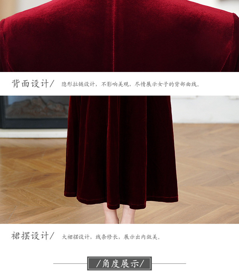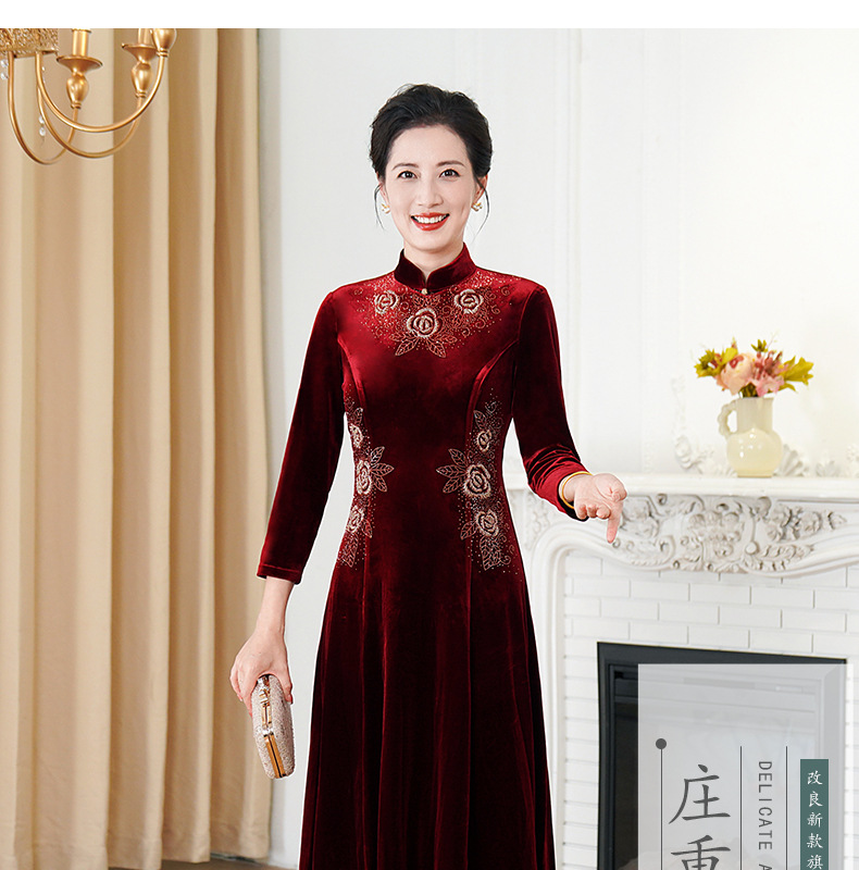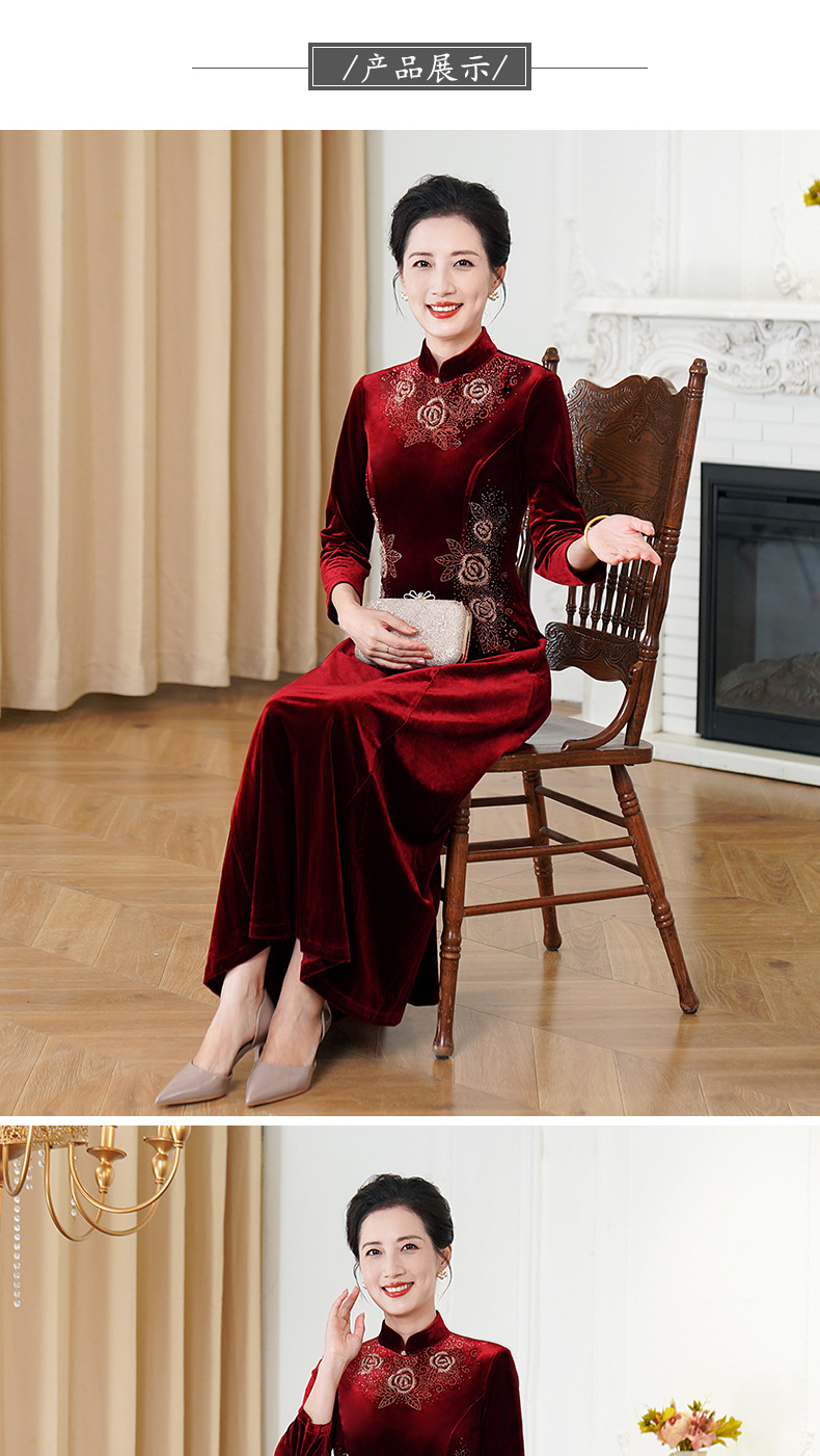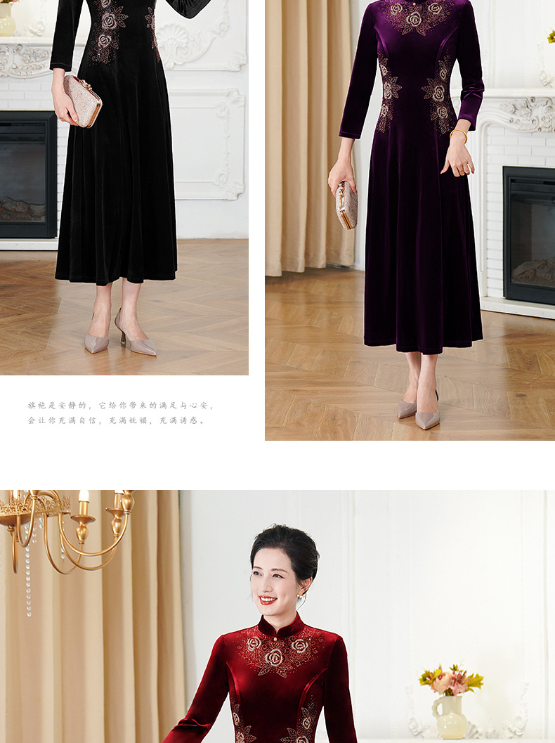 HYX秋装新款高级感韩国绒旗袍连衣裙婚礼国潮婚宴装气质大摆裙