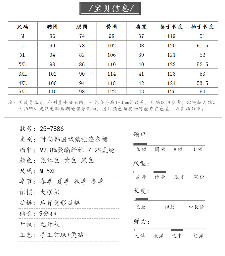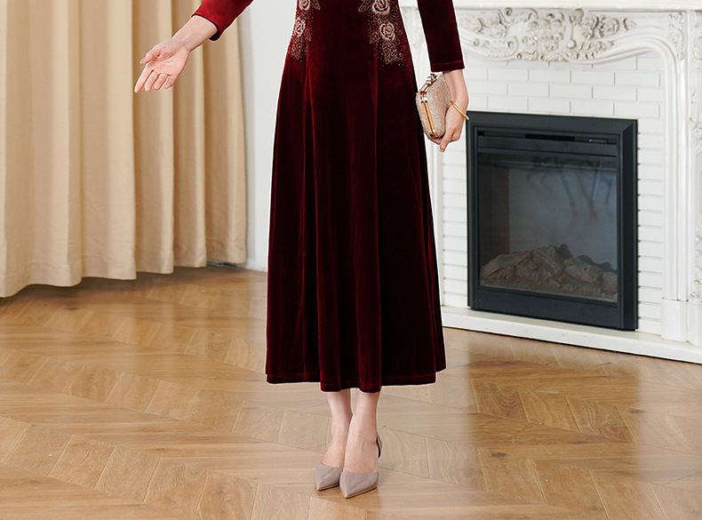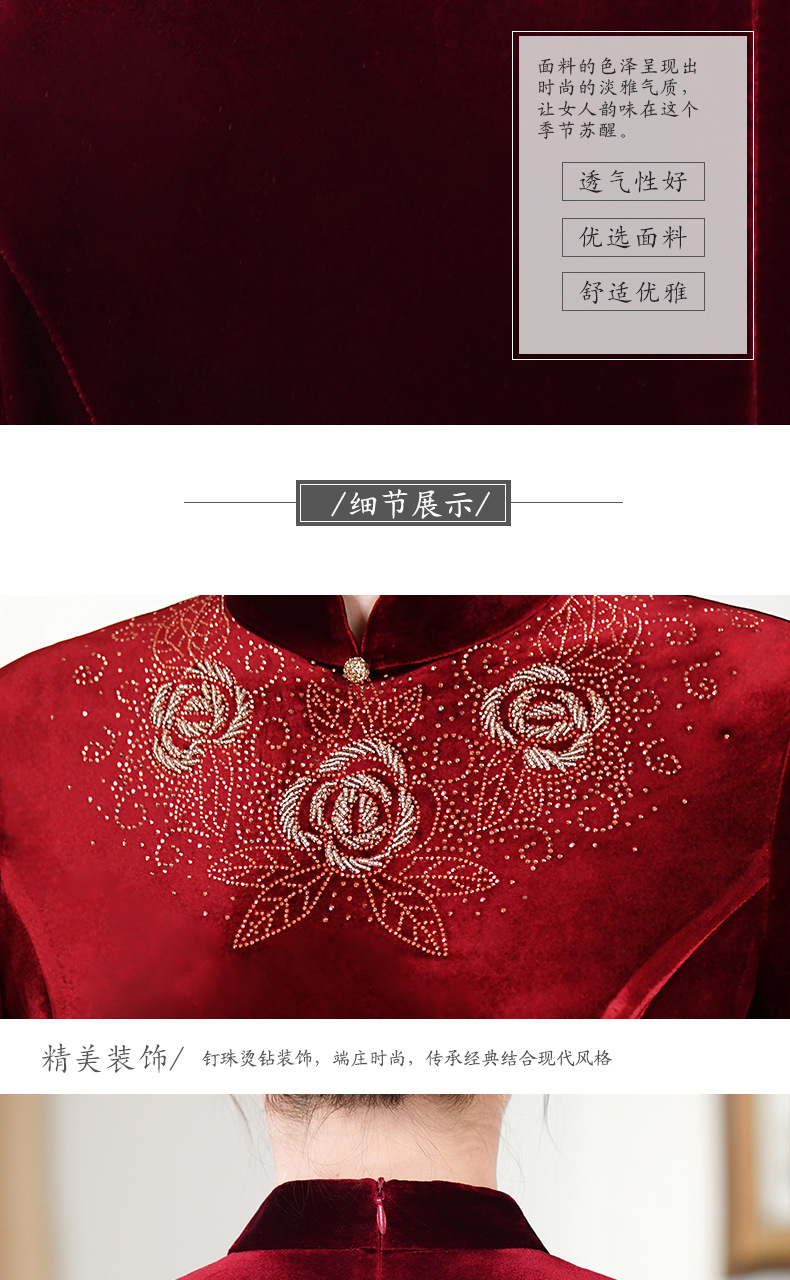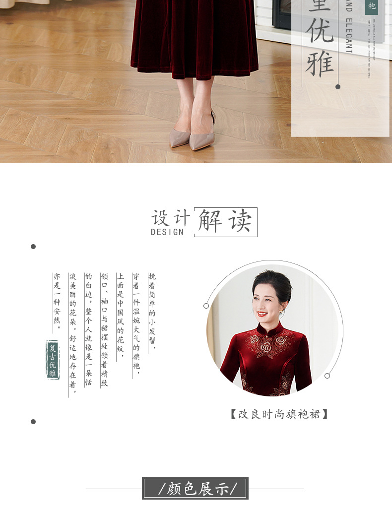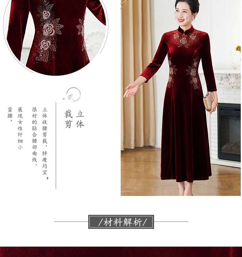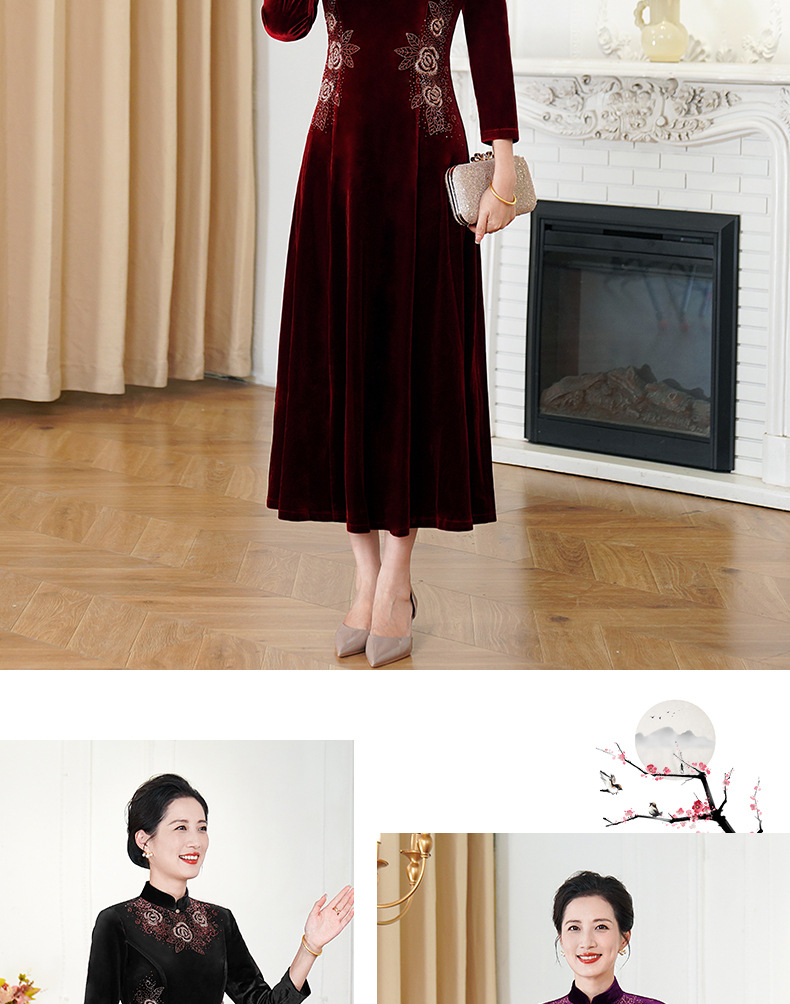 HYX秋装新款高级感韩国绒旗袍连衣裙婚礼国潮婚宴装气质大摆裙