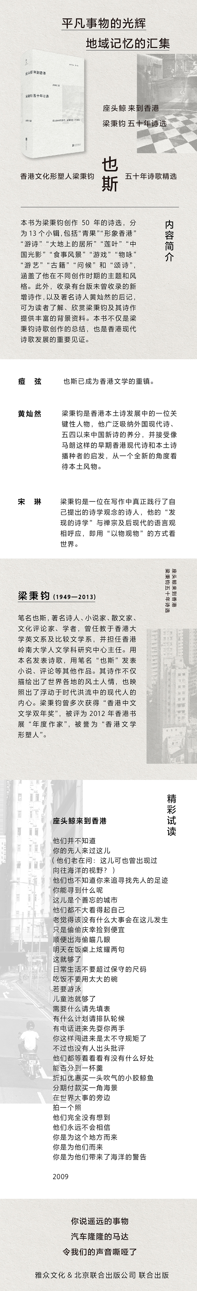 座头鲸来到香港:梁秉钧五十年诗选 | 香港文化形塑人梁秉钧(也斯) 五十年诗歌精选