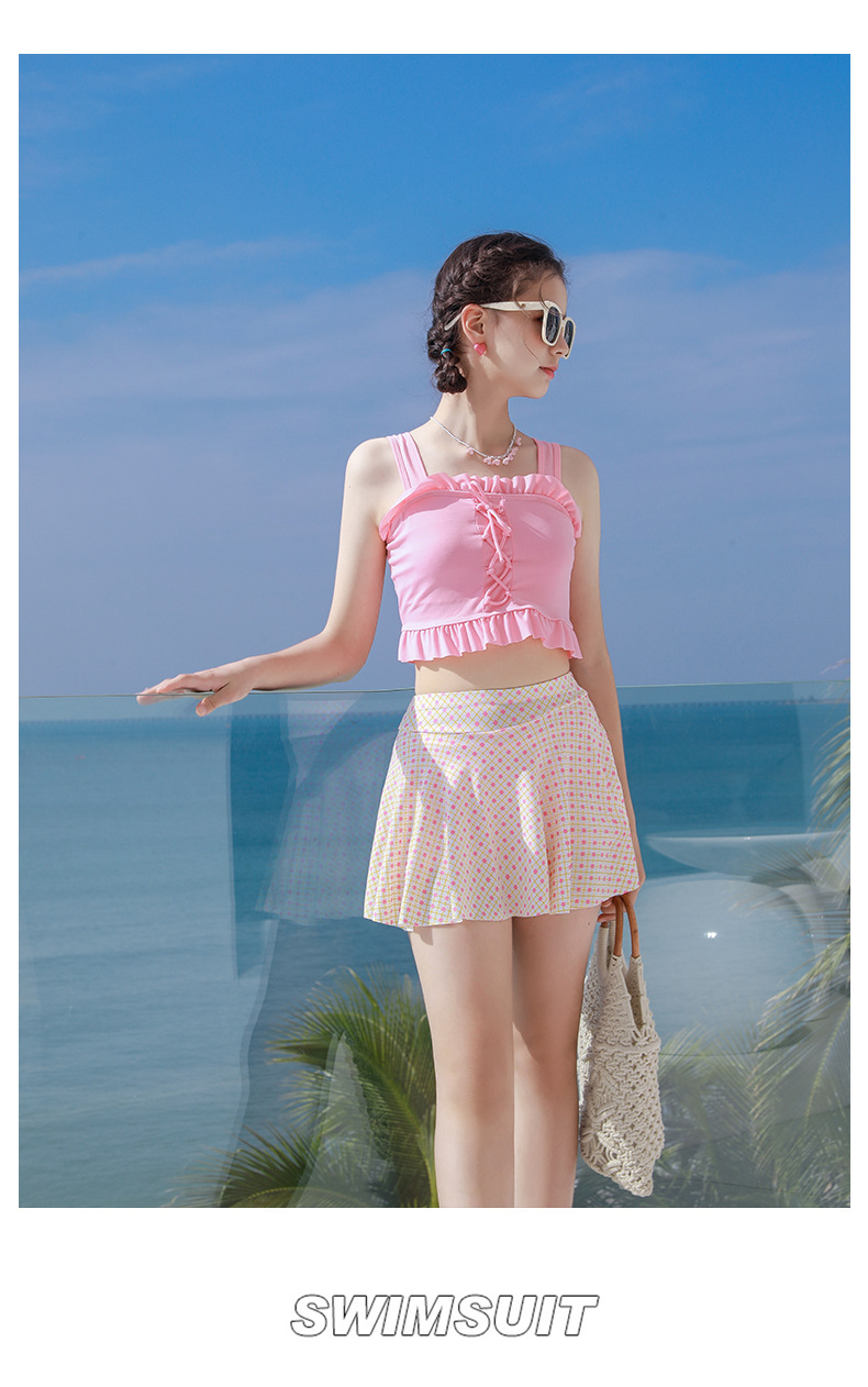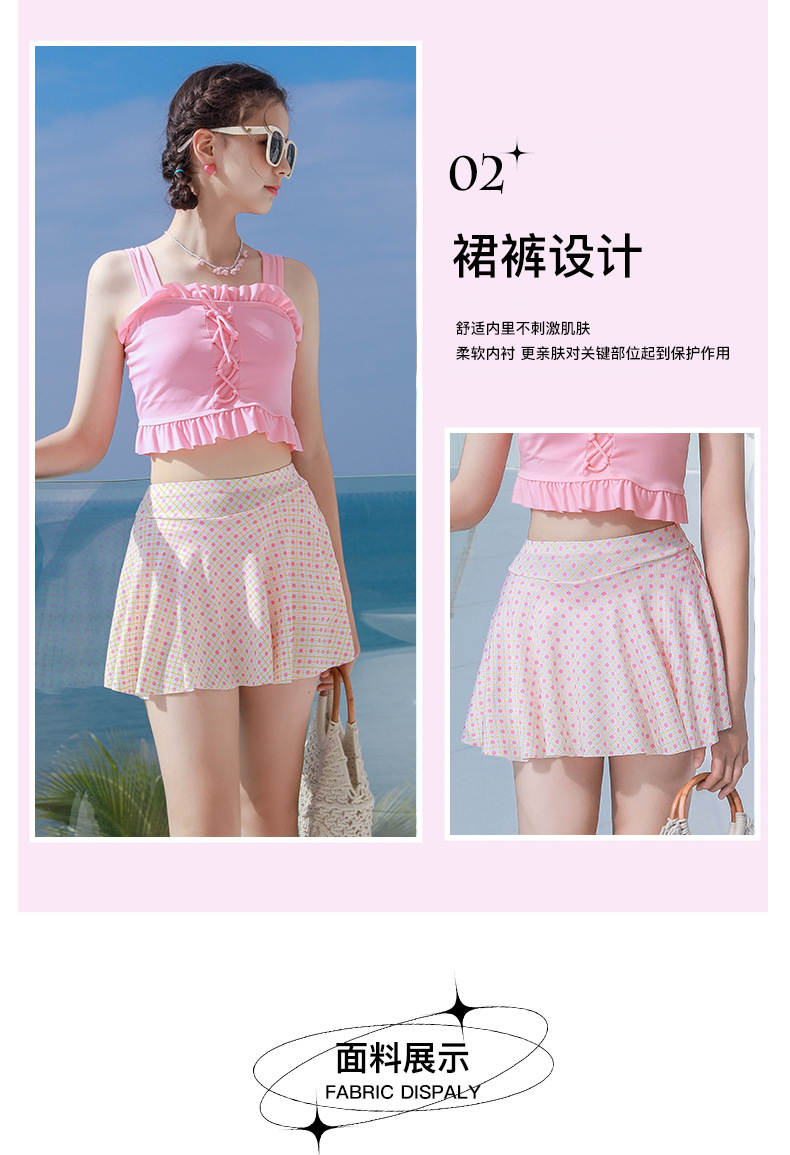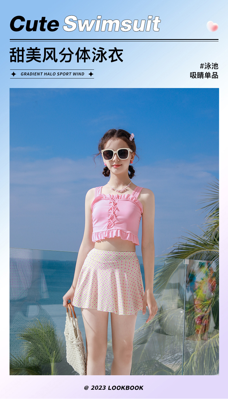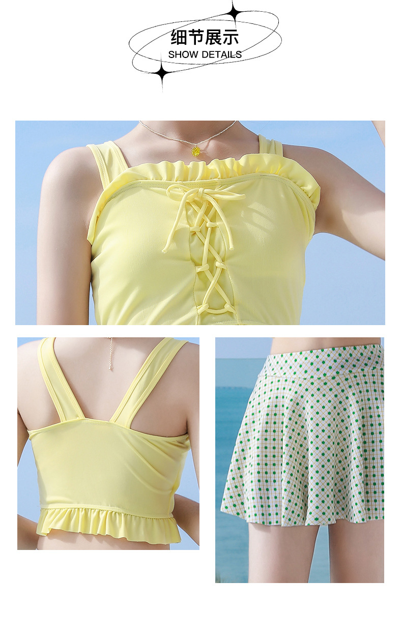 【甜美风分体泳衣,时尚感爆棚吸睛单品】撞色拼接设计 简约潮流儿童泳衣 女童新款中大童少女 可爱波点清新 无袖分体裙式 度假游泳衣-QQ