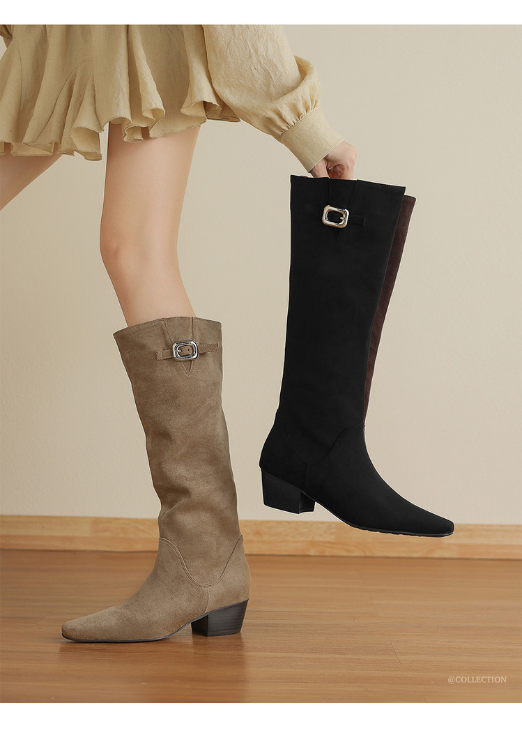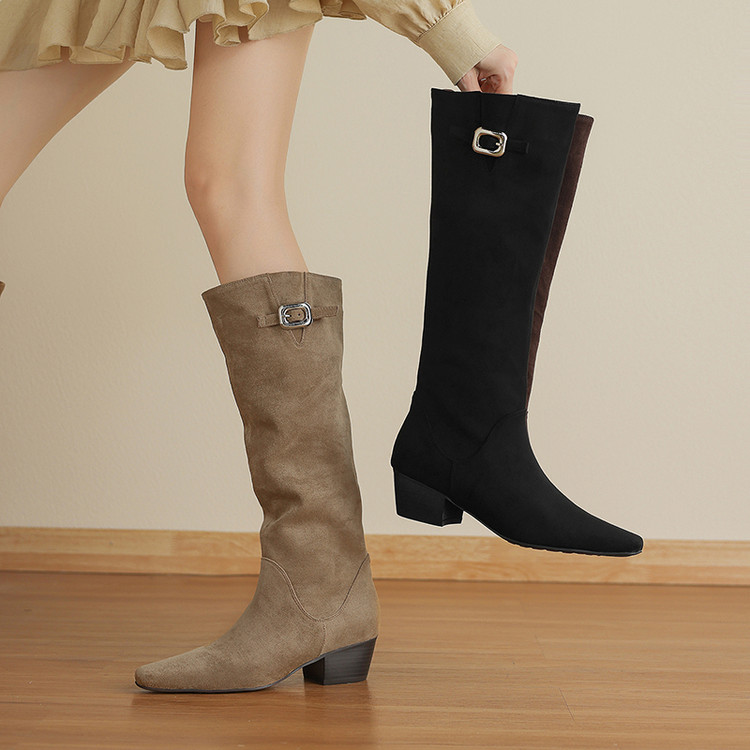 【预售7天】慵懒感复古绒面爆款显瘦不过膝堆堆靴长筒骑士靴HB&1298
