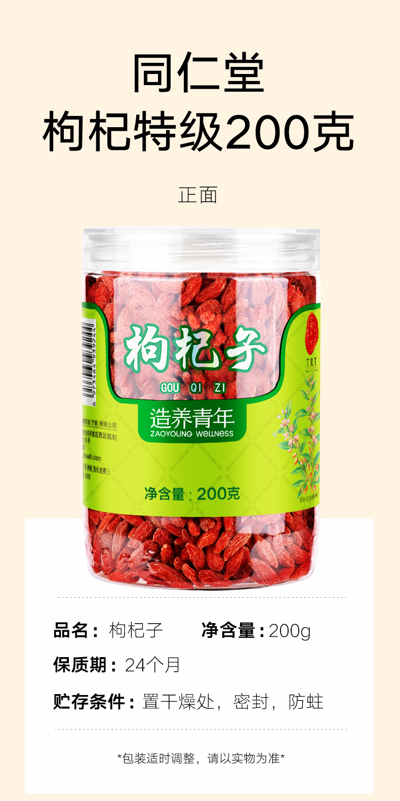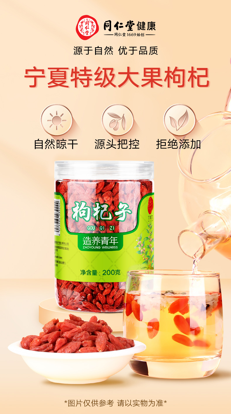 【正宗同仁堂品牌】北京同仁堂 枸杞子特级200克 宁夏原产特级大果 新鲜采摘 颗颗无杂SY
