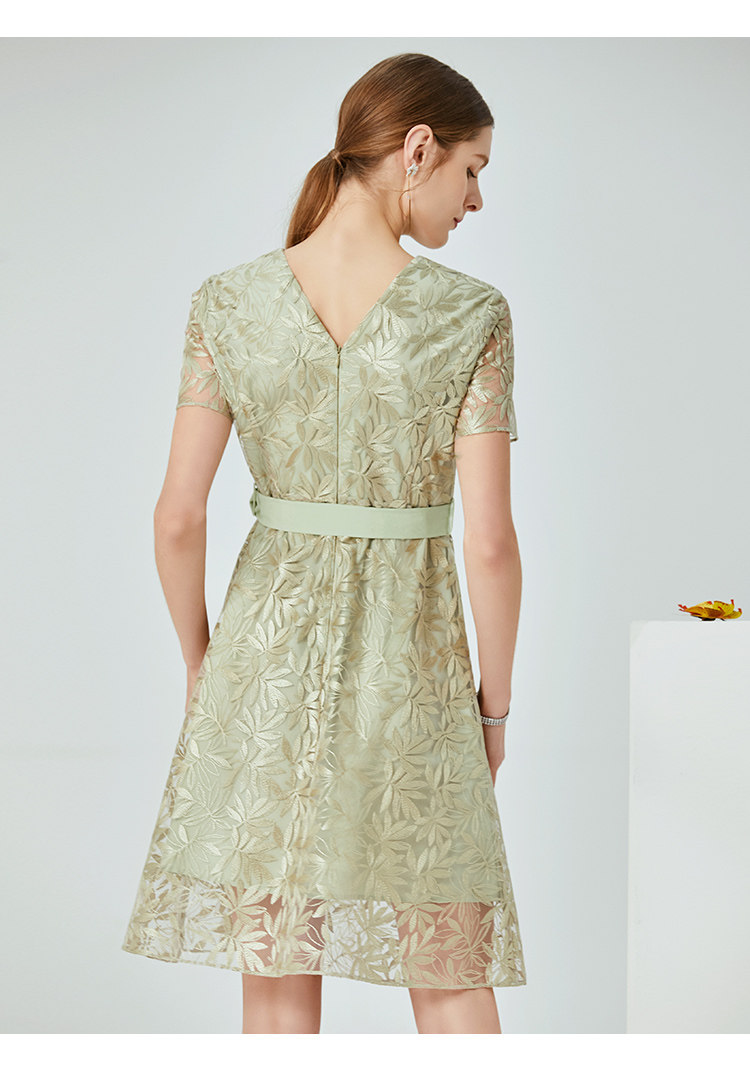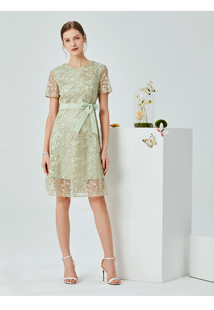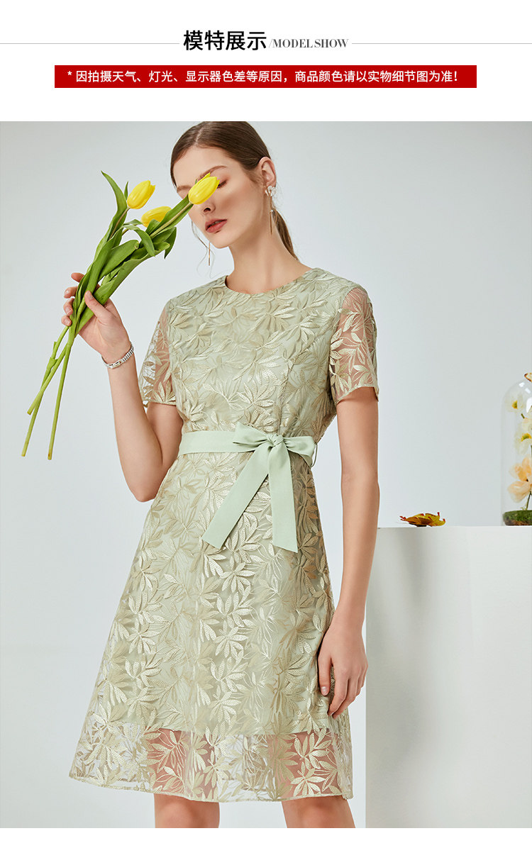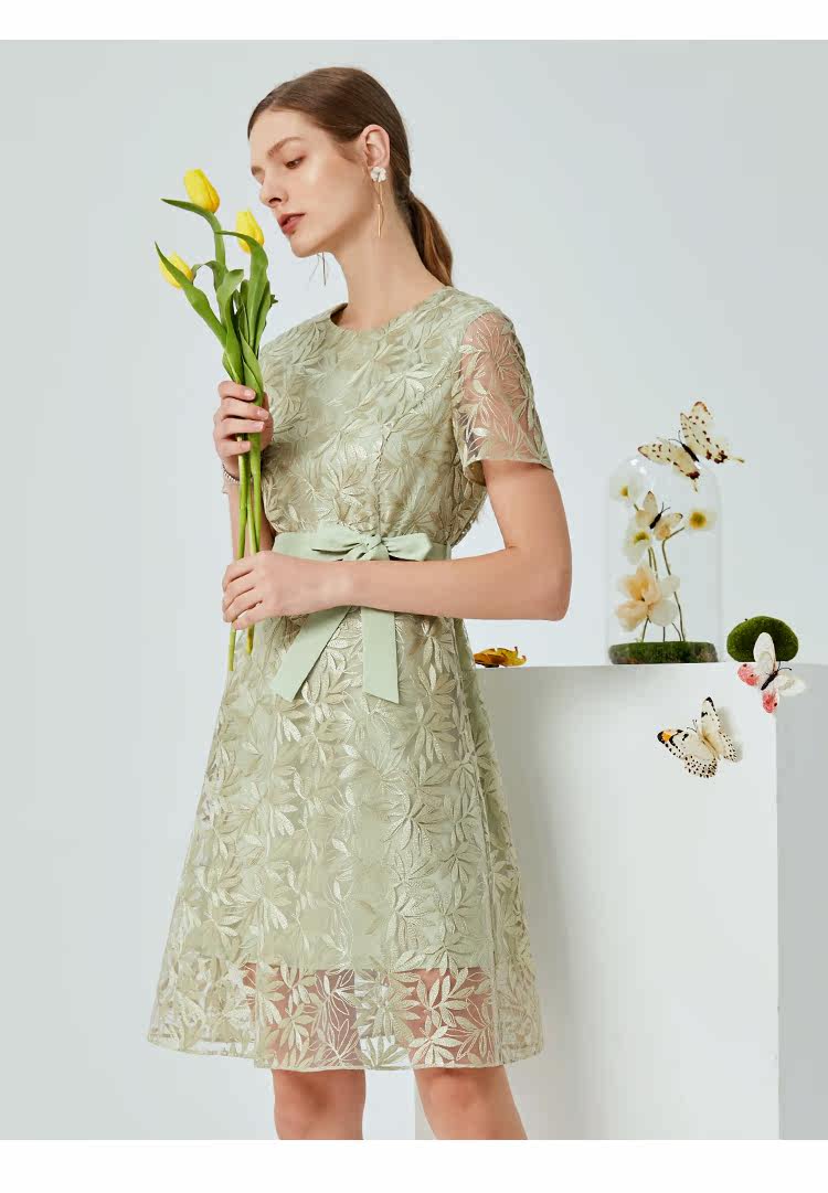 EITIE爱特爱夏季新款时尚收腰蕾丝绣花连衣裙女B2007422