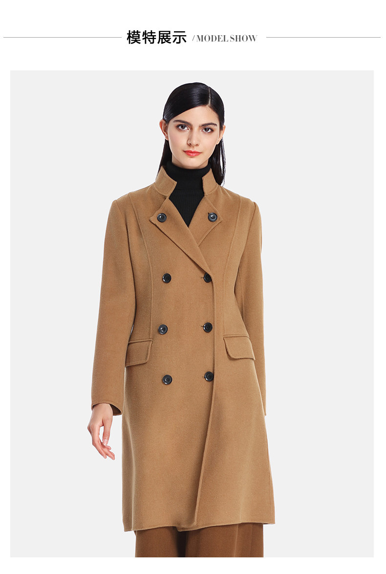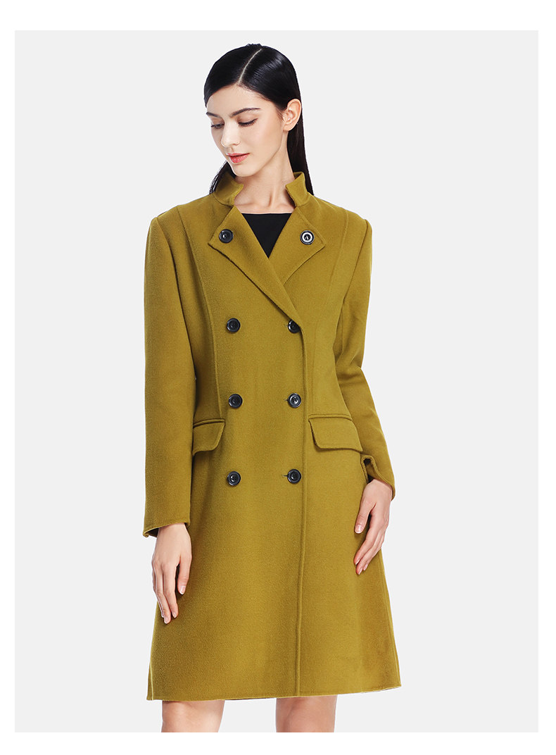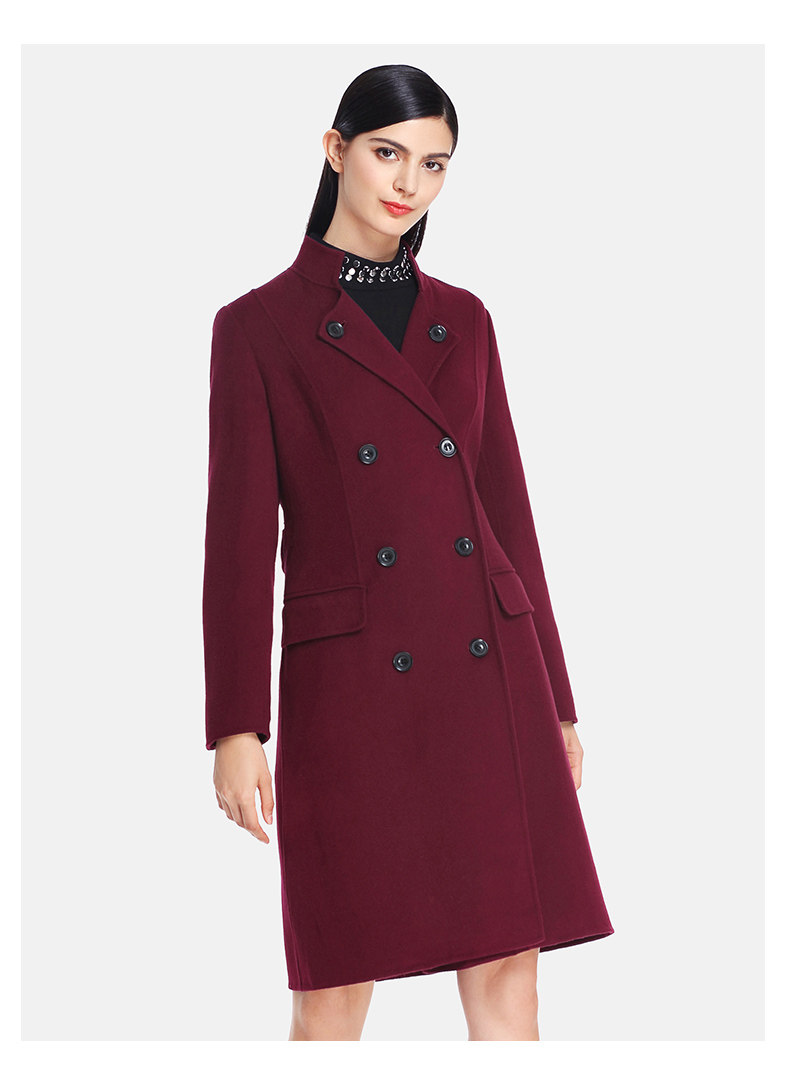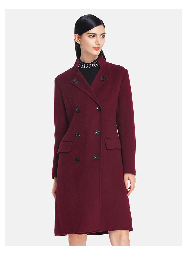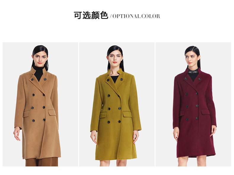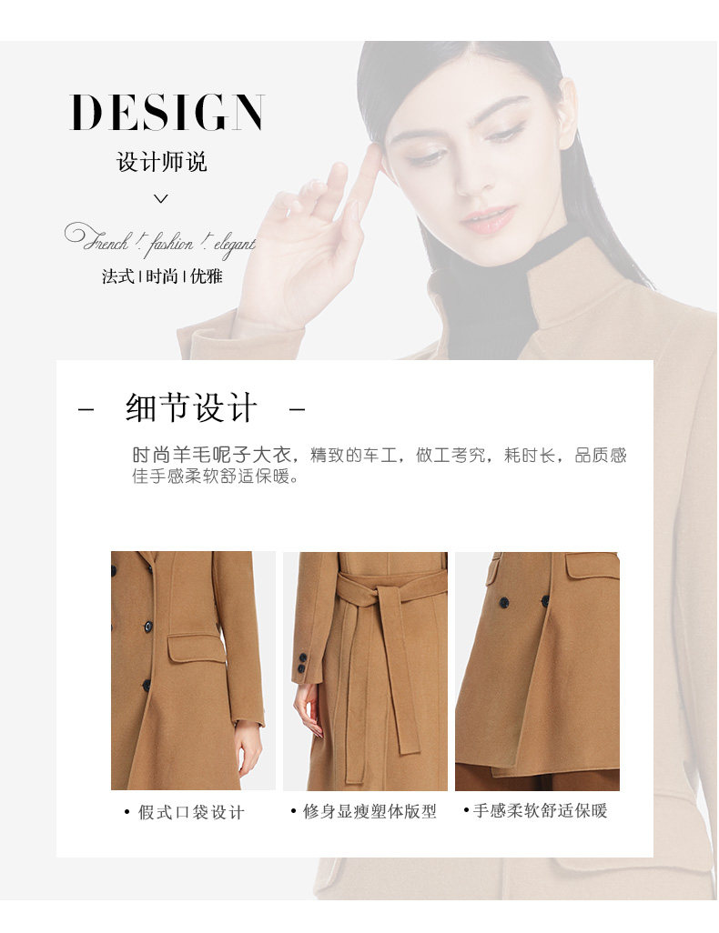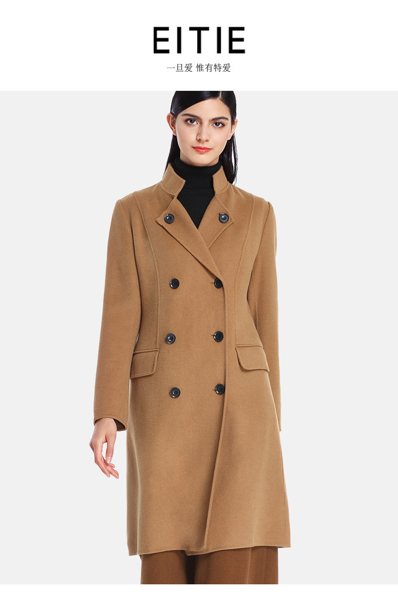 EITIE爱特爱秋冬季纯色复古翻领修身双排扣呢子大衣女毛呢外套5214913