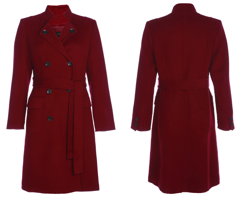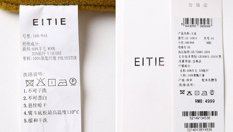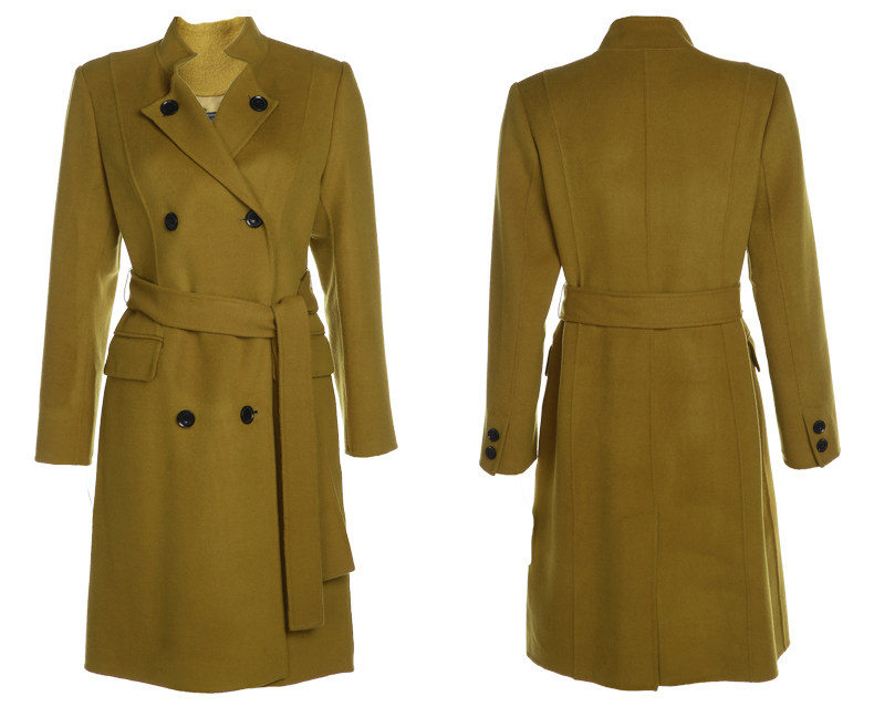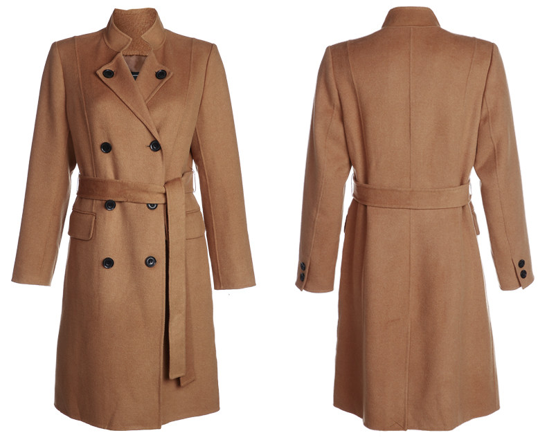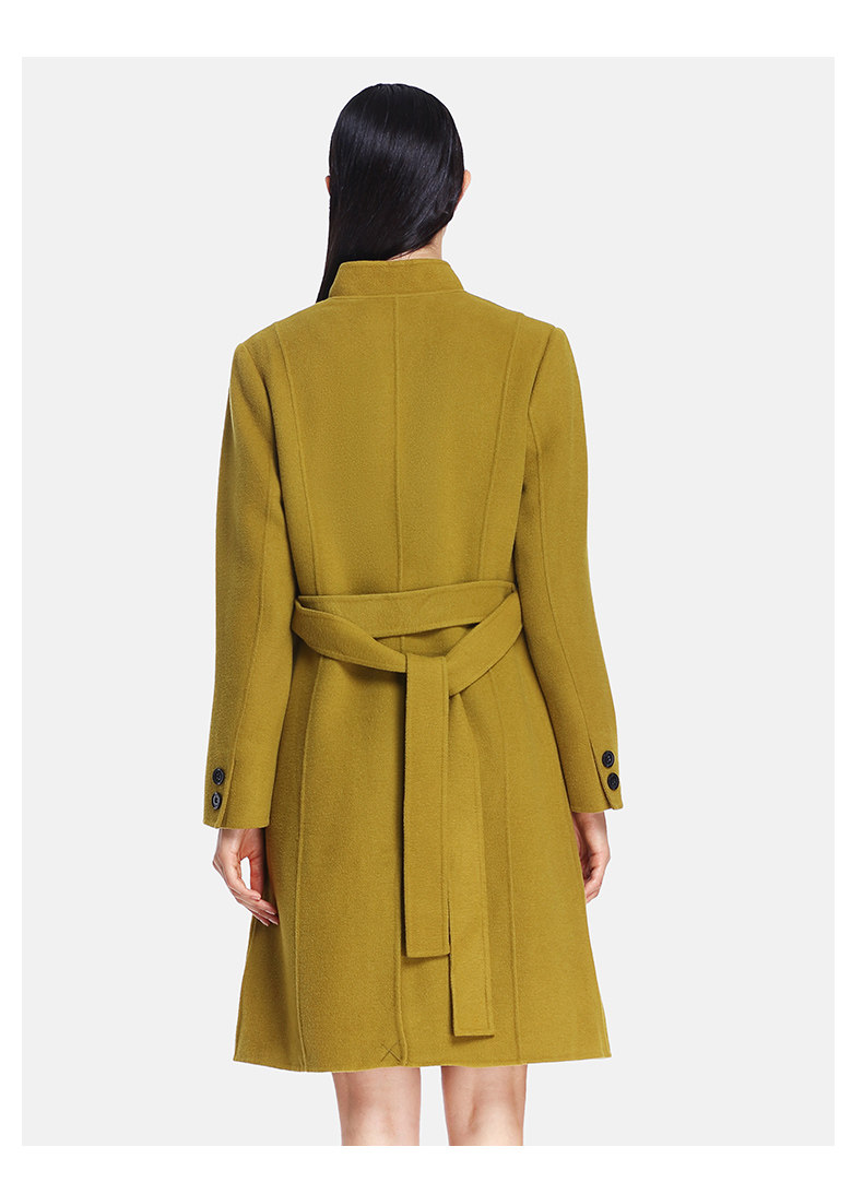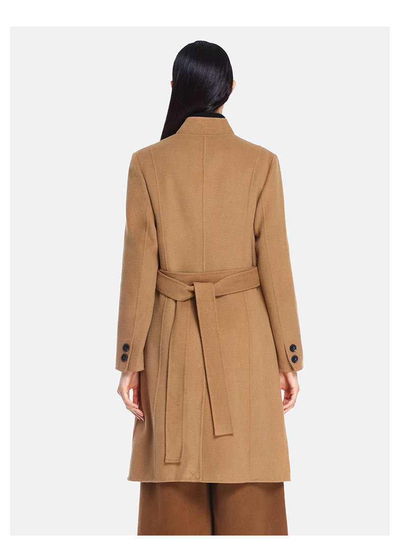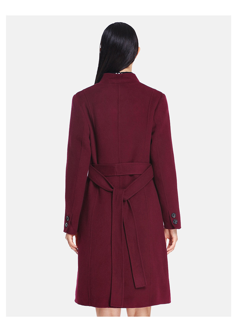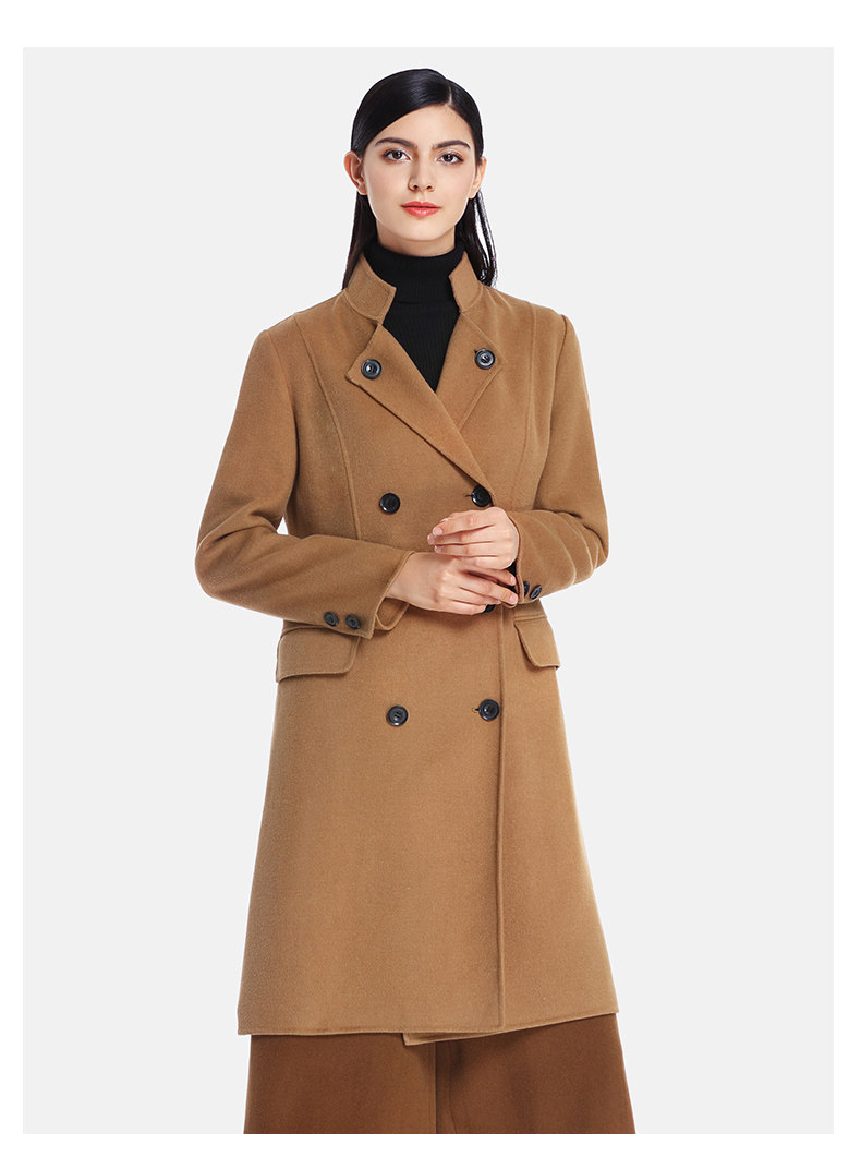 EITIE爱特爱秋冬季纯色复古翻领修身双排扣呢子大衣女毛呢外套5214913