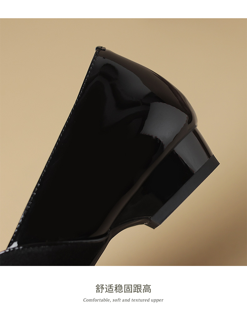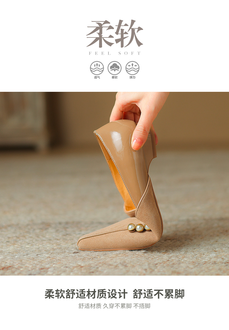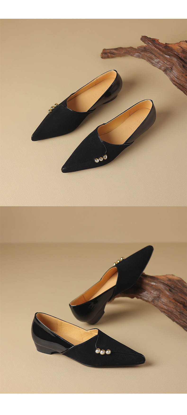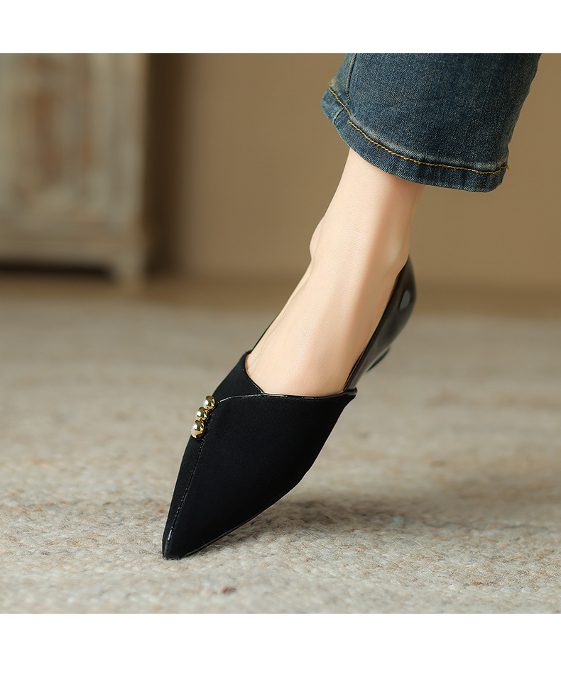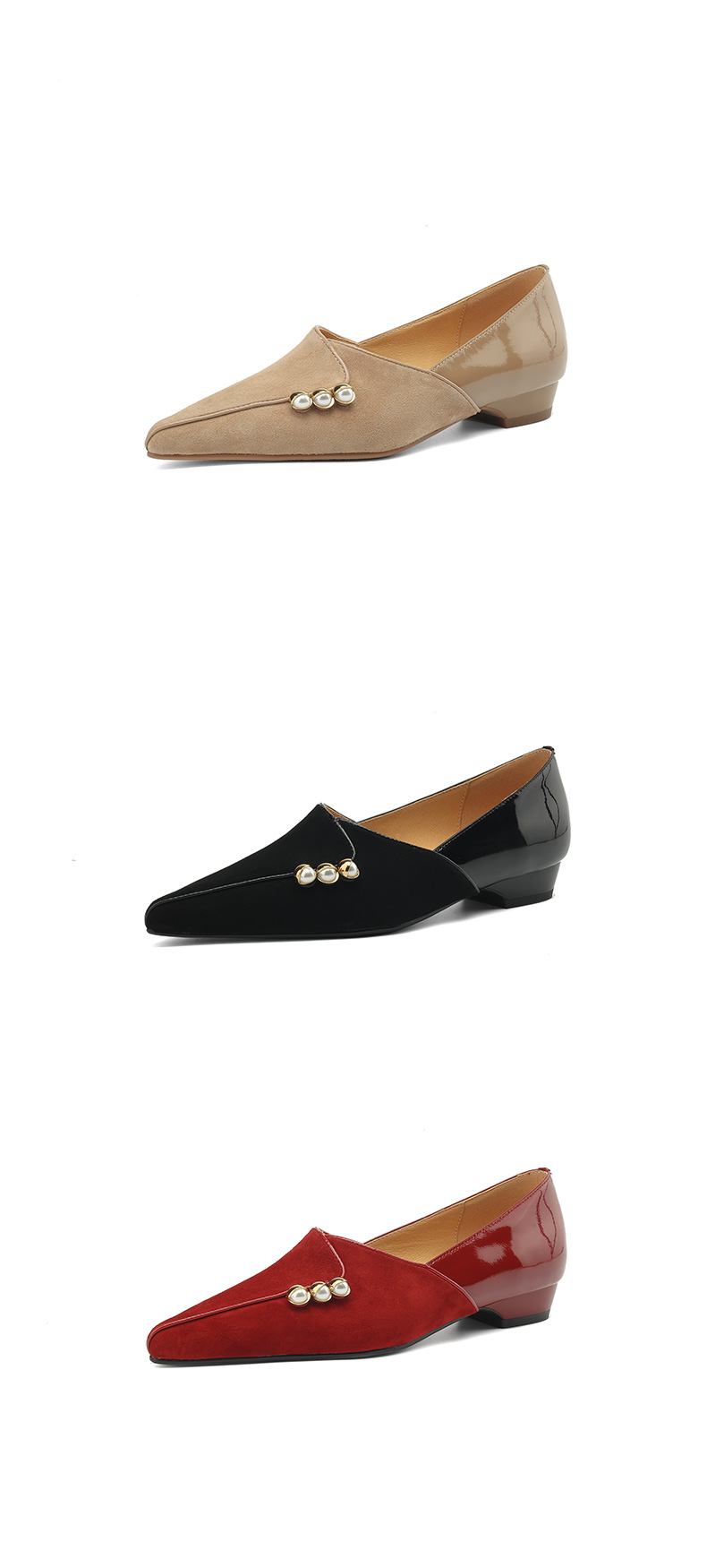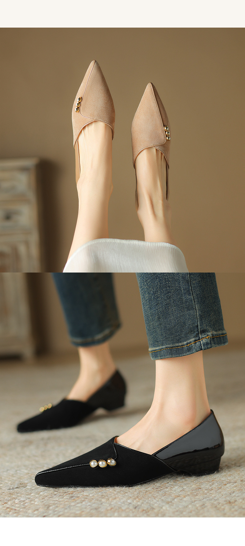 春季新款,时尚优雅尖头浅口拼接低跟单鞋HBP-5873