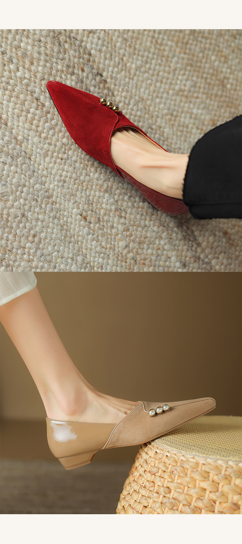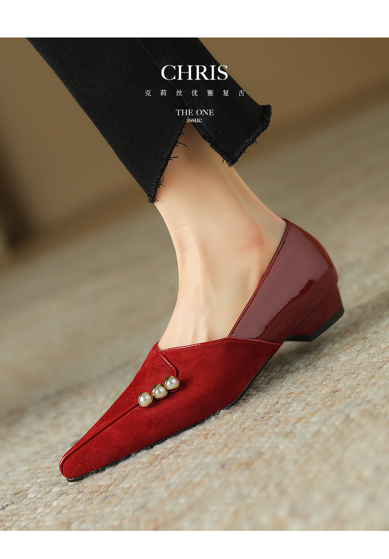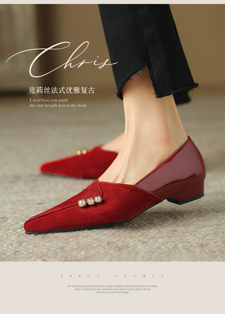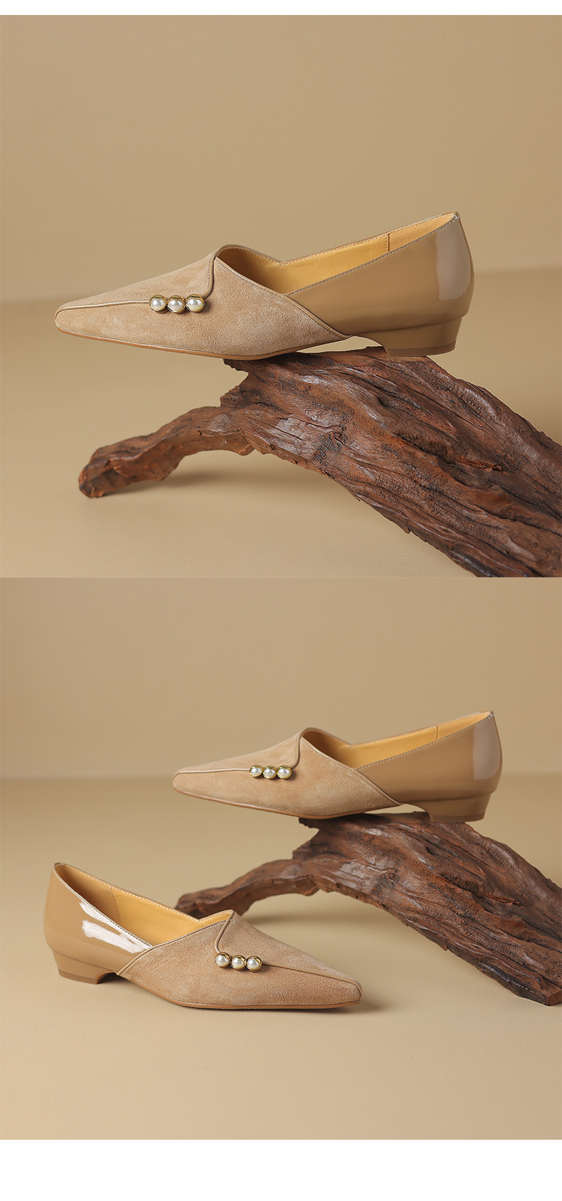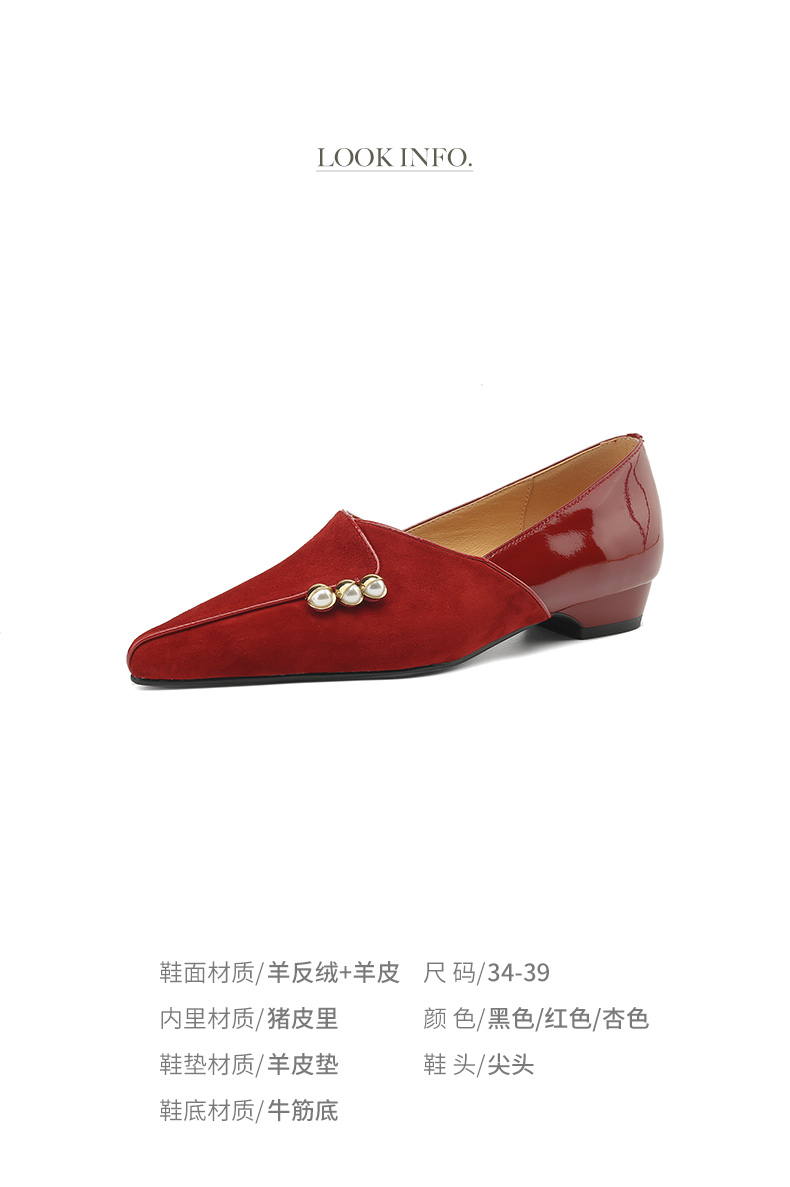 春季新款,时尚优雅尖头浅口拼接低跟单鞋HBP-5873