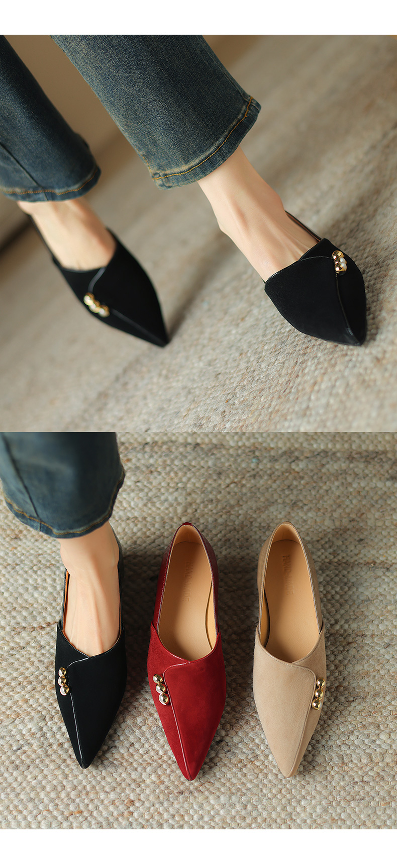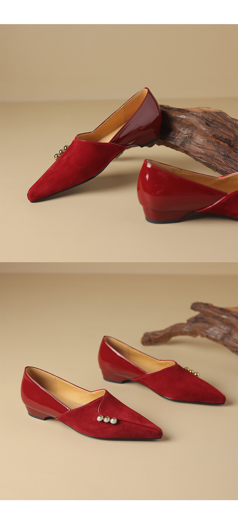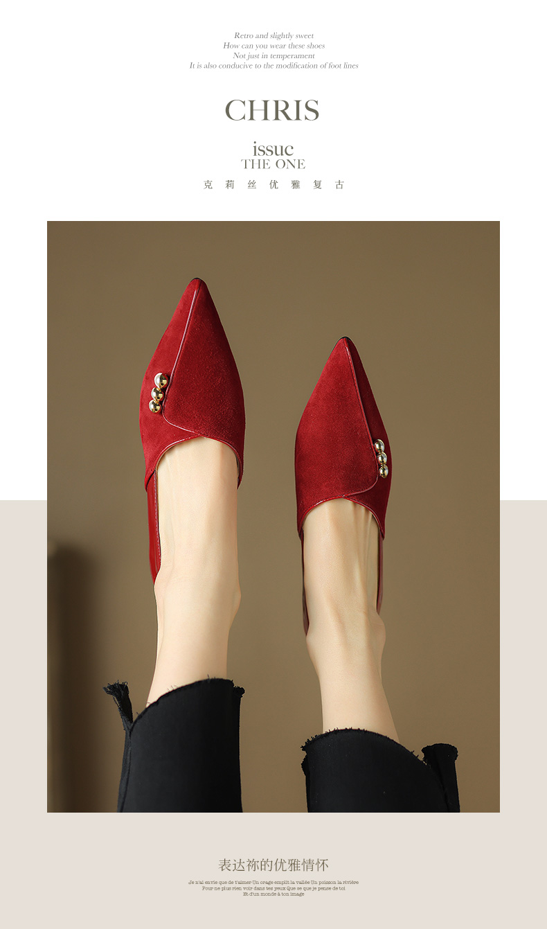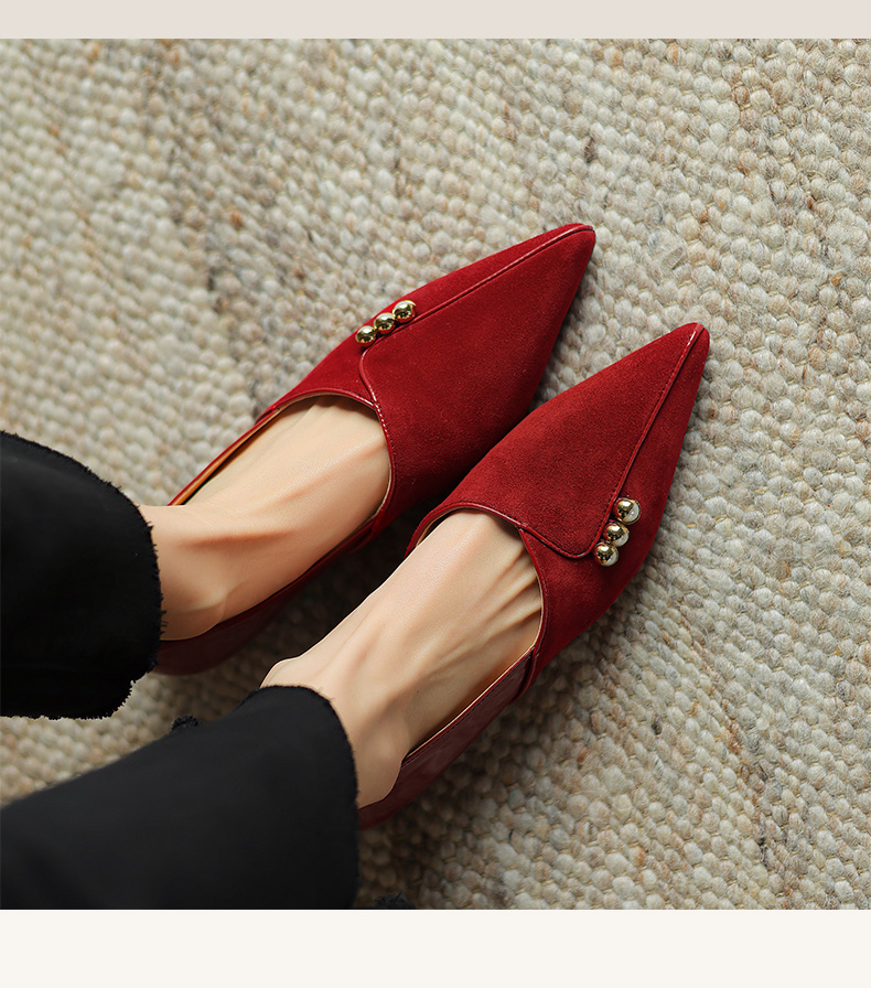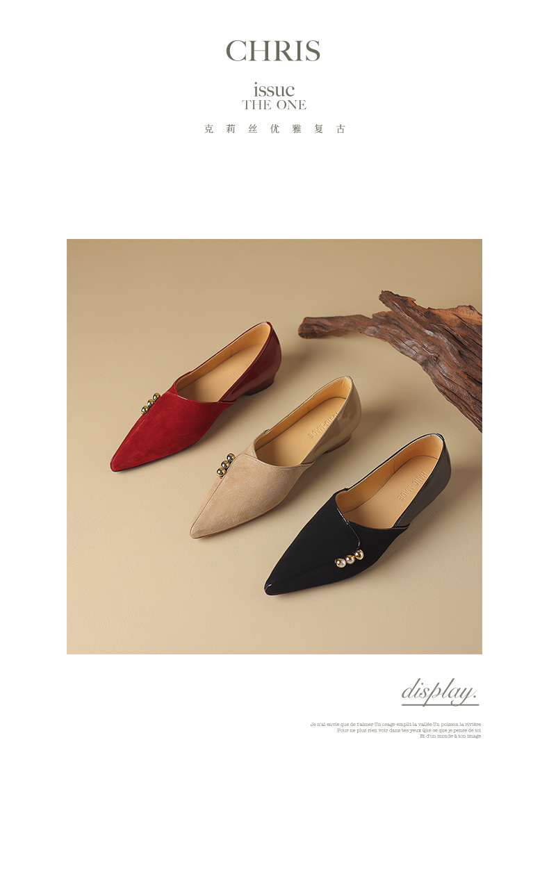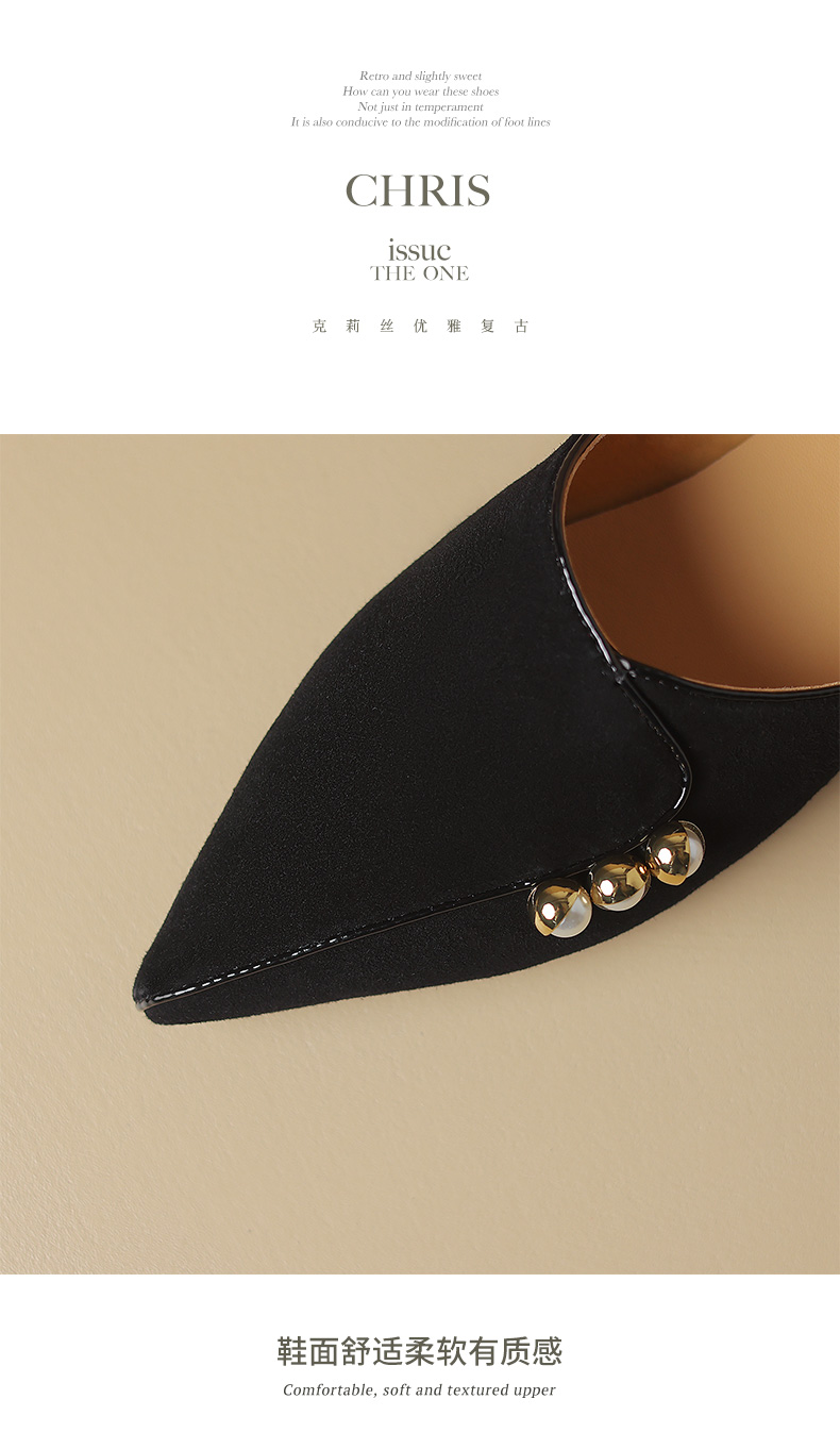 春季新款,时尚优雅尖头浅口拼接低跟单鞋HBP-5873