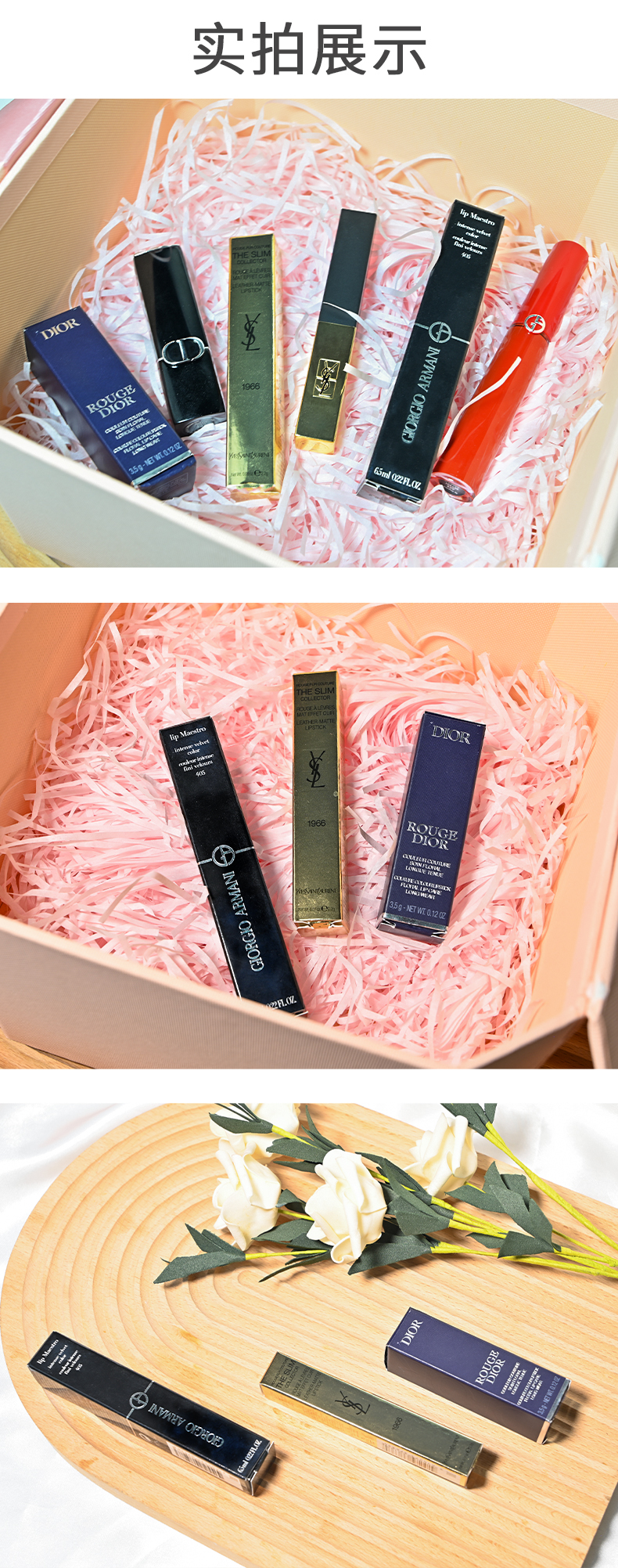 【明星三色限定口红礼盒】迪奥#999 (传奇红唇) +阿玛尼#405(烂番红)+YSL#N°1966(无法复刻的红棕)