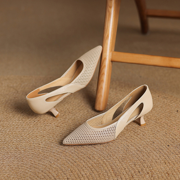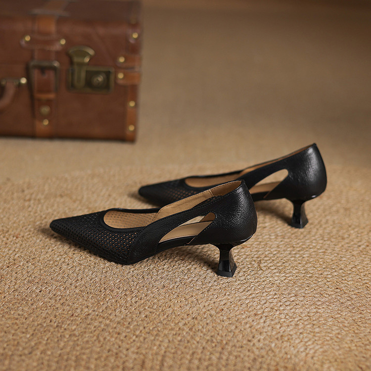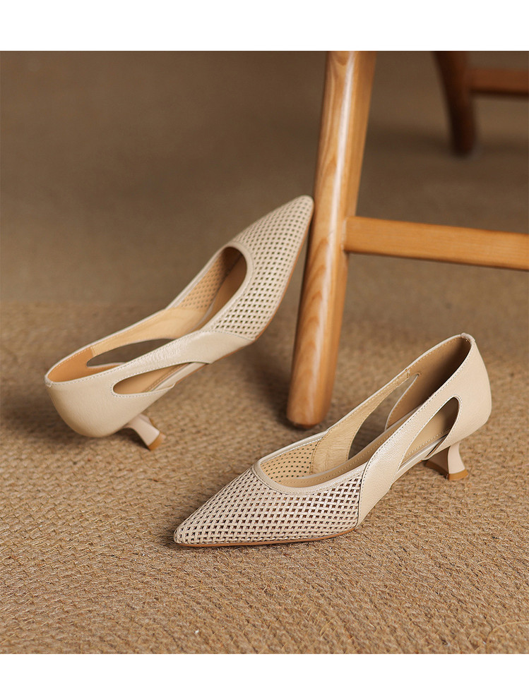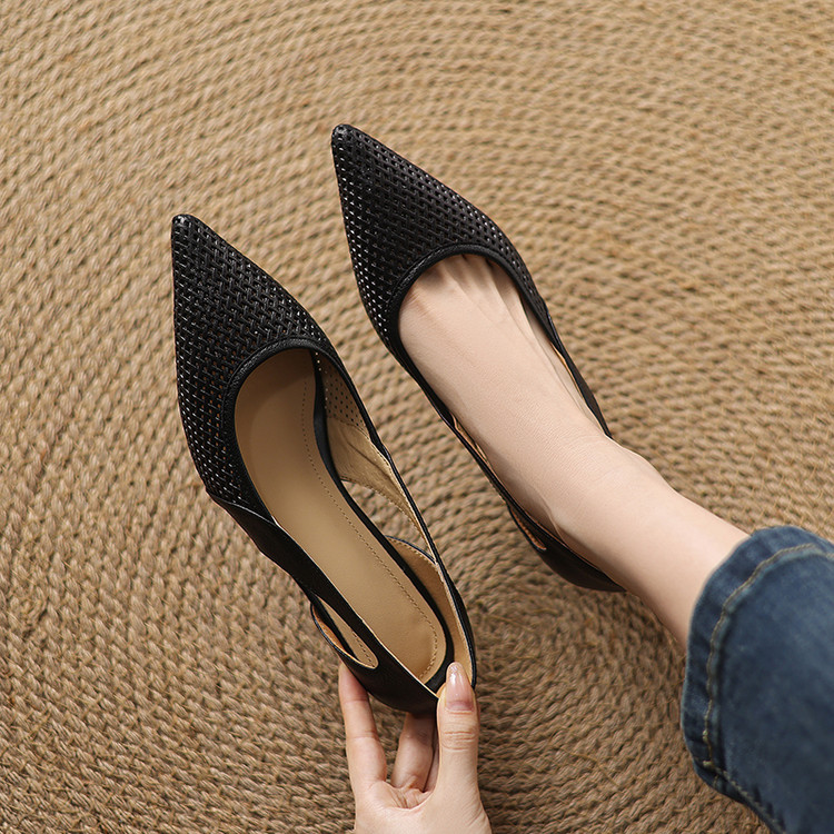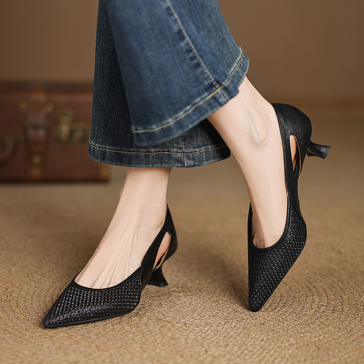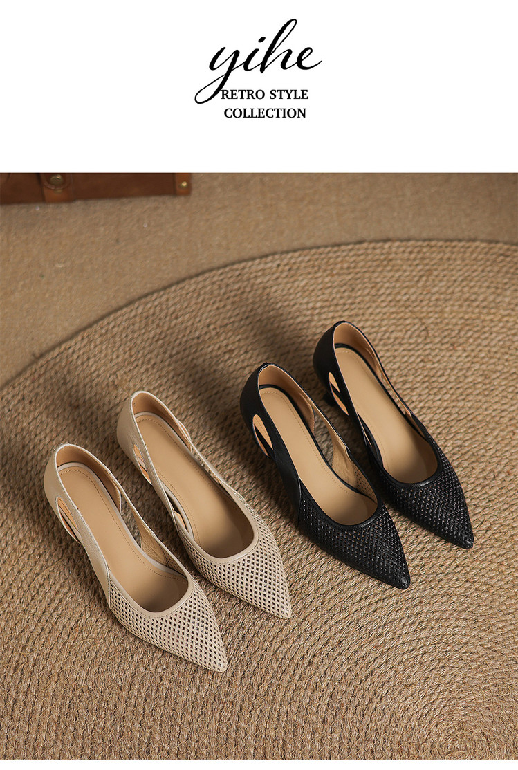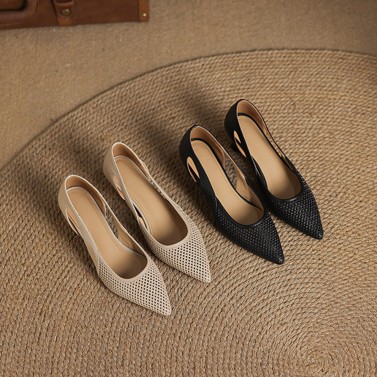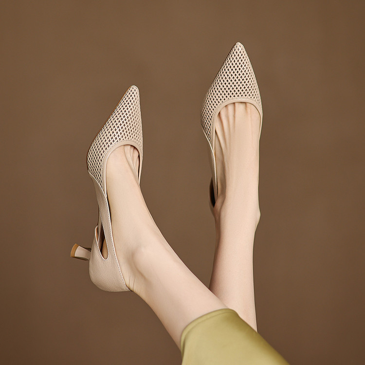【预售5天】春夏季新款高跟鞋包头凉鞋女配裙子透气镂空法式软皮尖头单鞋JLY&18-636
