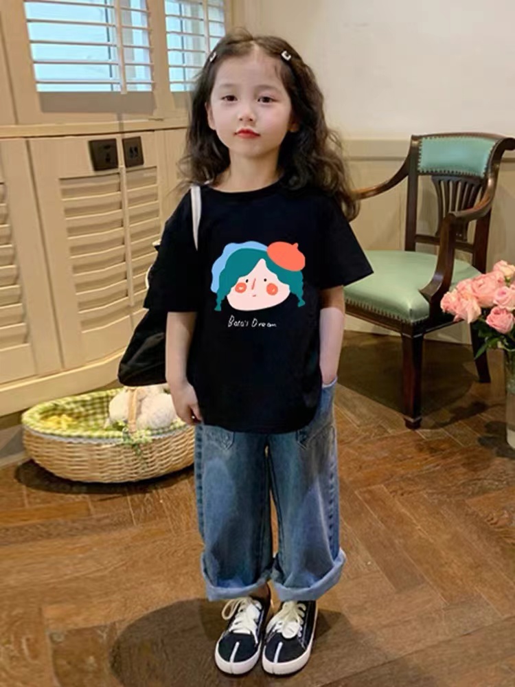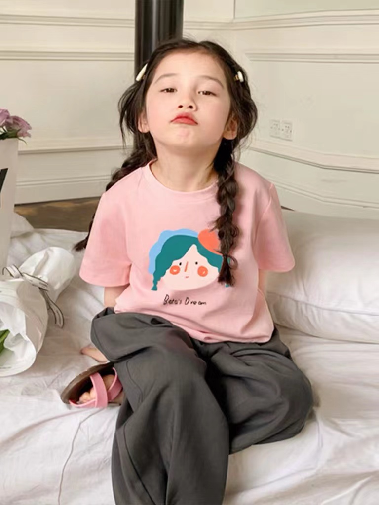 2件39.9元【童T】男童女童同款100%棉(绿发女孩)印花T恤-喜出