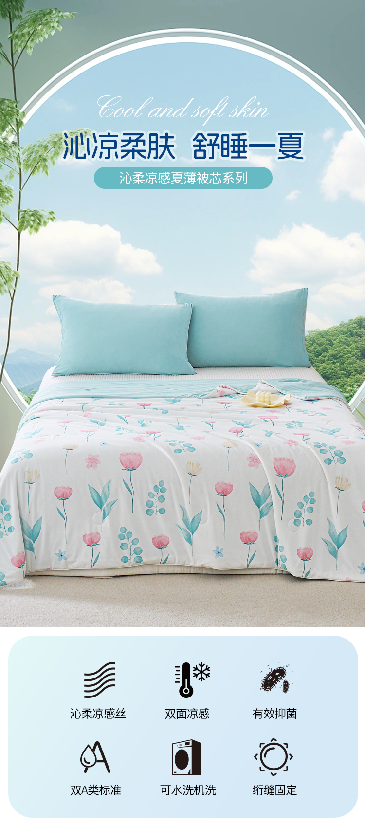 多喜爱沁柔凉感夏薄被芯/空调被(花漾清梦/花影逸梦/素影雅静)【沁柔凉感丝】【双面凉感】 【双A类标准】沁凉柔肤 舒睡一夏 有效抑菌 可水洗机洗 凉如水 柔如丝