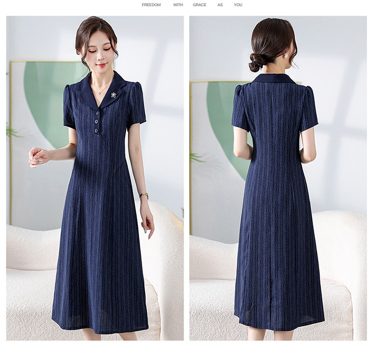 QYM H1963-Y条纹花中长裙时尚气质连衣裙 商品图3