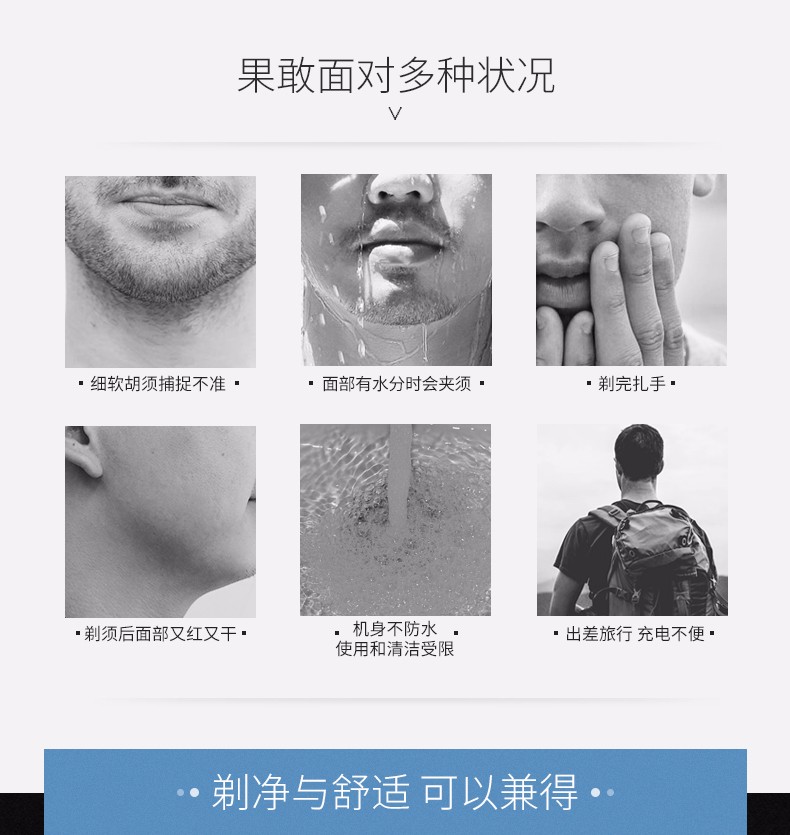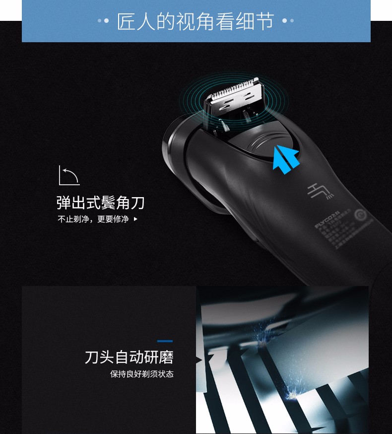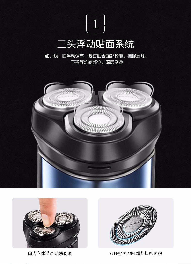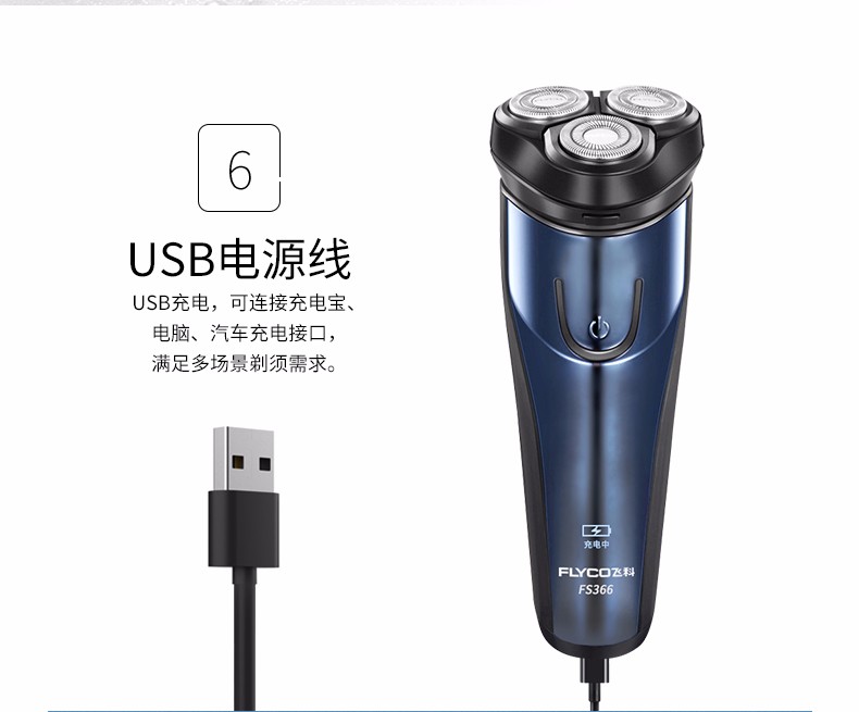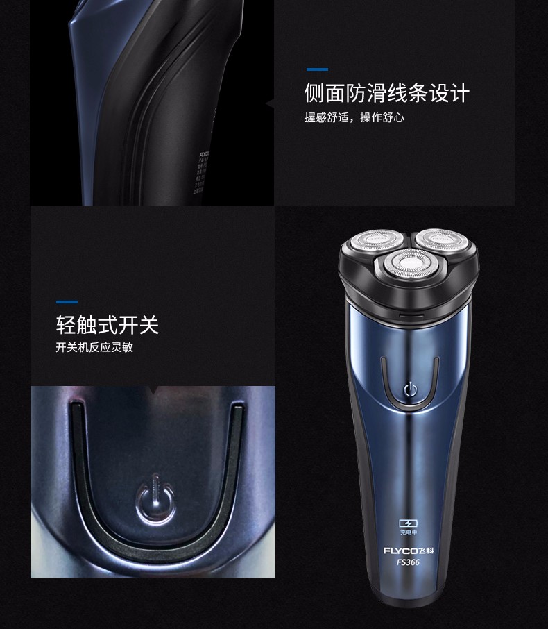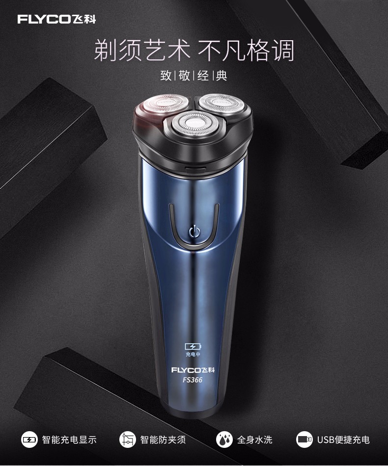 飞科(FLYCO) 男士电动剃须刀 全身水洗干湿双剃刮胡刀 便携三刀头剃胡刀FS366