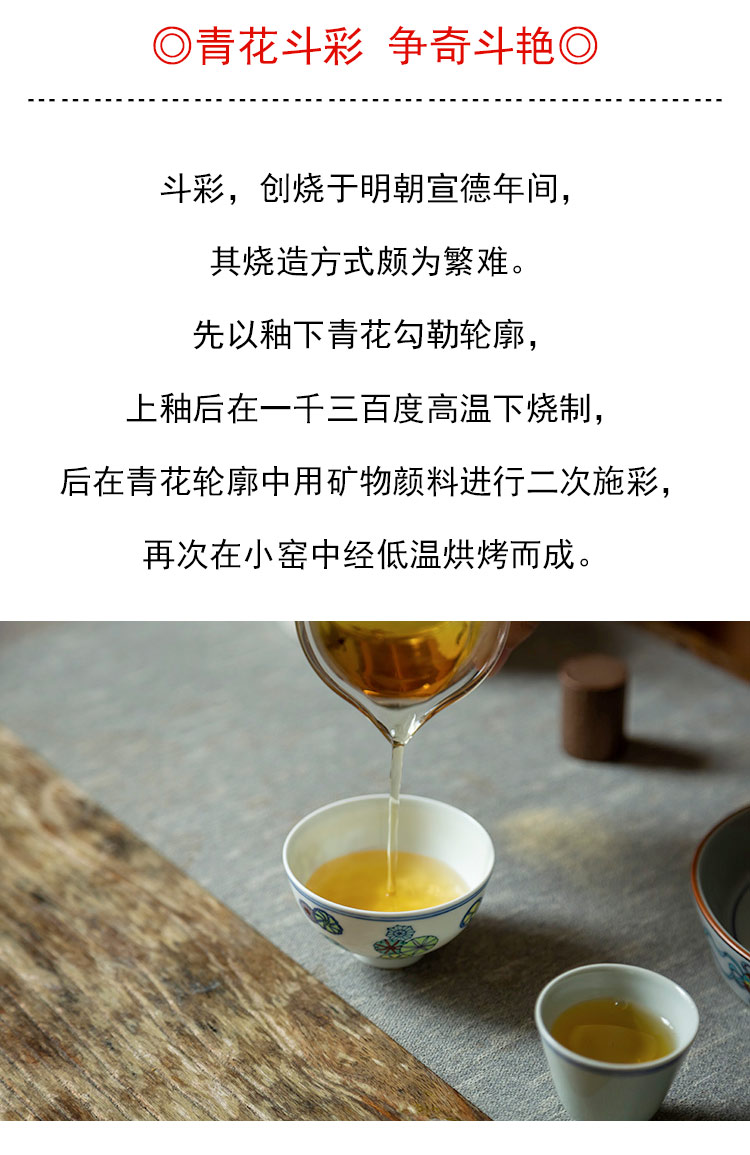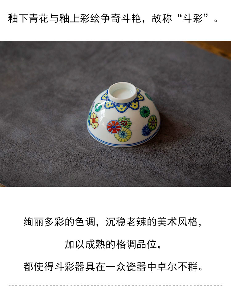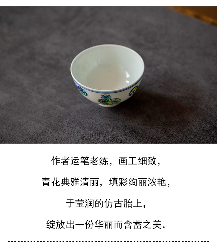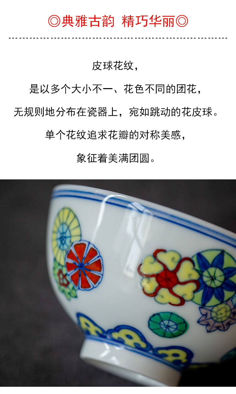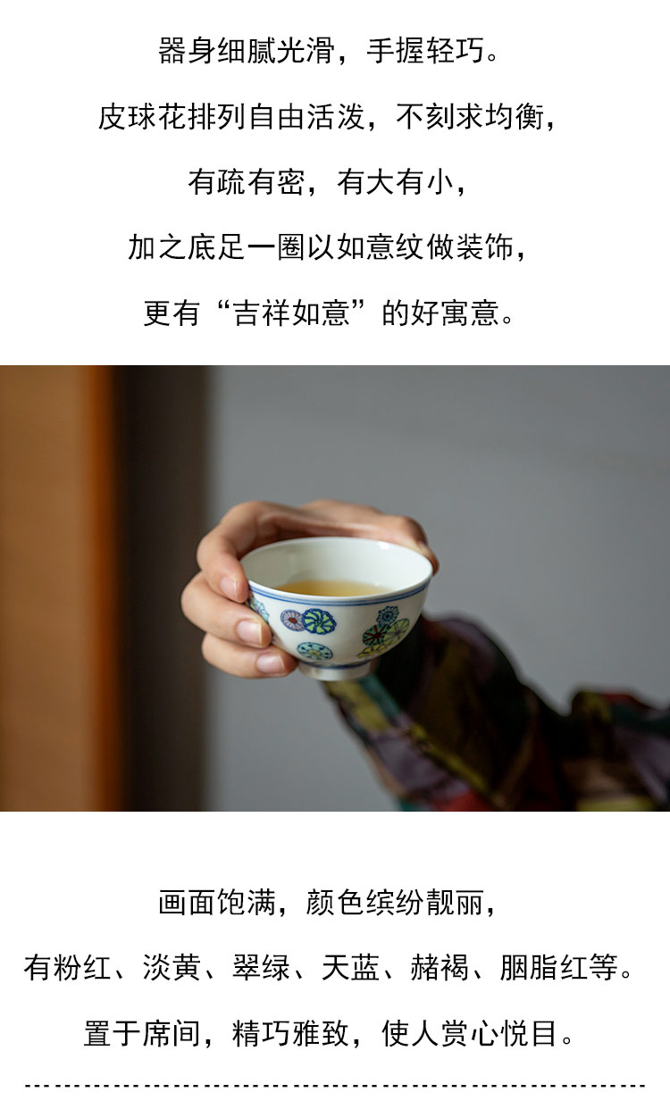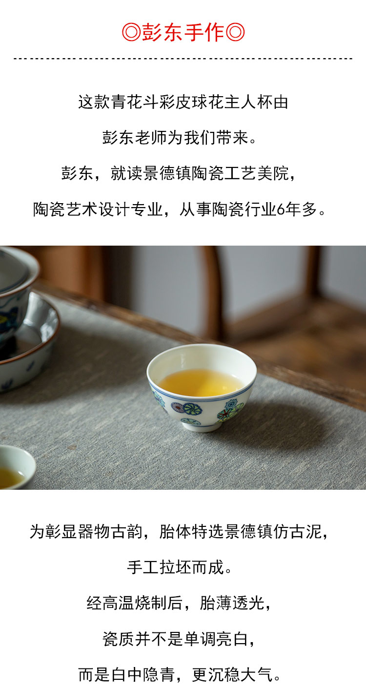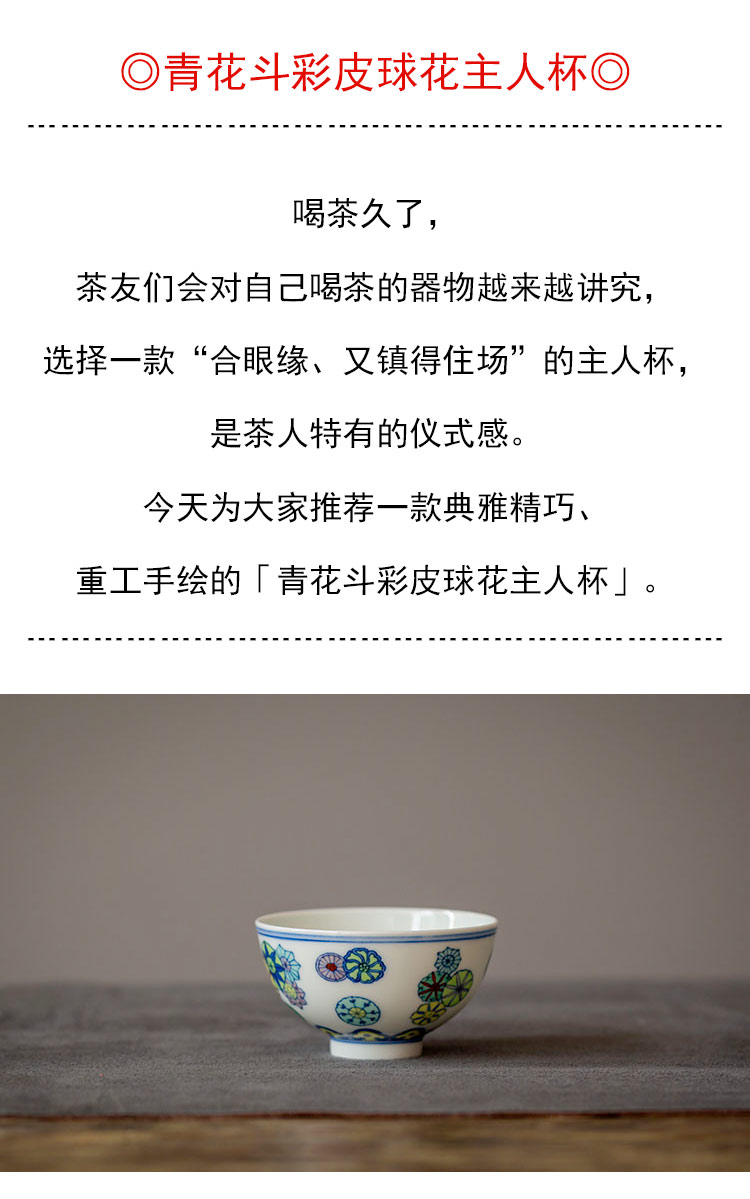 茶香记 青花斗彩皮球花主人杯 彭东 仿古胎 典雅精巧 美好寓意