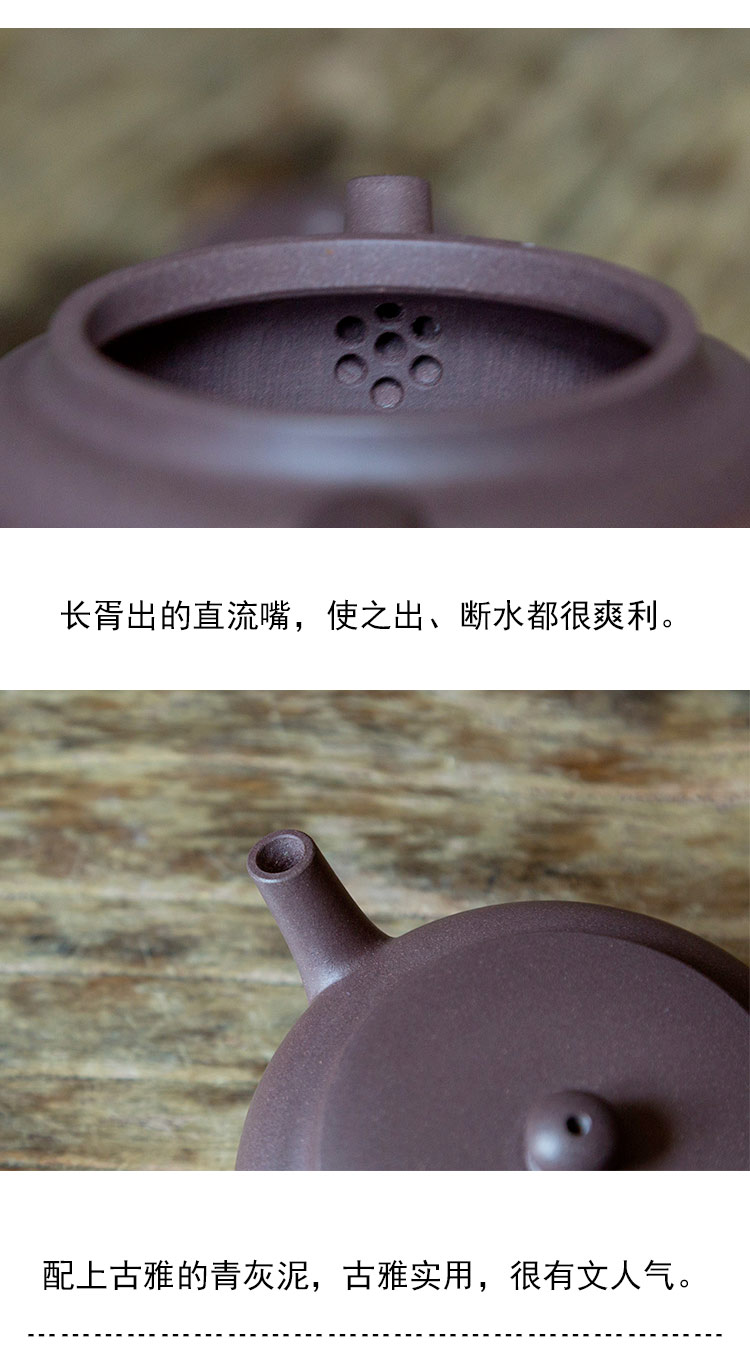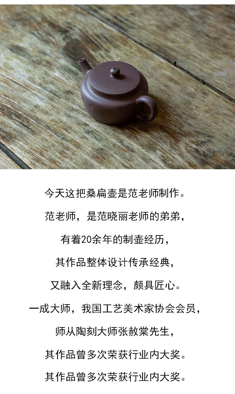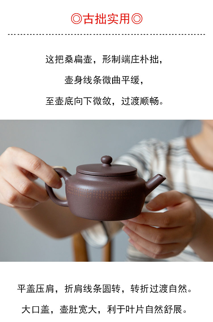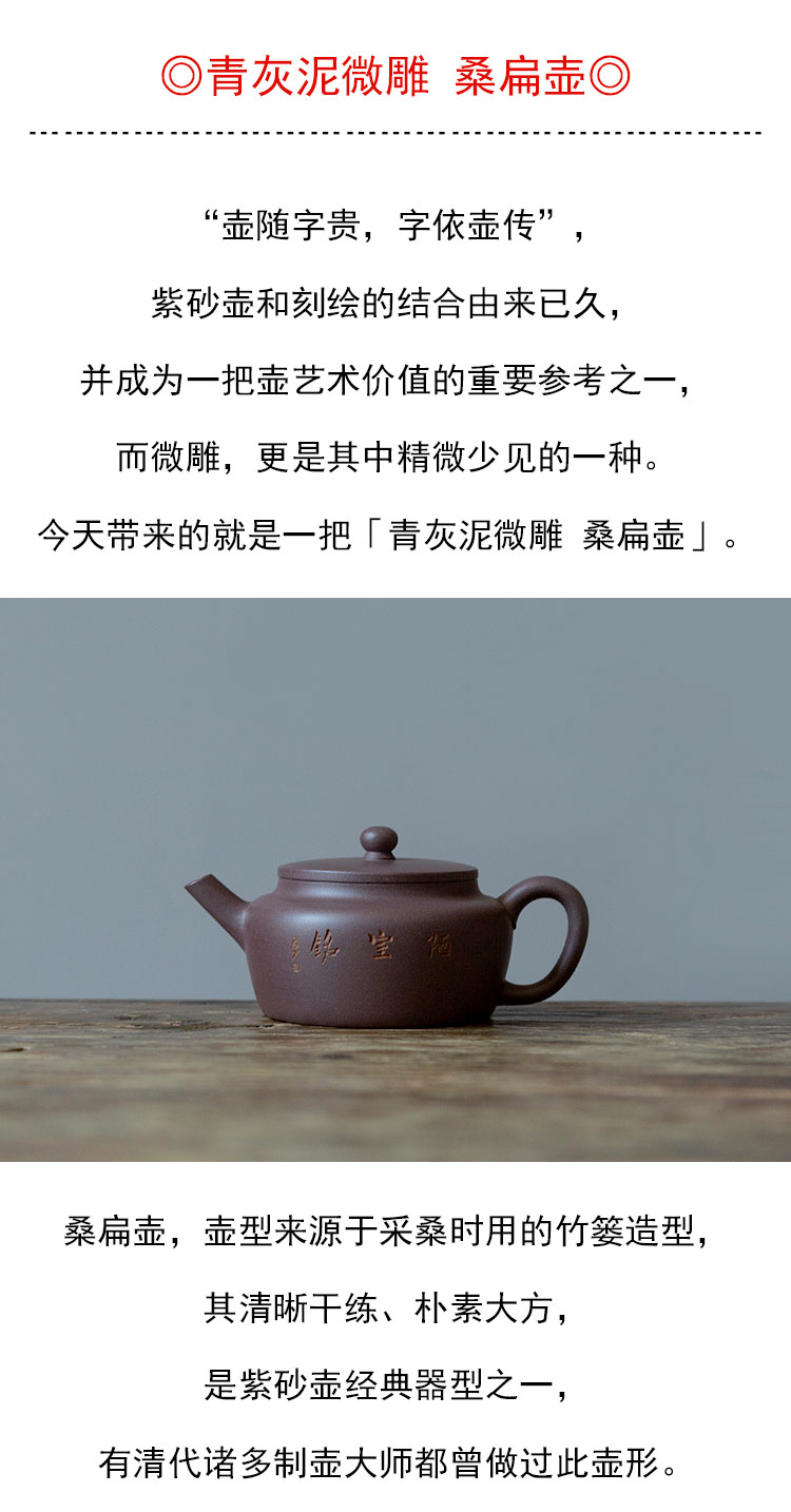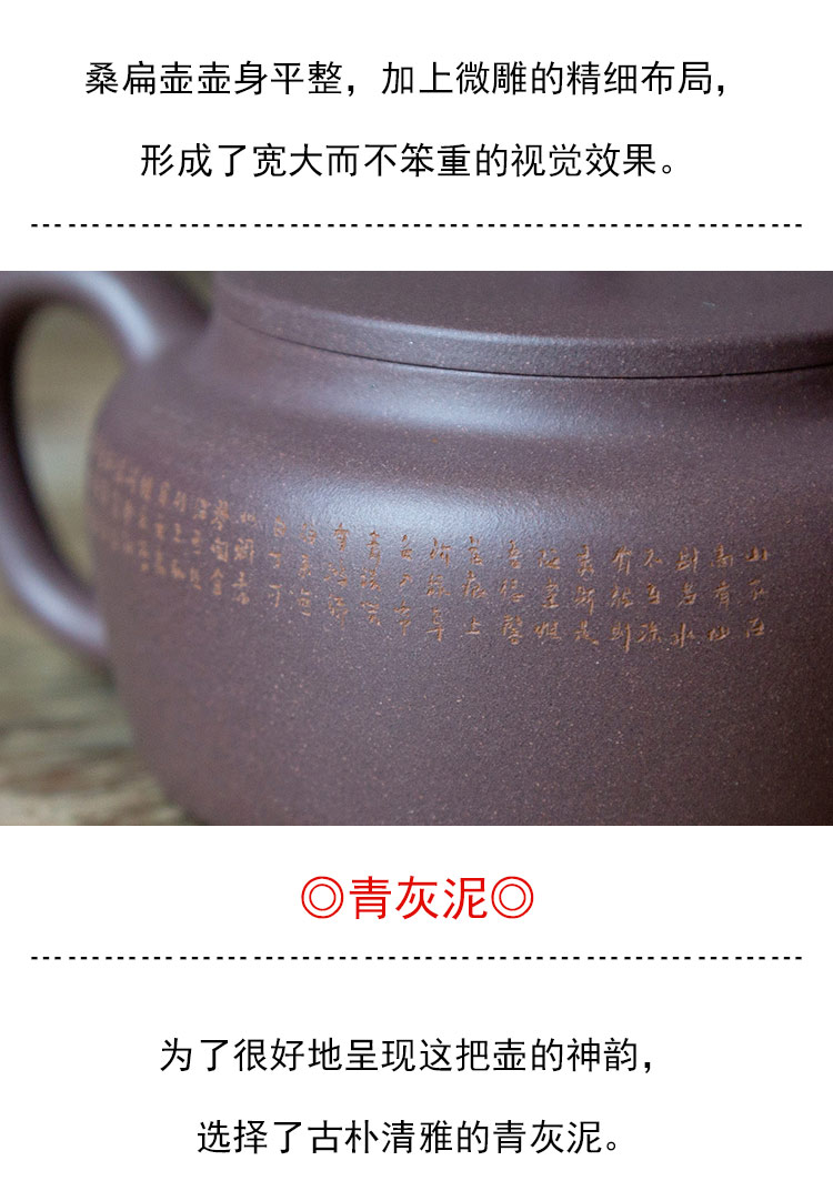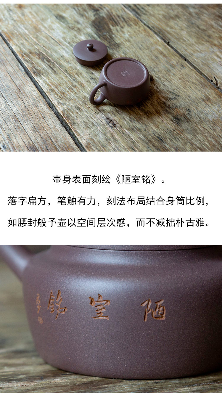 茶香记 紫砂壶 青灰泥微雕 桑扁壶 刻绘 陋室铭 文人壶 传统壶型
