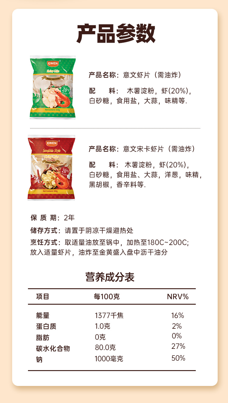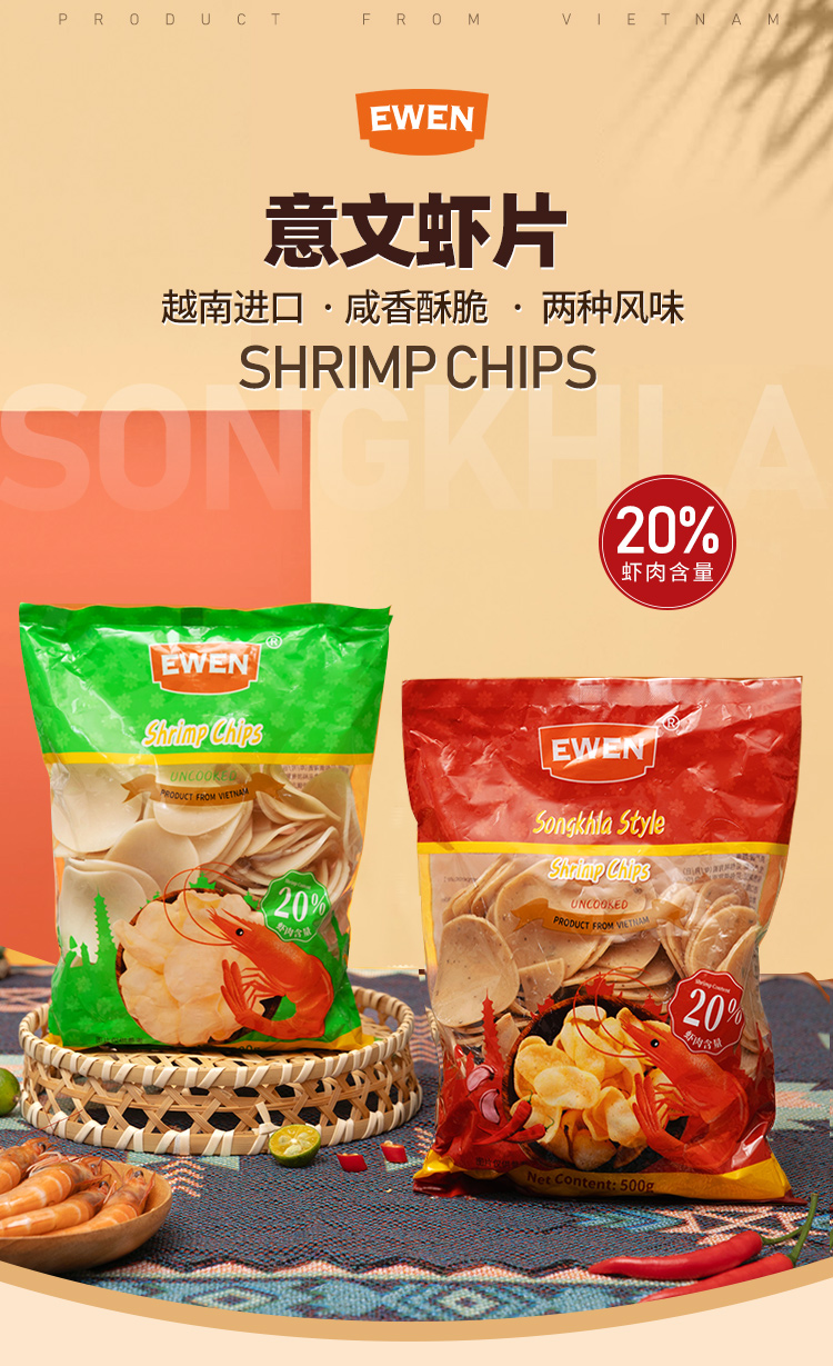 EWEN意文宋卡原味虾片500g